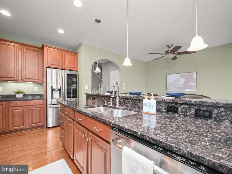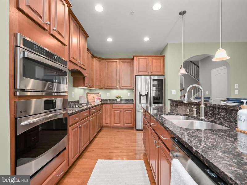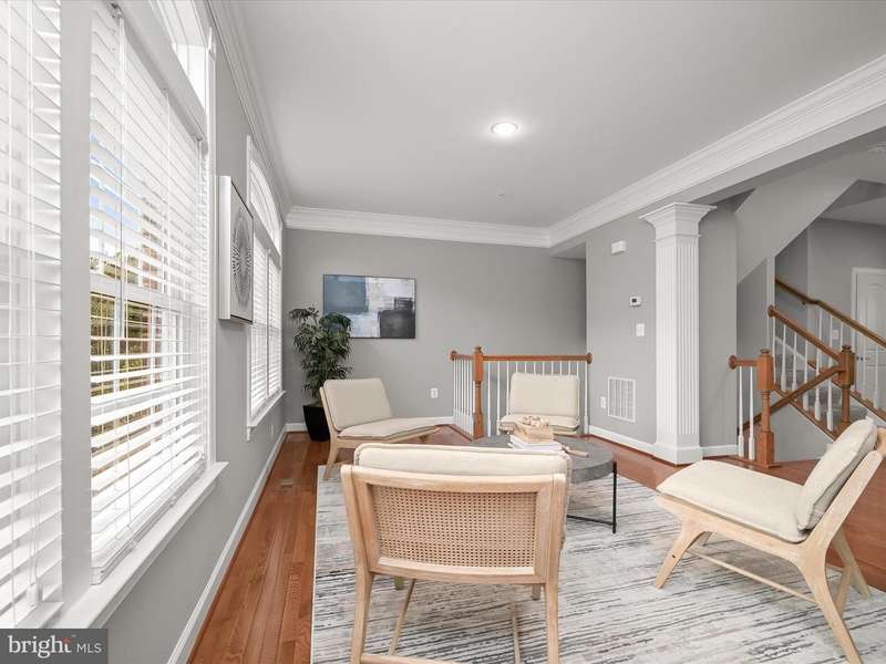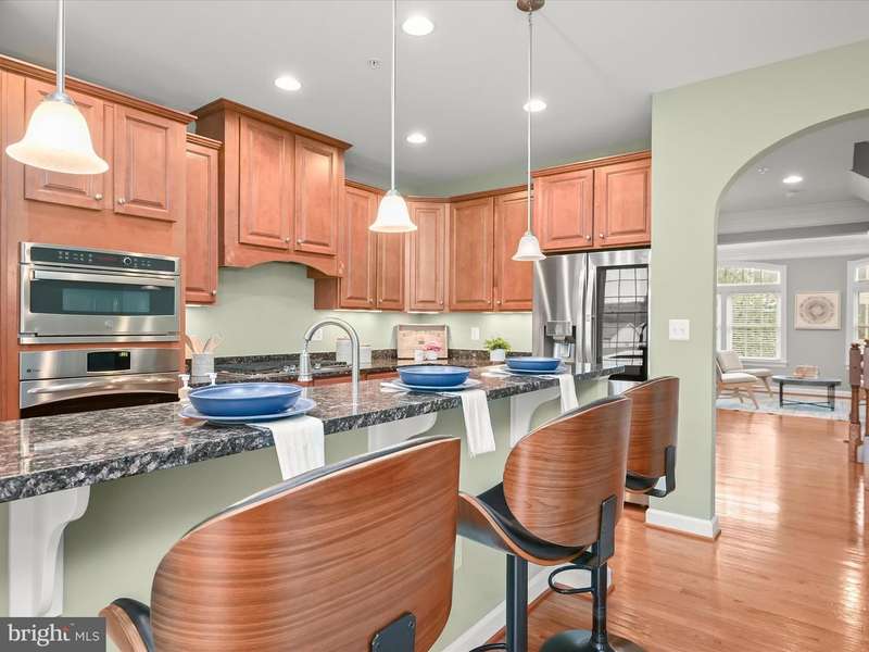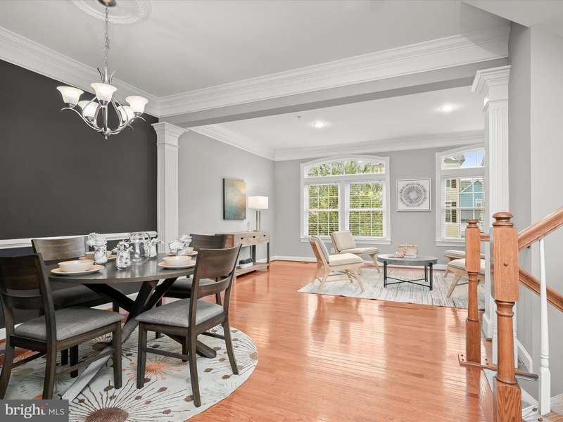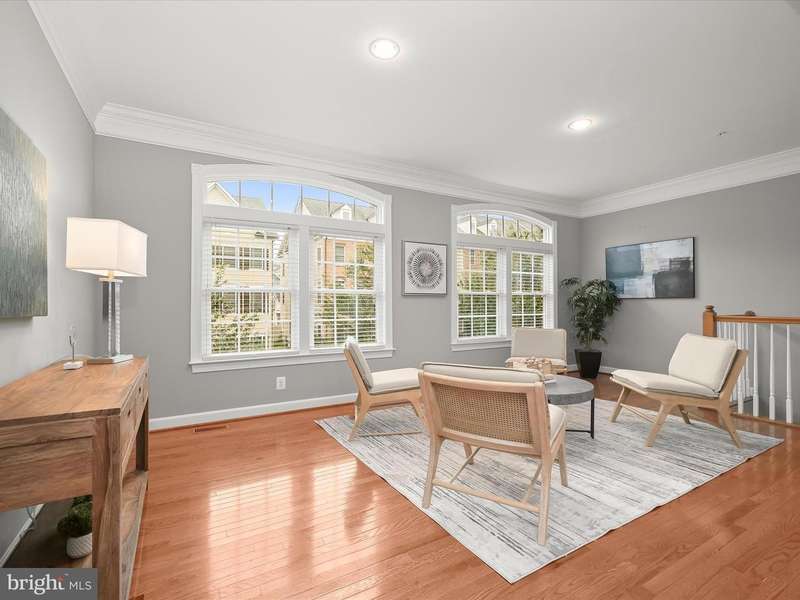 Welcome home to 8985 Tawes Street in Howard County's prestigious Maple Lawn community! The highlight of this immaculate brick-front luxury NV townhome in the Hillside District is an amazing recreation room on the first level with wide-plank LVP flooring, sizable custom storage closets, and a dramatic 14' ceiling. A guest bedroom, which could also serve as an office, and a full bathroom are also found on the first level. French doors lead to the detached two-car garage. The formal living room, dining room, kitchen and family room areas are all found on the second level. Kitchen highlights include an eat-in breakfast nook, newer stainless steel appliances and granite countertops. The family room is drenched in natural light and centers around a cozy gas fireplace. Ascend to the third level to find a sprawling primary suite with tray ceiling and two spacious walk-in closets. The primary bath offers a dual sink vanity, soaking tub and separate shower stall. Two additional secondary bedrooms with a shared bath and a laundry room complete the upper level. Conveniently located close to all major Baltimore/DC commuter routes, and with enviable amenities including a resort-style community pool, tennis courts, pickleball courts, basketball courts, walking trails, state-of-the-art gym and more - you'll quickly see why Maple Lawn is an award-winning planned community unlike any other in the region.