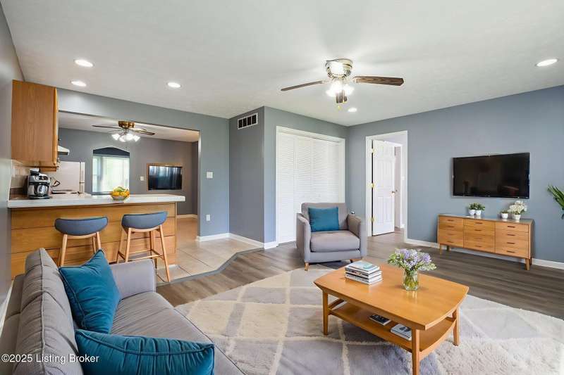 Not new, but ALMOST! PAINT, FLOORS REFINISHED OR NEW LVP, BLINDS, ROOF, and OAK cabinetry, white appliances, washer, dryer and water heater. Recent windows! Ready for living on one floor with 2 baths with tub/shower, loads of closets. Garage has opener and workshop ready for your items. Mostly fenced flat yard.