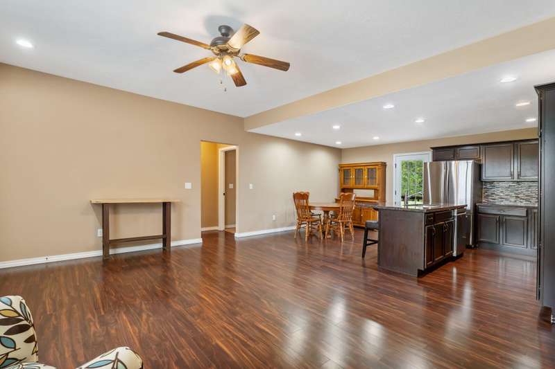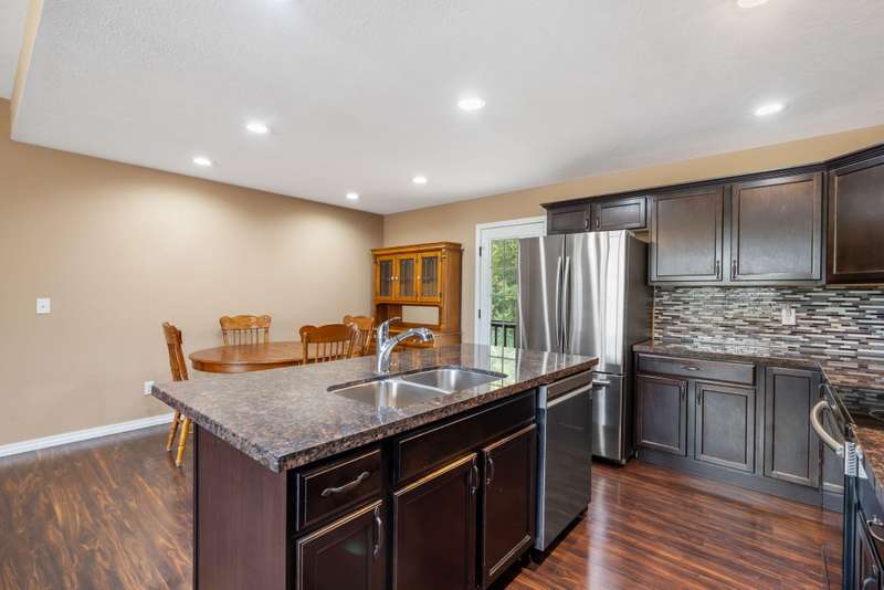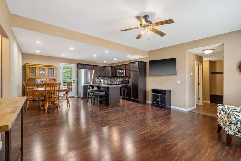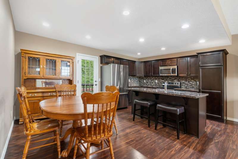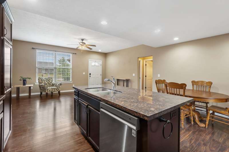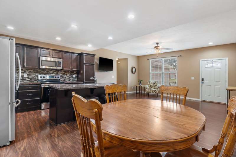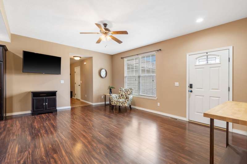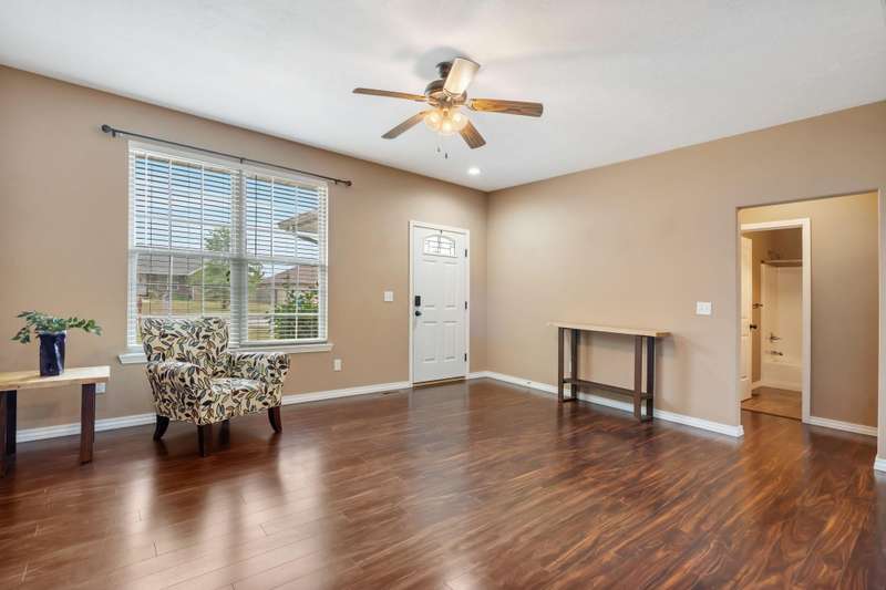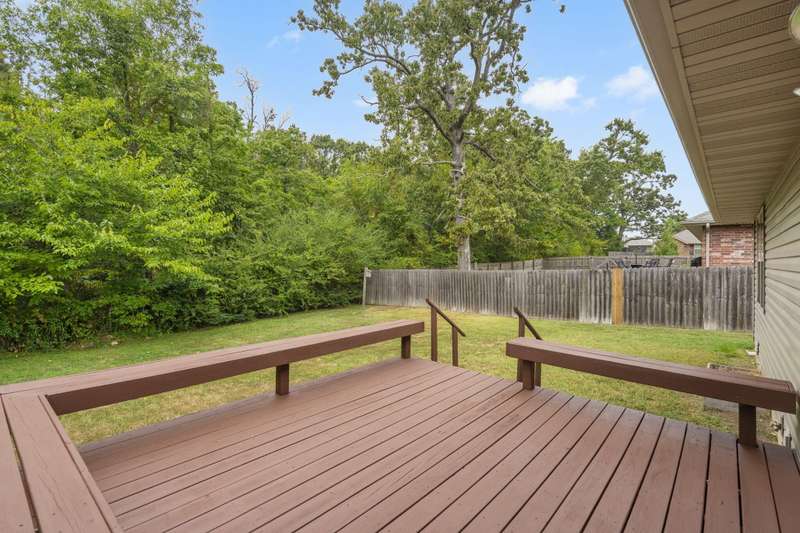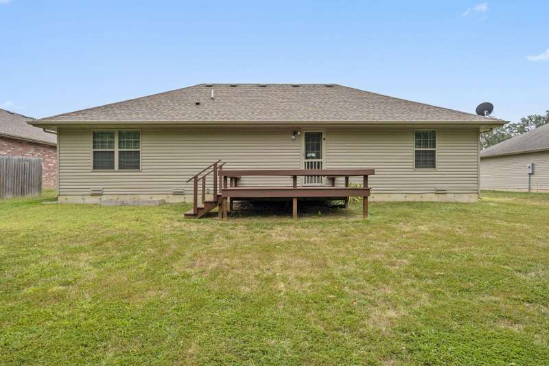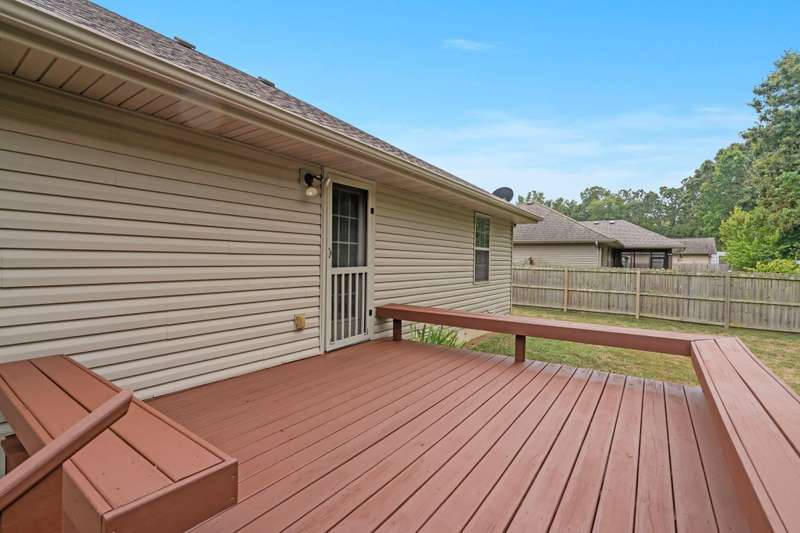 **Open house this Sunday 09/21 2-4 p.m.**Welcome to this beautifully maintained 3-bedroom, 2-bathroom home in Republic, MO! Designed with a split floor plan, this home combines comfort and function with an inviting open layout that centers around the kitchen. Featuring granite countertops, modern appliances, and plenty of workspace, the kitchen truly serves as the heart of the home.The spacious living area flows seamlessly with dark hardwood flooring. All three bedrooms are very spacious. The master is equipped with a walk in closet and double vanities in the bathroom. Step outside to enjoy a private wood deck overlooking a tree-lined backdrop, perfect for relaxing or entertaining. The exterior blends brick, stone, and vinyl siding with classic shutters and double-pane vinyl windows.The oversized, fully insulated garage is a standout -- complete with epoxy flooring and a convenient side entry door for everyday use.This home is a one owner home and has been very well taken care of. Don't miss out on the style, practicality, privacy and peace this property has to offer.