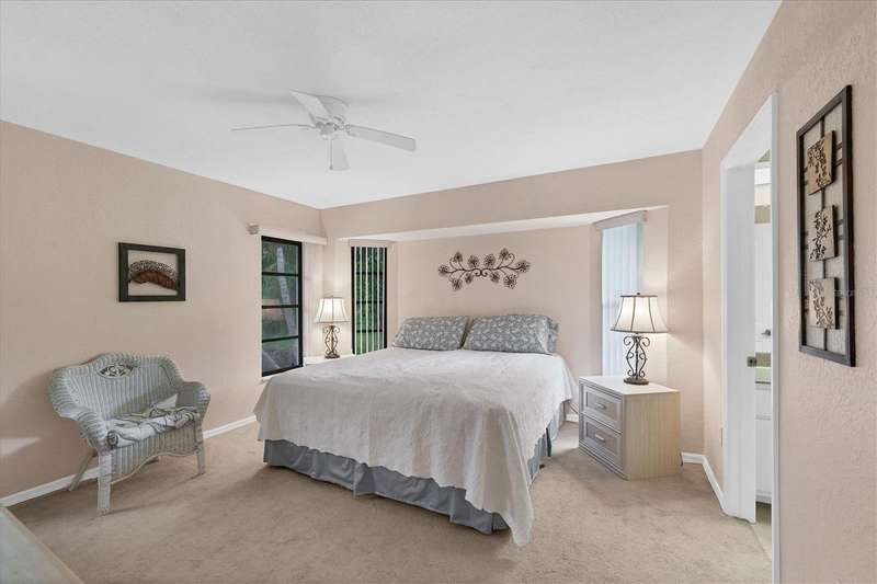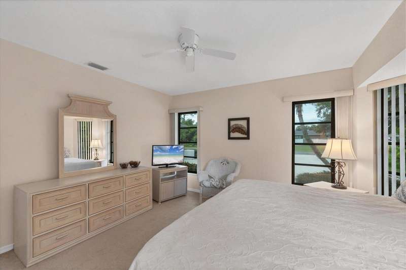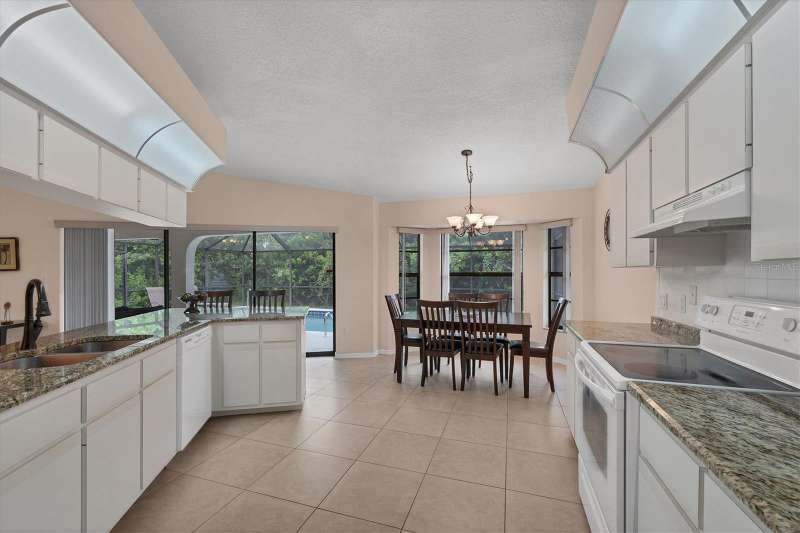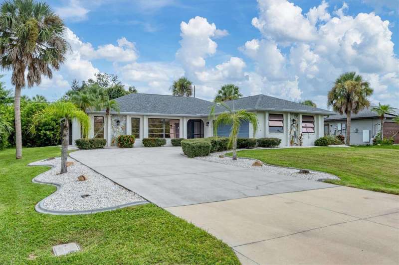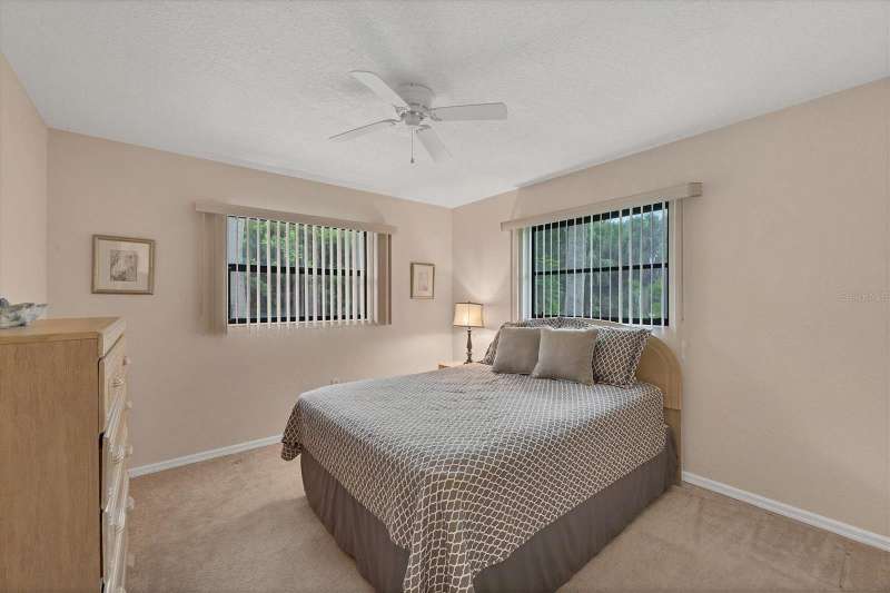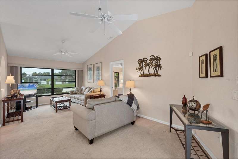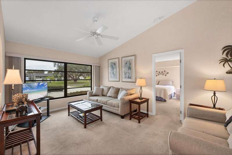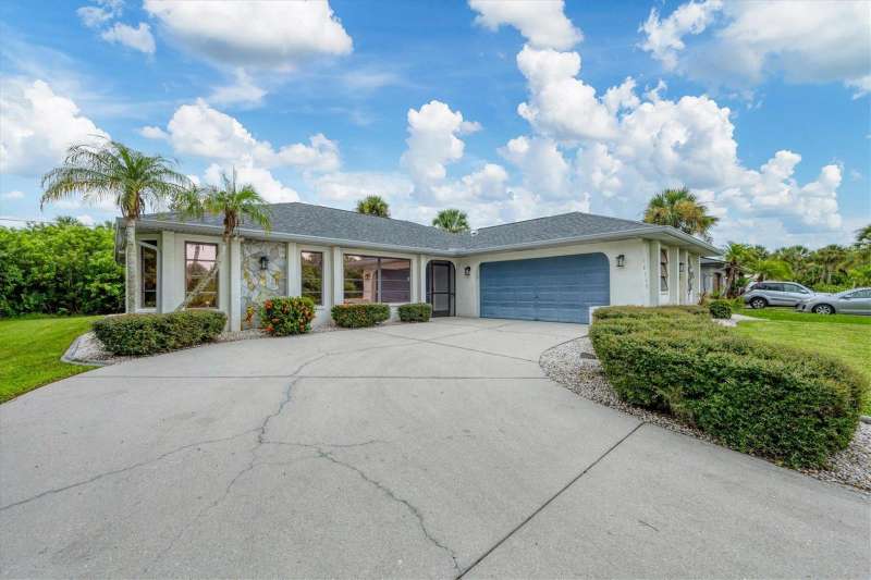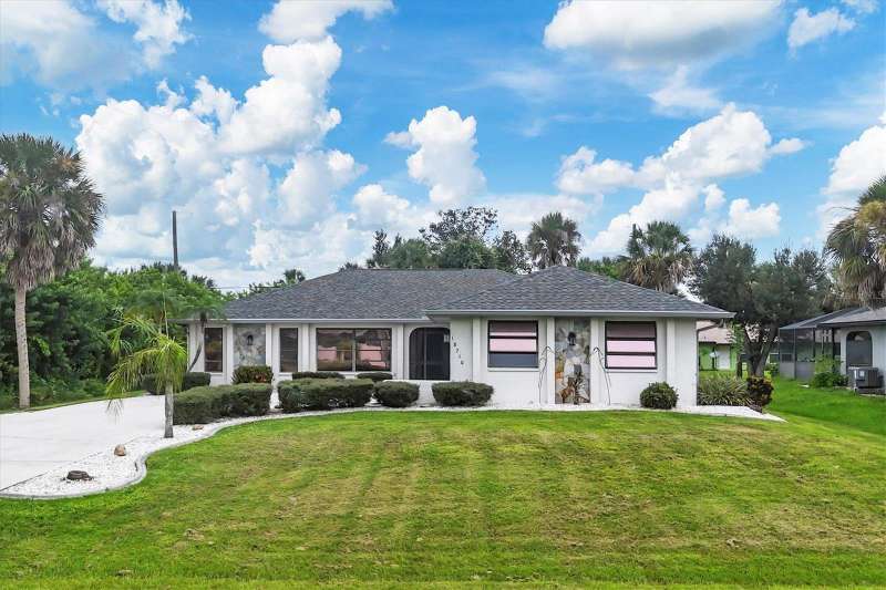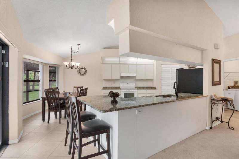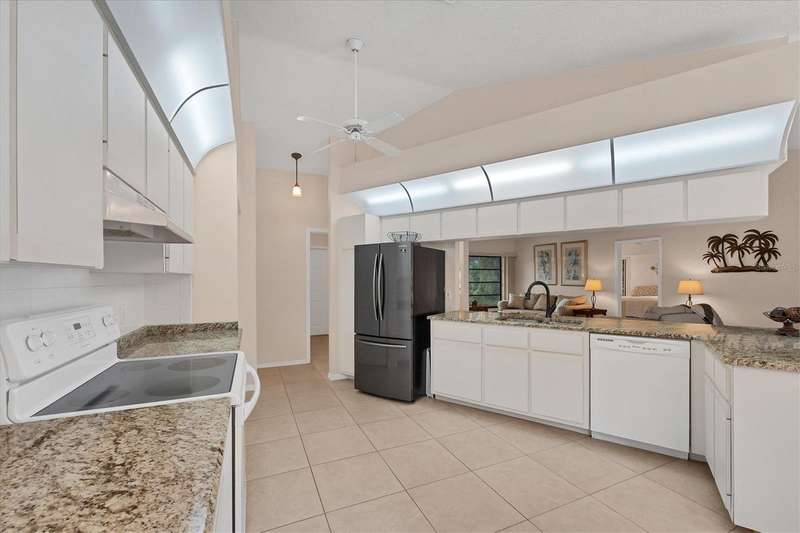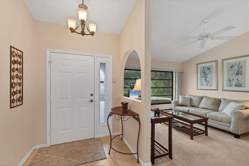 Welcome to this beautifully maintained 3-bedroom, 2-bath home offering the perfect combination of comfort and Florida lifestyle living. From the moment you arrive, you’ll notice the oversized side-entry garage with gutters, providing both functionality and curb appeal. Step inside to a spacious split-bedroom floor plan with soaring ceilings and a bright, open feel. Ceramic tile and carpet flooring flow throughout, while large sliding glass doors invite you out to the sparkling heated pool and screened lanai, ideal for relaxing or entertaining friends and family. The kitchen and living areas are designed for convenience and comfort, with plenty of natural light and easy access to the poolside patio. An inside laundry room adds practicality, while blinds on every window ensure privacy and shade. This home is being offered turnkey furnished, allowing you to move right in and start enjoying everything it has to offer. Outdoor features include security lighting, a newer roof for peace of mind, and a private backyard retreat centered around the pool. Whether you’re looking for a seasonal getaway or a full-time residence, this home has everything you need to enjoy the best of Florida living.