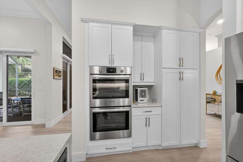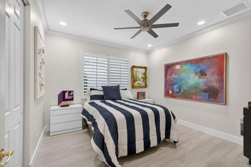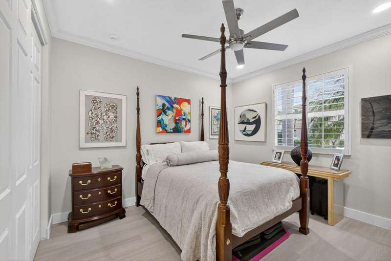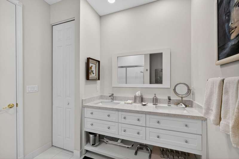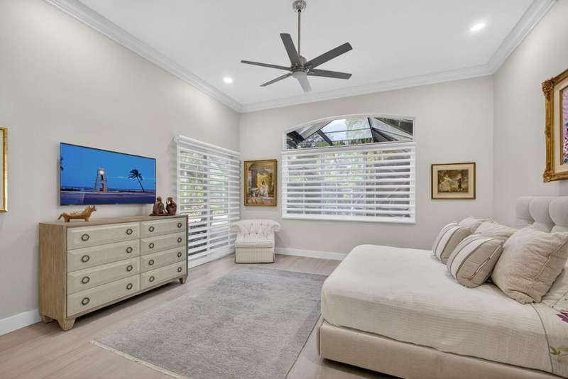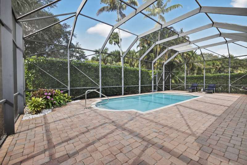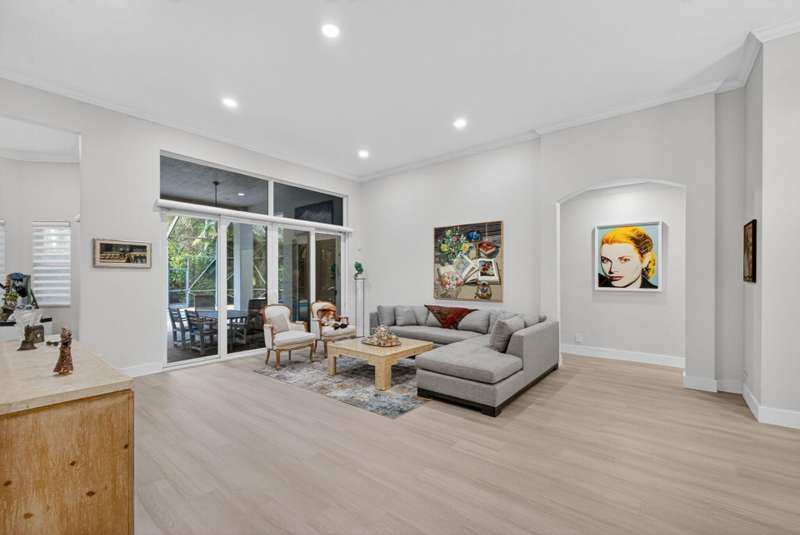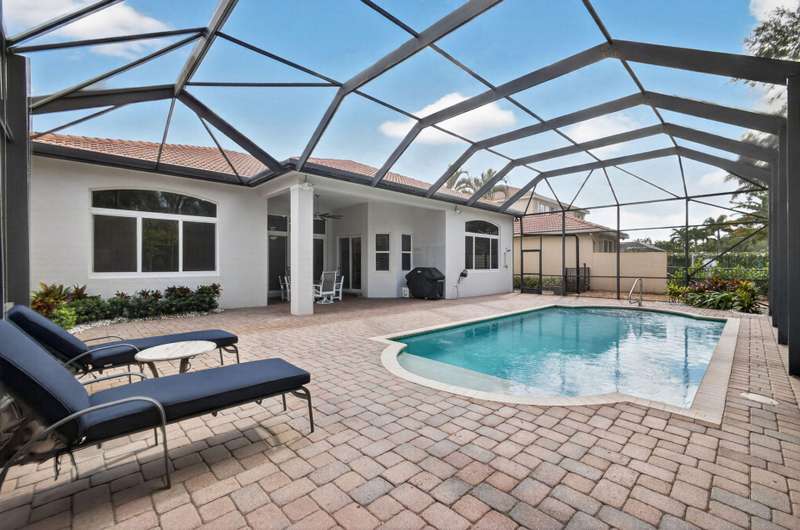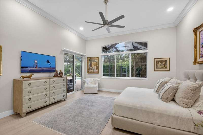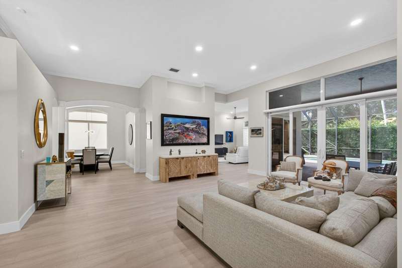 Must see this Beautifully remodeled one-level pool home in one of best gated communities in PBG. This 4-bedroom, 3 full bath ranch home has one of the nicest and most open floor plans in all of Mirabella. Renovated gourmet kitchen open to the family room features quartz countertops with a waterfall edge center island and matching quartz backsplash. High-end Bosch appliances & refinished wood cabinetry. All new light fixtures & LED recessed lighting throughout the home. Upgraded plank composite wood flooring throughout the entire home with upgraded wood base & crown molding. Large saltwater pool with screened enclosure, outdoor shower & large covered lanai area. Full impact glass windows & doors, whole house backup generator, custom automated Hunter Douglas window treatments + much more!