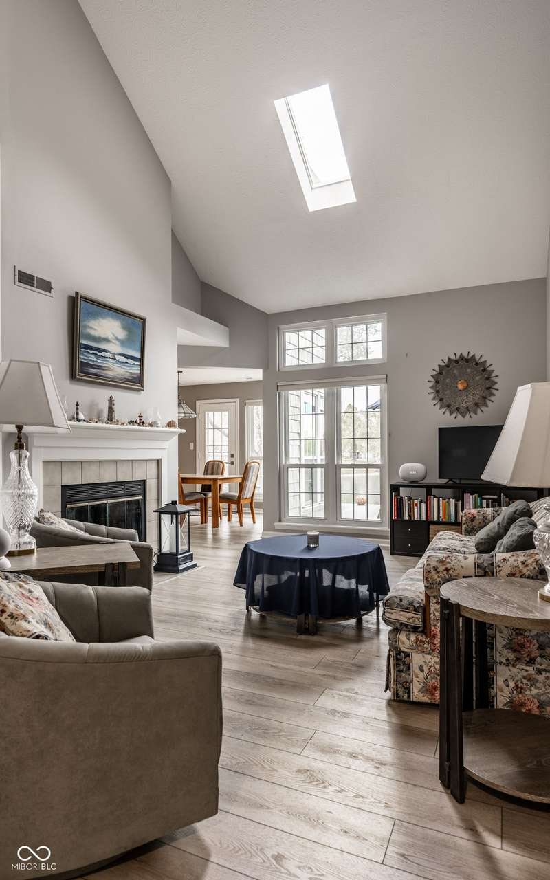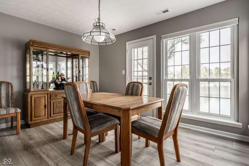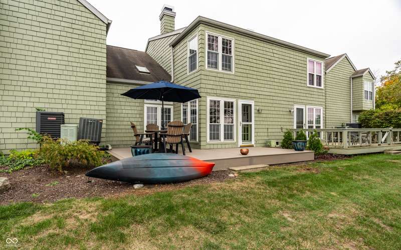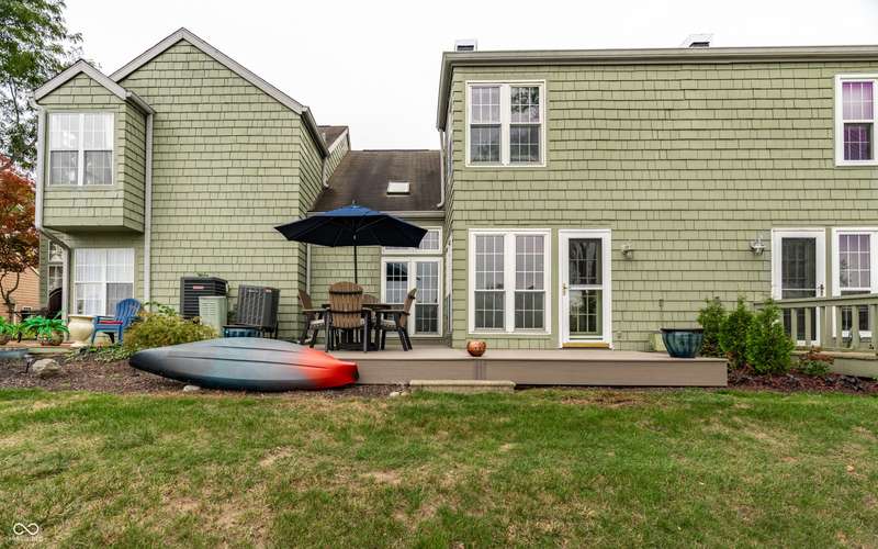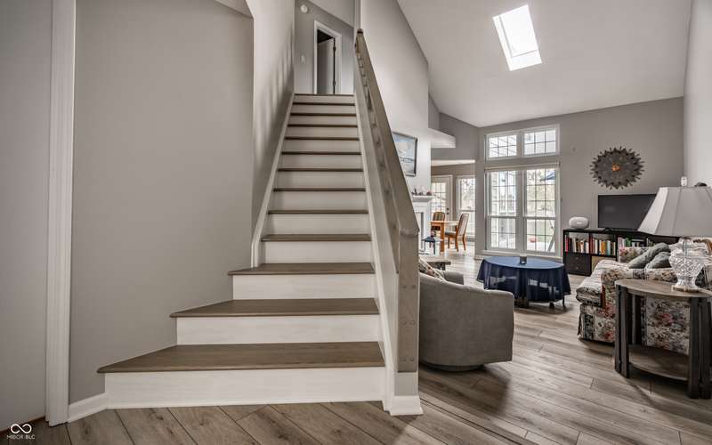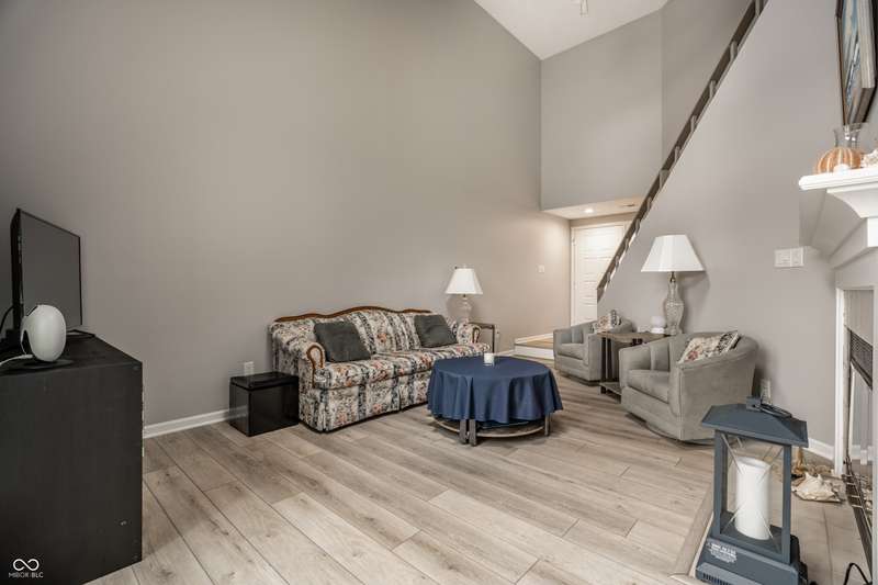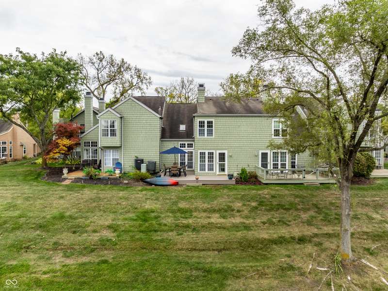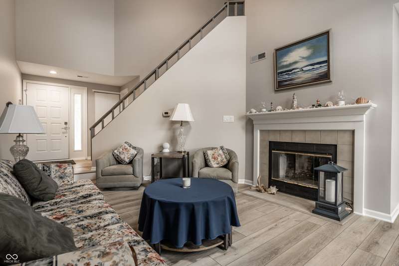 Experience lakeside living at its finest in this charming Cape Cod-style condominium nestled in the desirable Harbor Club community. With its classic cedar shingle exterior, fresh updates throughout, and breathtaking panoramic lake views, this 2 bedroom, 1.5 bath home offers a perfect blend of comfort, style, and tranquility. Step inside to a welcoming foyer that opens to an impressive two-story living room filled with natural light from a large skylight and soaring ceilings. The living space features laminate wood flooring throughout, a wood-burning fireplace with a tiled & wood mantel, and fresh neutral paint - creating a warm and inviting atmosphere. The open dining area flows seamlessly from the living room and overlooks the lake, offering the perfect backdrop for everyday meals or evening entertaining. The updated kitchen boasts quartz countertops, subway tile backsplash, newer cabinetry, and stainless steel appliances - all designed for both style and function. A conveniently located half bath on the main floor features a quartz vanity top and updated fixtures. Upstairs, an open staircase leads to a spacious primary suite and a generous second bedroom. The full bathroom impresses with its large walk-in shower enclosed by glass sliding doors, stone countertops, and beautiful tile & stone work. Step outside to the brand-new Trex composite deck, the ideal spot to relax and take in the peaceful, unobstructed views of the lake. Enjoy a low-maintenance lifestyle surrounded by nature's serenity - all within the convenience of the Harbor Club community with tons of amenities (pool, tennis, pickle ball, walking paths and more).
