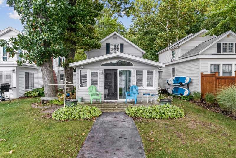 LEASED LAND Indian Lake! Charming Cottage with private frontage. Level lot, no step entrance. Enter and go straight through your home to the waterfront patio. Your pontoon will be on the like new boat lift (purchased last season) and theres a patio set on the pier bump out great for sunset. Swimmers will enjoy the sand bottom or choose to grab a float and relax! Kayaks are included, as well. The cottage comes furnished, just bring your swimsuits and stock the fridge! Two bedrooms upper level, bathroom with shower main floor. Sleeper sofa main floor. Leased land. Lots of time yet for Summer and then enjoy the Fall season. Nearby golf, fine dining, markets, breweries, wineries. Welcome to SW Michigan!