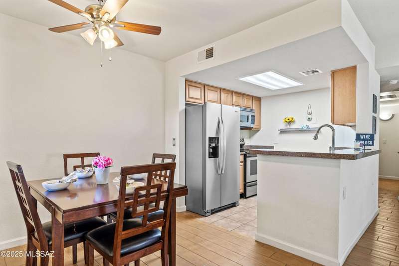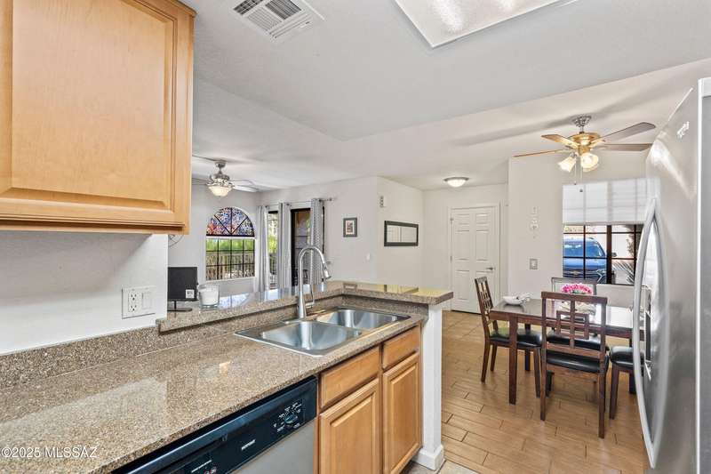Nestled in the highly coveted Starr Pass community-offering the perfect balance of serenity, scenery, and convenience. Located just minutes from the University of Arizona, Pima Community College, downtown Tucson, and the airport, it's ideal for those seeking both accessibility and tranquility. Step inside to discover a lovely kitchen with granite countertops, and a warm, inviting living space featuring distinctive wood-look ceramic tile. The spacious covered patio invites indoor-outdoor living and relaxation. Thoughtful touches like extra closet and storage space add to the home's functionality. Enjoy resort-style amenities including a private community pool, spa, gym, tennis courts, and clubhouse. Turnkey. All furnishings included.