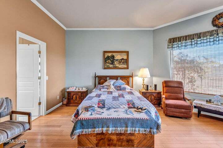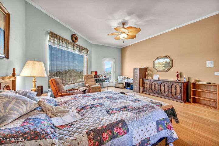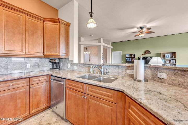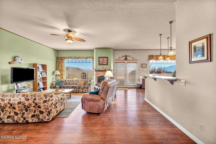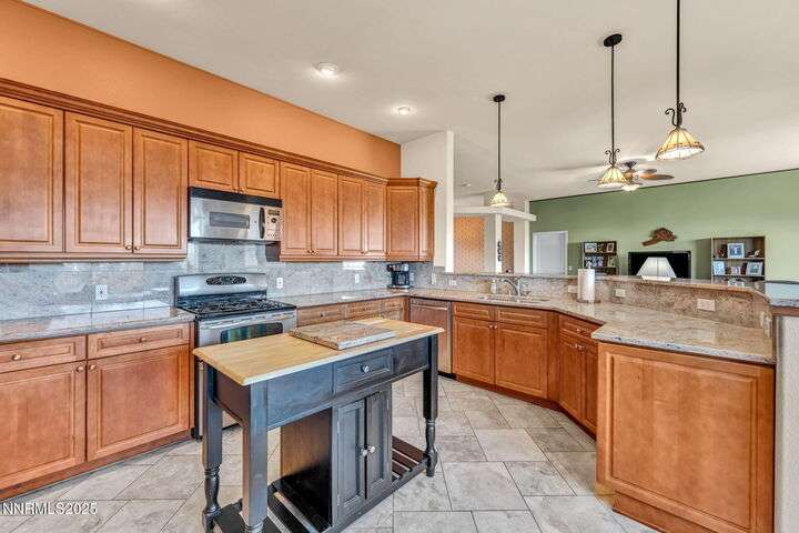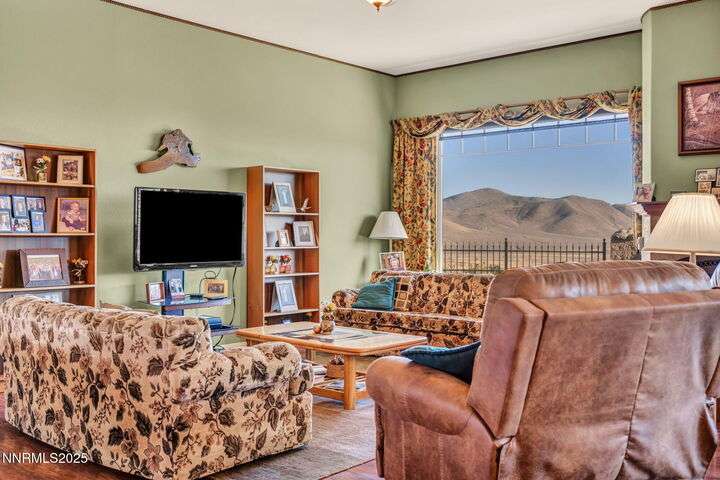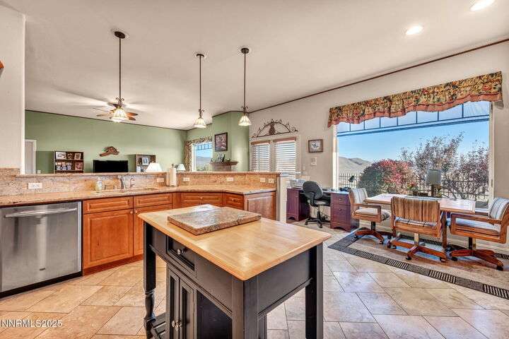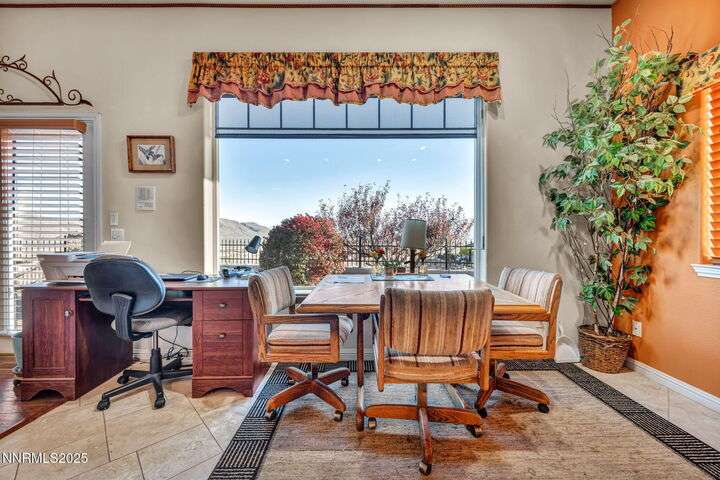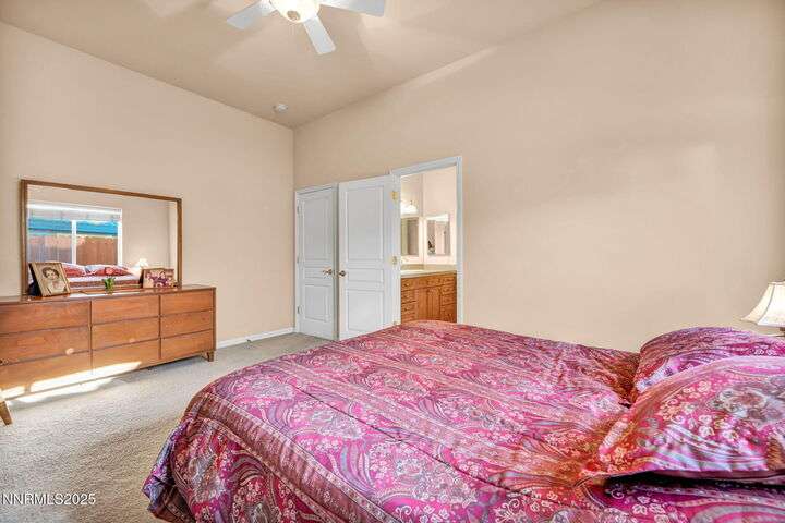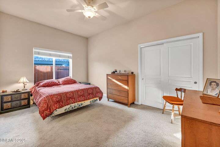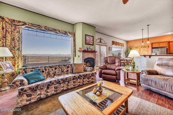 Welcome to this stunning single-level home in Carson City's desirable Sunridge Heights community. Offering breathtaking valley and mountain views, this beautifully maintained residence features an open and inviting floor plan with high ceilings, a spacious great room, and a cozy gas fireplace. The gourmet kitchen is appointed with granite countertops, stainless steel appliances, a large breakfast bar, and custom cabinetry perfect for entertaining. The primary suite offers a private patio entrance, bamboo flooring, and a luxurious bath with dual vanities, a soaking tub, and walk-in shower. Enjoy seamless indoor-outdoor living with a low maintenance backyard and sweeping views of the valley. Additional highlights include two guest bedrooms in the house, a dedicated laundry room, and an oversized three-car garage. This home also features a guest studio casita with it's own full bathroom. Conveniently located near schools, golf, and just minutes to Carson City or Lake Tahoe.