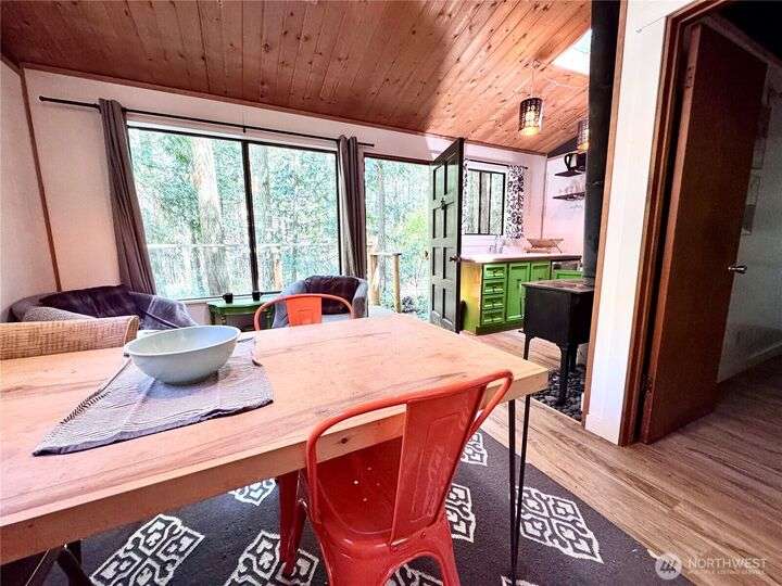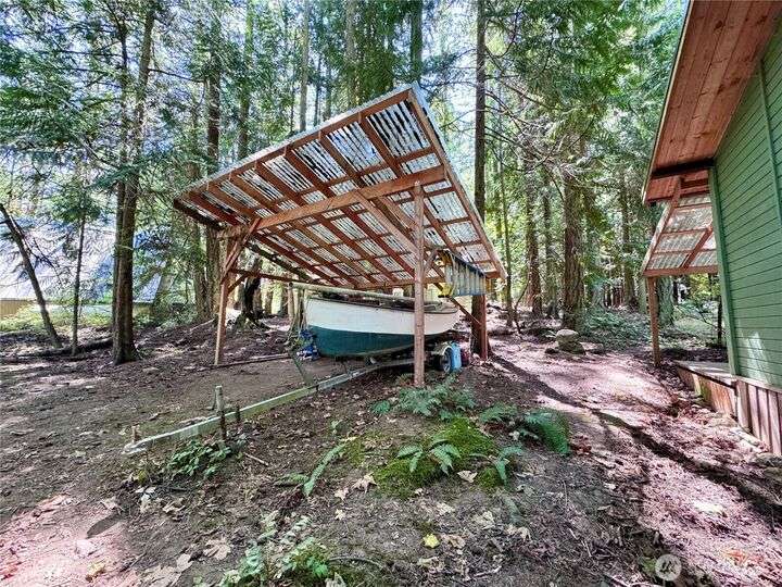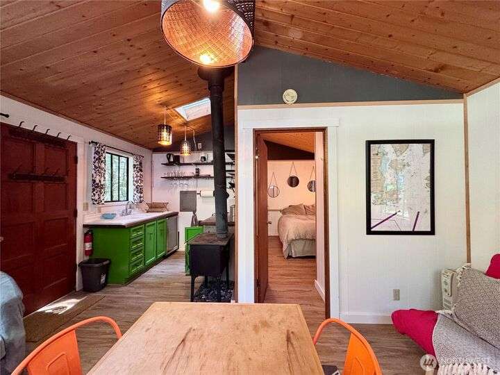 Charming one-bedroom cabin on Center Island! Surrounded by mature evergreens and maples, the setting is private and serene. Inside, the wood stove invites you to warm up and unwind, while the simple, open layout keeps life easy and comfortable. Ample covered storage provides space for all your gear and essentials. Conveniently located close to the community docks and clubhouse, island adventures have never been easier. Whether you're kayaking, boating, or beachcombing all day, this is the perfect place to kick back, relax, and recharge. Fulltime caretakers on island, airstrip, clubhouse with laundry and showers, and two community deepwater docks. Broadband coming soon. Easy access by water taxi, private boat or plane. Great island getaway!