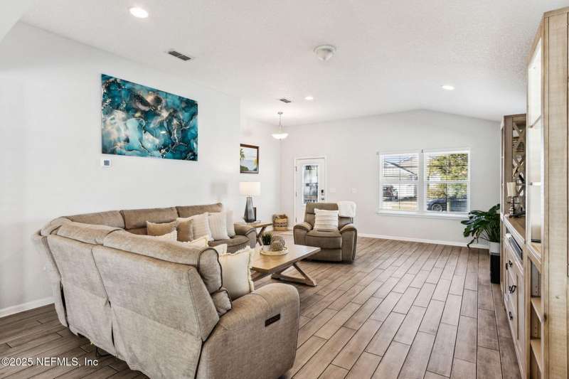 Nestled in the desirable Alta Lakes community, this beautiful 3-bedroom, 2-bathroom home boasts a bright and open floor plan, perfect for modern living. The spacious kitchen is a chef's dream, featuring sleek quartz countertops and a large center island, ideal for cooking, entertaining, and gathering with loved ones. Tile flooring throughout the main areas adds a stylish and low-maintenance touch, while the bedrooms offer plush carpeting for extra comfort. The primary suite provides a relaxing retreat, with two additional bedrooms that can be used for family, guests, or a home office.Alta Lakes is a community offering fantastic amenities, including a pool, playground, and sports courts. Conveniently located just minutes from River City Marketplace, Downtown Jacksonville, and Jacksonville Airport.Don't miss out-schedule your showing today!