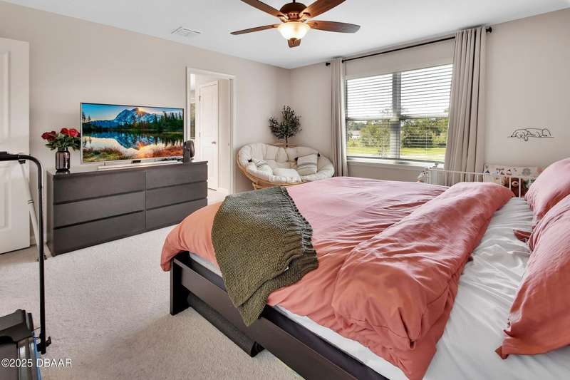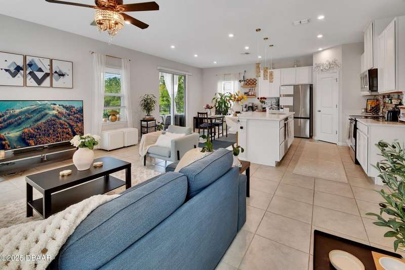 Welcome to your dream home in the Vibrant Lakewood Park Community Step into elegance with this stunning Windemere model home, built in 2022 by Ryan Homes. Located in the sought-after Lakewood Park neighborhood, this residence offers the perfect blend of modern design and natural beauty. As you enter the foyer, you're greeted by a striking staircase featuring a wrought iron and wood banister that leads gracefully to the second floor. Continue into the heart of the home where an open-concept layout seamlessly connects the living area, kitchen, eat-in space, and a versatile formal dining/flex room. The kitchen is a chef's delight, showcasing stainless steel appliances, Quartz countertops, pendant lighting, and a spacious island with bar seating"ideal for entertaining. The adjacent living area is bathed in natural light and offers serene views of the screened back porch, pond, and conservation area. Need extra space? The main floor includes a dedicated room that can be customized as a formal dining room, reading nook, home office, or anything your lifestyle requires. Upstairs, you'll find a generous loft, four bedrooms, and two full bathrooms. The primary suite overlooks the tranquil pond and features a walk-in closet and a luxurious en suite bath with a garden soaking tub, dual vanities, walk-in shower, linen closet, and an additional walk-in closet. The three secondary bedrooms are spacious and include built-in closets. Additional highlights include: HVAC system equipped with UV lights for enhanced air quality, screened back porch with peaceful pond and conservation views, flexible living spaces to suit your needs, fenced backyard, additional storage under stairwell, front landscaping with white marble chip rock, reclaimed water for irragation. Included in the association is a pool and playground. Easy access to I-4, Orlando and Daytona Beach within a 30 minute drive. Historical downtown Deland, Stetson University, Athens Theater, local eateries, and much more are nearby. This home is move-in ready and waiting for you to make it your own