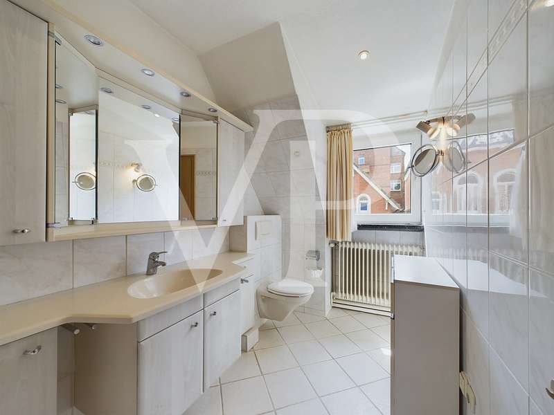 This charming townhouse in Emden offers everything you could wish for on 178m² of living space. The idyllic Emden Delft is only a 2-minute walk away, and the city center is also within easy reach. Despite this central location, the house is in a quiet area that offers you relaxation and respite from the hustle and bustle of the city. Upon entering the house, you enter through the door into an inviting hallway. To the right is a practical guest WC, ideal for visitors. If you continue straight ahead, you will reach the spacious living room, which scores with access to the terrace - perfect for sociable evenings outdoors or relaxing hours in the sun. To the right of the living room you will find the kitchen, which offers enough space and equipment for culinary delights. From the living room, you can access a utility room, which also has access to the cellar, providing practical storage space and room for household chores. The upper floor is equally well thought out. To the right of the hallway is a fully equipped bathroom with a whirlpool. Continuing along the hallway, you will find a spacious bedroom on the left-hand side, which is ideal as a master bedroom. To the right is another room that can be used flexibly as a bedroom or office - perfect for a home office or guests. Right next to it are two further bedrooms, which offer enough space for the whole family or individual uses. The house also has an inviting sauna in the attic, which provides relaxing wellness moments. This house is ideal for families or couples looking for a spacious, quiet yet centrally located home. See this charming townhouse for yourself and experience the perfect combination of peace, comfort and proximity to the city. Welcome to your new home in Emden!