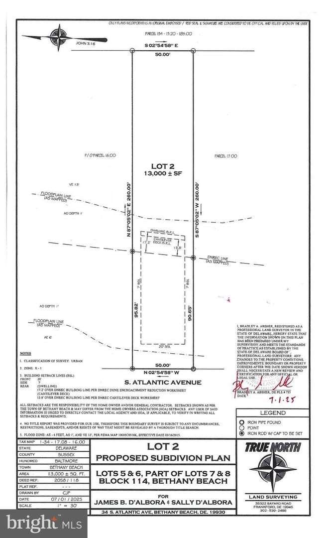 Oceanfront Lot - Rare Offering! This 50' x 260' parcel presents a unique chance to create your ideal beach retreat with unobstructed ocean views and your own dune crossover just steps from the backyard. Wake up to spectacular sunrises, spend carefree summer days on the sand, and unwind to the sound of the waves each evening. Ideally located just a short walk from downtown Bethany's restaurants, shops, and boardwalk, this property offers both tranquility and convenience-leave the car behind and enjoy everything by foot. Opportunities to own an oceanfront lot in Bethany are exceedingly scarce-don't miss your moment to make this coastal dream a reality. Existing home will be removed, and the property will be subdivided prior to settlement.
