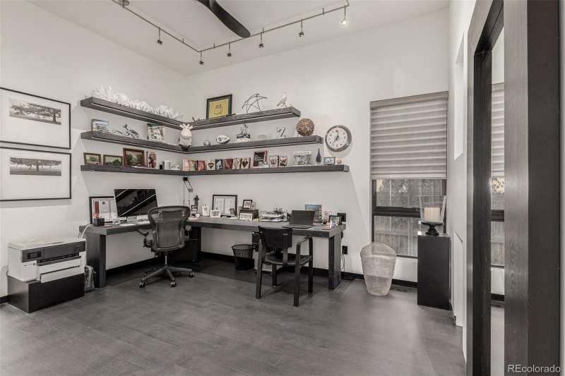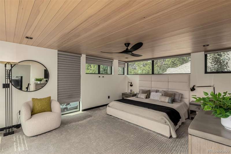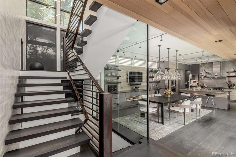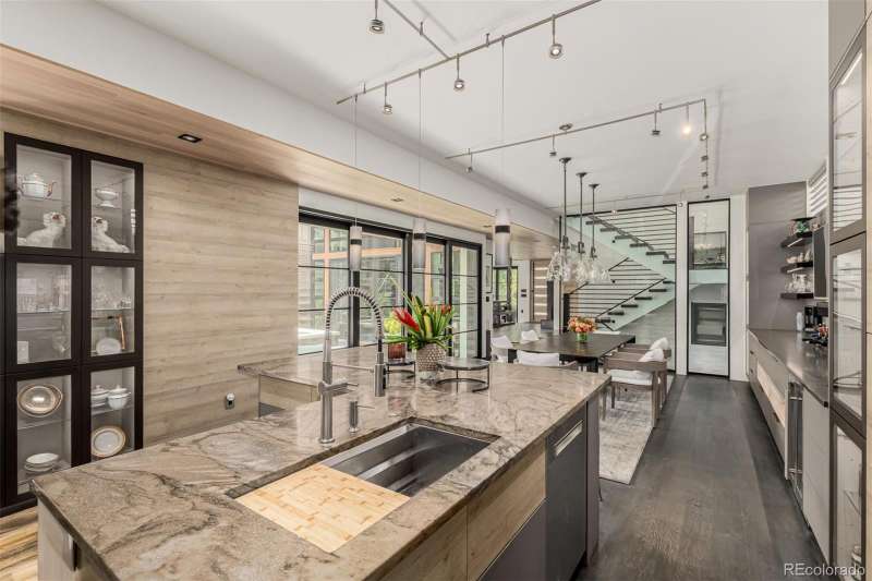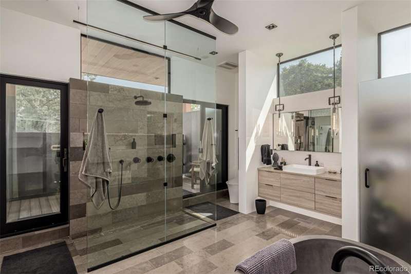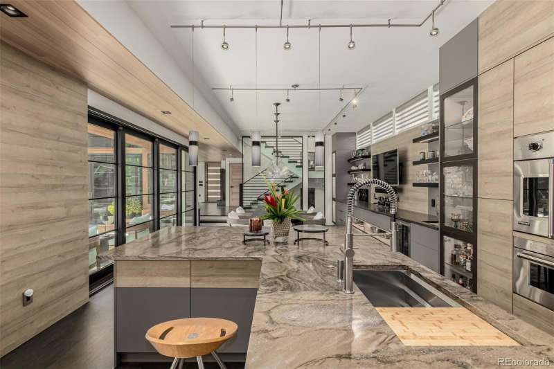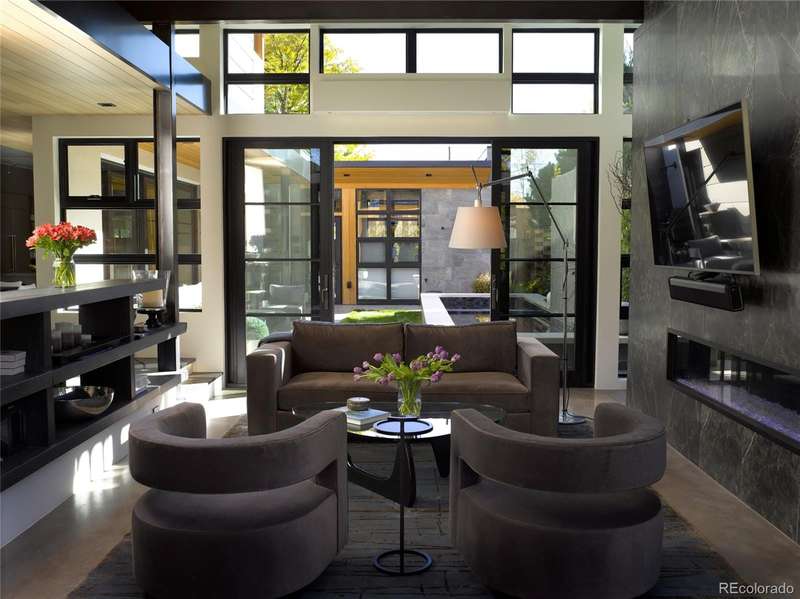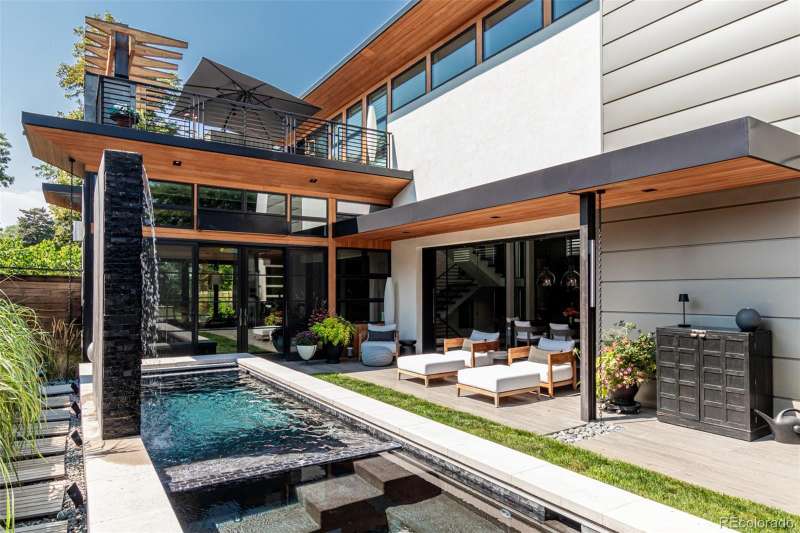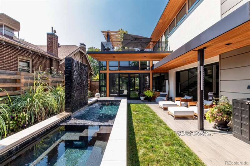 Contemporary Custom Masterpiece one block from Washington Park was designed by architect Ron Faleide. Outstanding custom features and detailing throughout. Upon entering with the sound of the ribbed waterfall fountain, your focus turns to the sunken living room with a full marble fireplace wall and glass walls opening to two patios. The showpiece kitchen great room has a large island for gathering with casual and formal dining. These rooms open with a Marvin Ultimate glass wall/door system to a secluded courtyard with heated pool/spa and waterfall wall. The kitchen offers high-end professional appliances to entice fabulous recipes- Dacor panelized refrigerator, Viking 7 Series gas range cooktop with grill, Wolf convection steam oven, Viking two door commercial series convection oven and Dacor drawer microwave. Main floor spacious home office with high ceilings, built-in desks and lit floating display shelving. The main level continues with a laundry room with sink, powder bath and an outstanding Zen like bedroom suite opening to the west courtyard with covered seating gas fire feature and dining area. An outstanding feature is the floating stairwell, glass wall and custom railing. The grand primary suite spans the entire upper level. The sleeping area opens to a rooftop deck with an architectural pergola overhang with mountain and Smith Lake views. The generous dressing room includes a modern closet system, Shoe Zen, ironing board & mirror, and Zephyr beverage refrigerator. Continuing with the large primary bath with double Kohler sinks, walk through shower with multiple spray heads, two comfort bidet toilets and Avalon free standing NativeStone soaking tub and stackable washer/dryer. This bath area opens to a private covered outdoor wood deck with outdoor shower. The lower-level has a calming entertainment room with massive light generating window well is complete with an elaborate bar/ mini-kitchen, 3rd Bedroom with designer 3/4 bath and storage room.