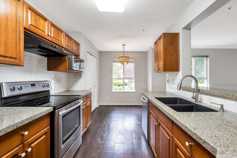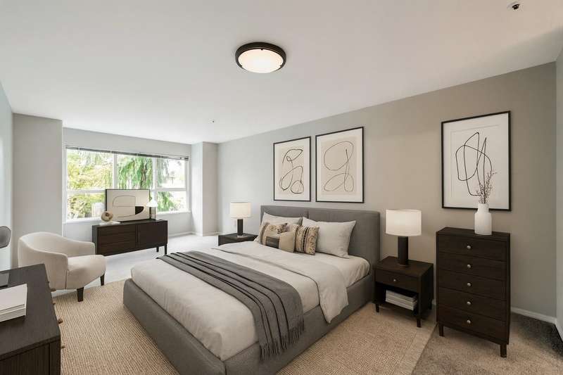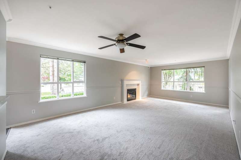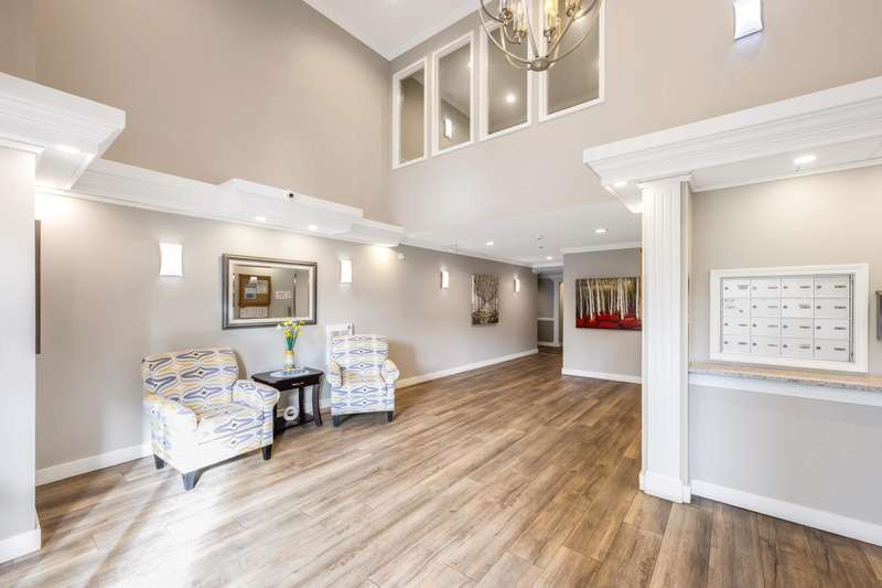 Very bright end unit with lots of large windows that's move in ready 2 beds, 2 full baths in well maintained CHELSEA GARDENS a 55+ community in MAYFAIR bldg where 2 pets (max 15" at shoulder allowed) . Freshly painted including ceiling and trims and new carpeting throughout. Kitchen boasts vinyl planking, stainless steel appliances, granite countertops and breakfast nook by east facing window overlooking gardens. Lvg room with cozy fireplace and crown moulding has sliders to the covered south facing wrap around deck great for container gardening and enjoying the sun. Both full baths have vinyl plank flooring, granite counter tops. CHELSEA has 3 guest suites, reflection ponds and outdoor pool, exercise room, woodworking shop, hot tub, library, English pub and rentable fireside room.