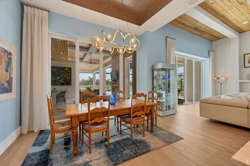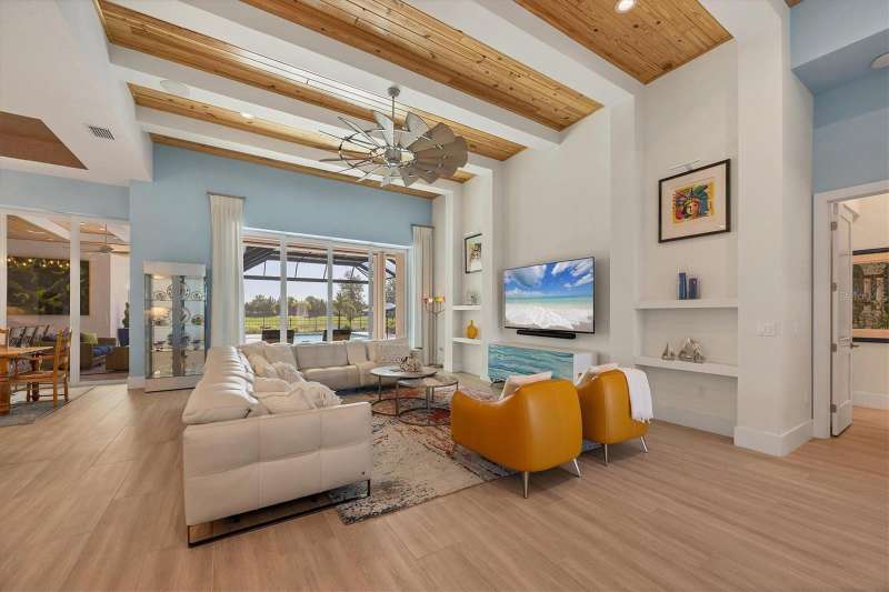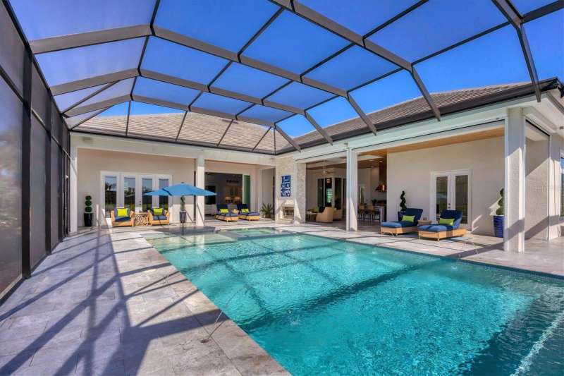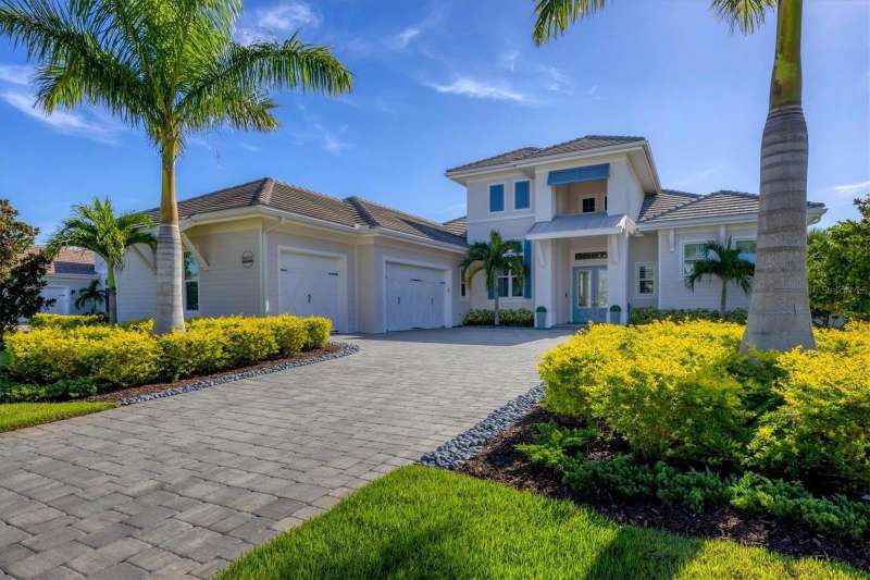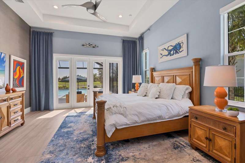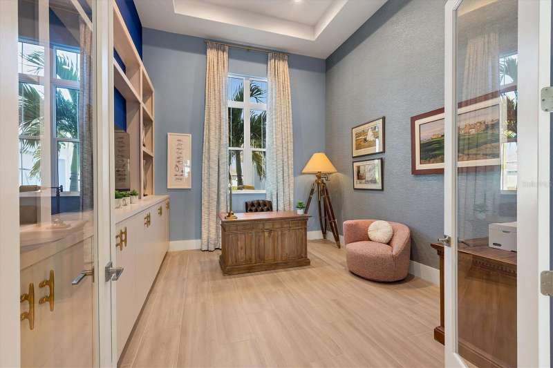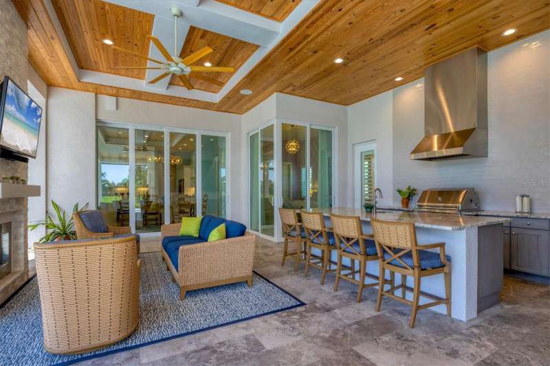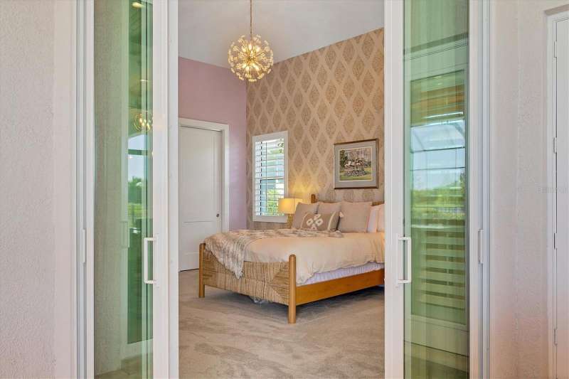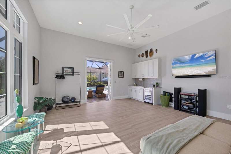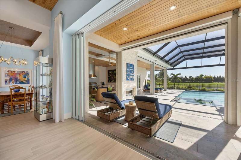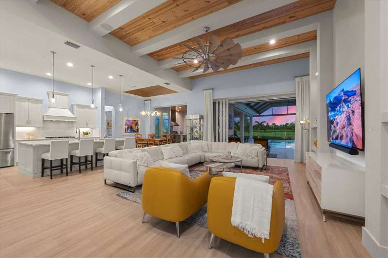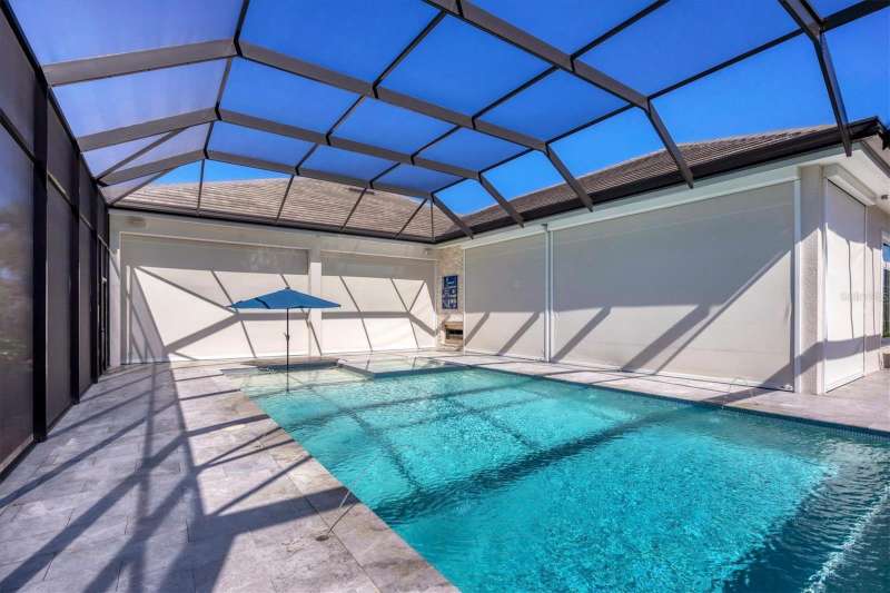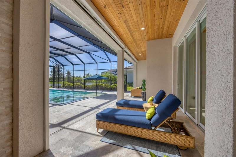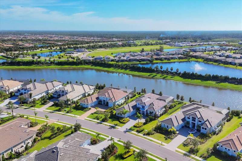 Under contract-accepting backup offers. Within the prestigious gates of The Lake Club, this stunning 4-bedroom, 5.5-bathroom estate with a private casita/bonus room and dedicated office embodies the pinnacle of elegance and resort-style living. Positioned on a serene lake with no neighbors behind, the home offers privacy and sophistication. From the moment you arrive, the paver driveway, mature landscaping with accent lighting, and a 3-car side-load garage set the tone for the refined lifestyle within. Step through the double-door entrance into a thoughtfully designed open floor plan with soaring ceilings, IMPACT GLASS windows and doors, and seamless indoor-outdoor living. The great room boasts 14-foot custom wood ceilings, 12-foot sliding doors, tile plank flooring, and custom built-ins, while the chef’s kitchen dazzles with stainless steel appliances, wall oven with convection, microwave, oversized island, dry bar, quartz countertops, and a walk-in pantry with wood shelving. The primary suite is a private retreat with double glass doors opening to the lanai, remote-controlled shades, custom closets and a spa-like bathroom featuring a walk-in shower, soaking tub, split vanities, and quartz countertops. Each additional bedroom includes an en-suite bathroom, ensuring comfort and privacy for family and guests. A highlight of the home, the casita/bonus room offers a private double-door entrance, en-suite bath with walk-in shower, quartz counters, wet bar with wine refrigerator, and remote-controlled shades—ideal as a guest suite, media room, gym or retreat. The den/study impresses with double glass doors and custom built-ins. The outdoor living area is designed for entertaining and relaxation. A panoramic screen frames sweeping water views, while the expansive lanai features a custom wood ceiling, tile deck, gas fireplace, outdoor kitchen with gas grill, wet bar, and refrigerator. The heated saltwater pool with sun shelf, infinity-edge spa, and water feature creates the perfect backdrop for resort-style living, enhanced by hurricane-rated remote-controlled screens for year-round comfort. Additional highlights include a bedroom with zero-edge sliding doors to the lanai and pool bath access, fenced yard, whole house generator, Sonos Smart Home system with Wi-Fi extenders, dimmer switches throughout and a separate laundry room with Whirlpool washer/dryer, sink, cabinets, quartz counters, and a whole house water treatment system. This home is the perfect combination of timeless design, luxurious finishes, and modern conveniences, all within Lakewood Ranch’s most coveted community renowned for its exclusive amenities, clubhouse, and lifestyle. Residents of The Lake Club enjoy a world-class array of amenities, including two resort-style heated pools, a newly renovated clubhouse with fine dining and bar, state-of-the-art fitness center, spa, tennis and pickleball courts, playground, and two dog parks—all enhanced by the services of a full-time concierge and activities director. Beyond the gates, you’re not far from award winning beaches and just minutes from The Mall at University Town Center, Lakewood Ranch Main Street, Waterside Place, downtown Sarasota and an abundance of shopping, dining and cultural destinations.