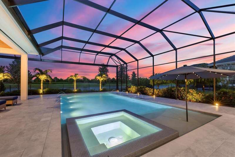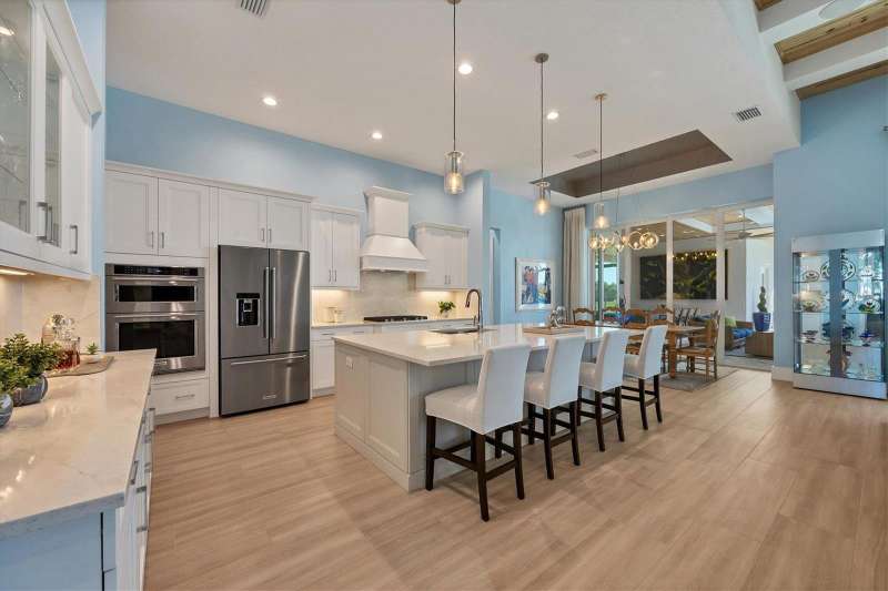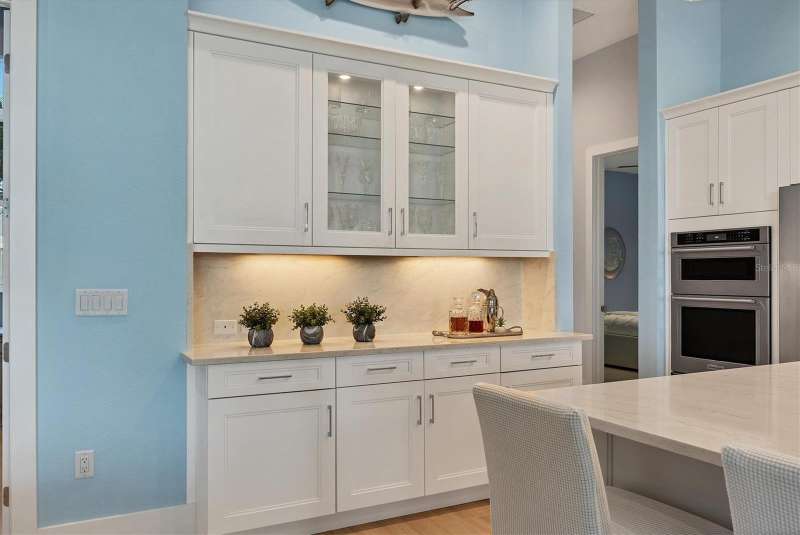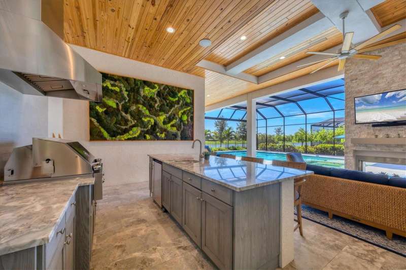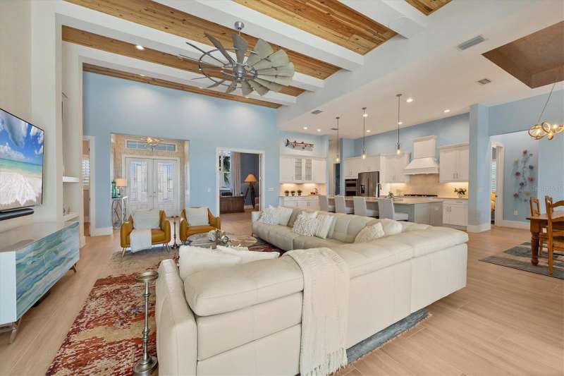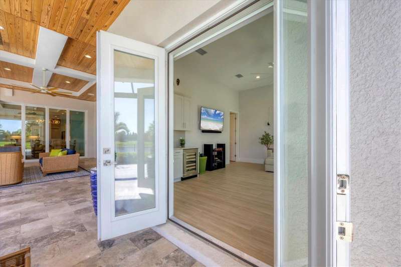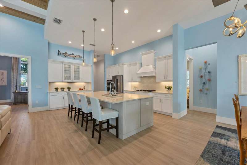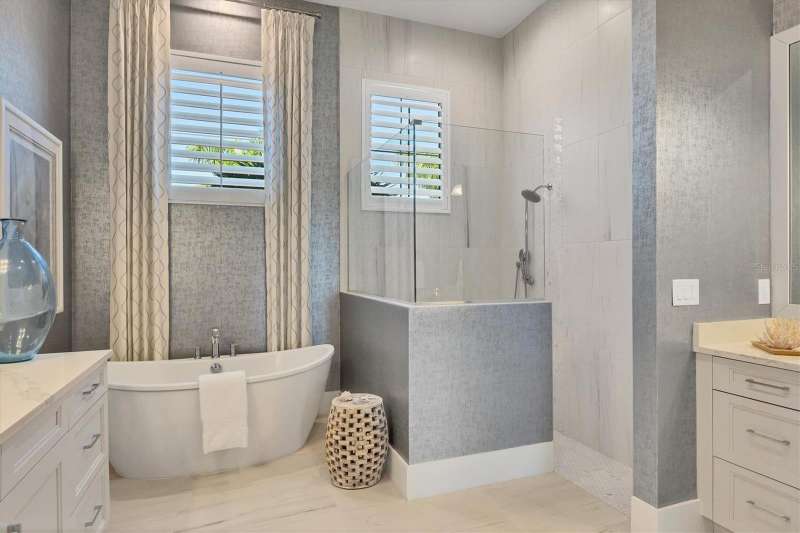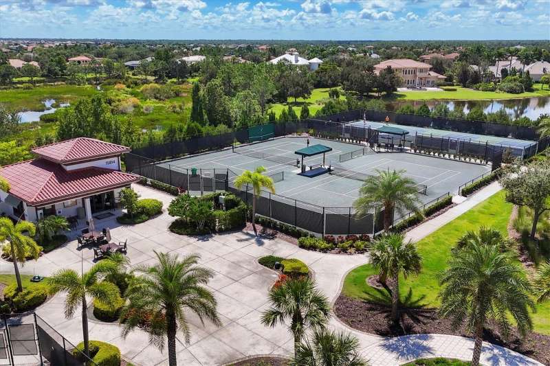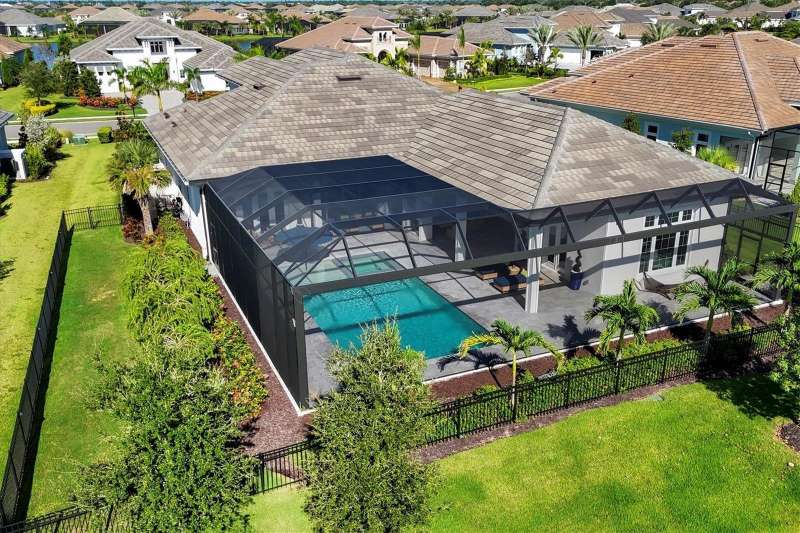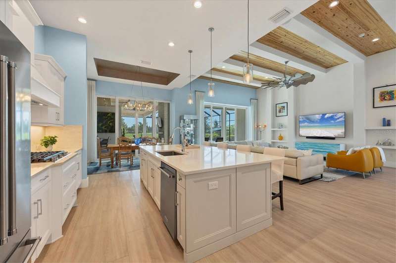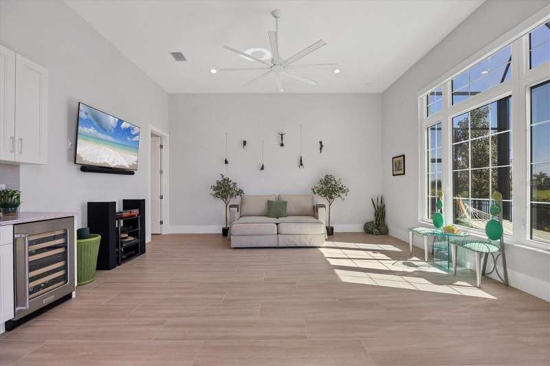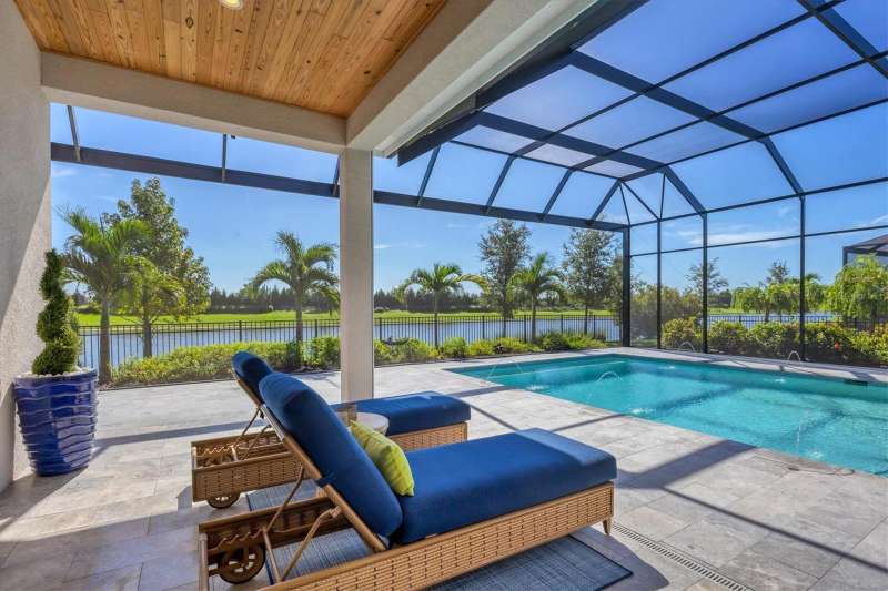 Under contract-accepting backup offers. Within the prestigious gates of The Lake Club, this stunning 4-bedroom, 5.5-bathroom estate with a private casita/bonus room and dedicated office embodies the pinnacle of elegance and resort-style living. Positioned on a serene lake with no neighbors behind, the home offers privacy and sophistication. From the moment you arrive, the paver driveway, mature landscaping with accent lighting, and a 3-car side-load garage set the tone for the refined lifestyle within. Step through the double-door entrance into a thoughtfully designed open floor plan with soaring ceilings, IMPACT GLASS windows and doors, and seamless indoor-outdoor living. The great room boasts 14-foot custom wood ceilings, 12-foot sliding doors, tile plank flooring, and custom built-ins, while the chef’s kitchen dazzles with stainless steel appliances, wall oven with convection, microwave, oversized island, dry bar, quartz countertops, and a walk-in pantry with wood shelving. The primary suite is a private retreat with double glass doors opening to the lanai, remote-controlled shades, custom closets and a spa-like bathroom featuring a walk-in shower, soaking tub, split vanities, and quartz countertops. Each additional bedroom includes an en-suite bathroom, ensuring comfort and privacy for family and guests. A highlight of the home, the casita/bonus room offers a private double-door entrance, en-suite bath with walk-in shower, quartz counters, wet bar with wine refrigerator, and remote-controlled shades—ideal as a guest suite, media room, gym or retreat. The den/study impresses with double glass doors and custom built-ins. The outdoor living area is designed for entertaining and relaxation. A panoramic screen frames sweeping water views, while the expansive lanai features a custom wood ceiling, tile deck, gas fireplace, outdoor kitchen with gas grill, wet bar, and refrigerator. The heated saltwater pool with sun shelf, infinity-edge spa, and water feature creates the perfect backdrop for resort-style living, enhanced by hurricane-rated remote-controlled screens for year-round comfort. Additional highlights include a bedroom with zero-edge sliding doors to the lanai and pool bath access, fenced yard, whole house generator, Sonos Smart Home system with Wi-Fi extenders, dimmer switches throughout and a separate laundry room with Whirlpool washer/dryer, sink, cabinets, quartz counters, and a whole house water treatment system. This home is the perfect combination of timeless design, luxurious finishes, and modern conveniences, all within Lakewood Ranch’s most coveted community renowned for its exclusive amenities, clubhouse, and lifestyle. Residents of The Lake Club enjoy a world-class array of amenities, including two resort-style heated pools, a newly renovated clubhouse with fine dining and bar, state-of-the-art fitness center, spa, tennis and pickleball courts, playground, and two dog parks—all enhanced by the services of a full-time concierge and activities director. Beyond the gates, you’re not far from award winning beaches and just minutes from The Mall at University Town Center, Lakewood Ranch Main Street, Waterside Place, downtown Sarasota and an abundance of shopping, dining and cultural destinations.