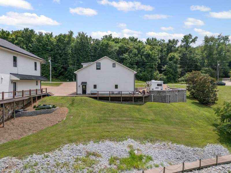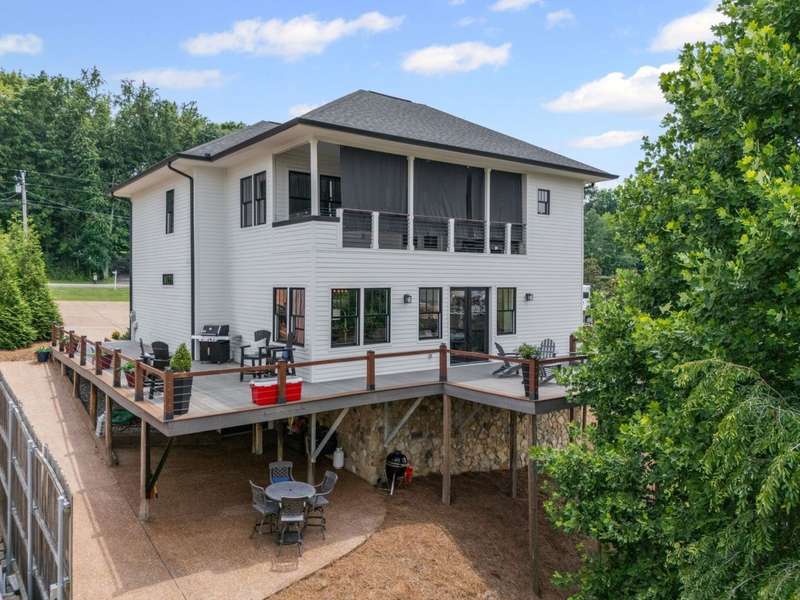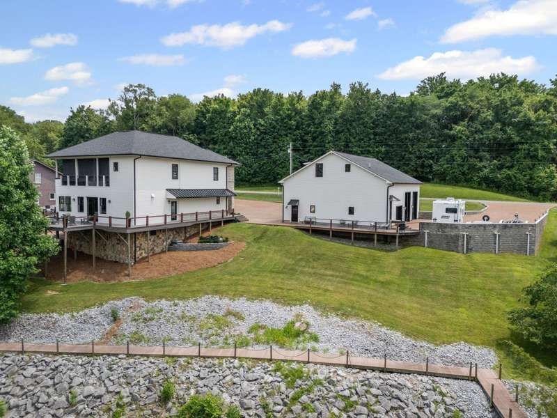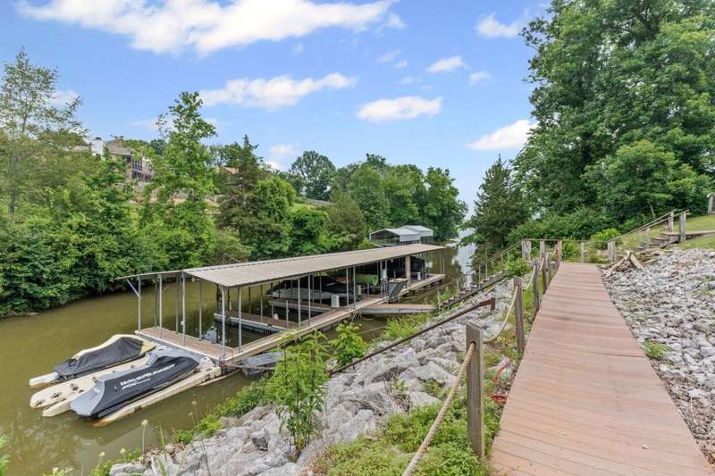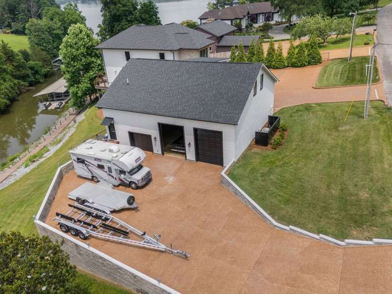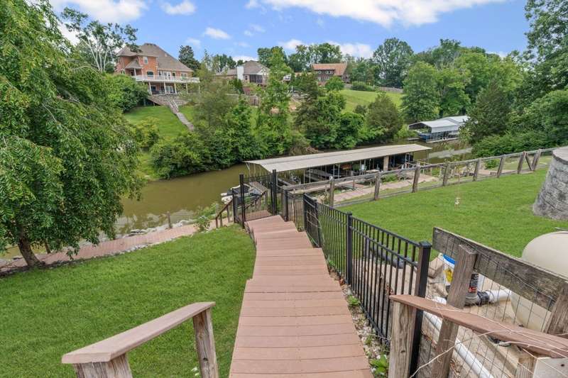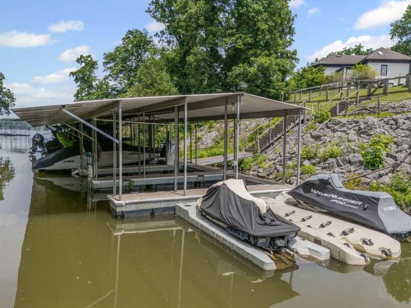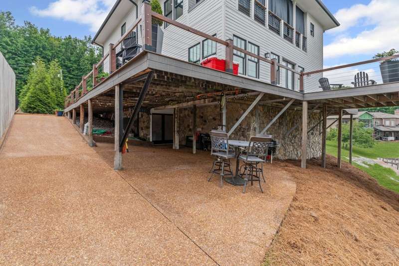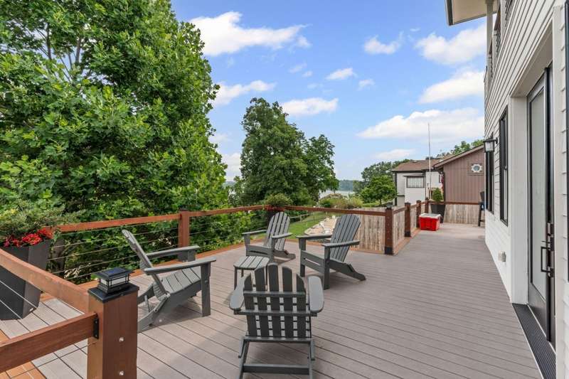 Motivated Seller l Lake Life Just Got Better!Check out the video link below or: https://www.youtube.com/embed/x1P8Vu3tBrQ ,Welcome to your dream lake retreat! This stunning, fully remodeled lakefront home is the perfect blend of luxury, comfort, and lifestyle. Nestled in a peaceful cove, enjoy breathtaking water views from the expansive wrap-around deck-ideal for morning coffee, evening sunsets, or entertaining under the stars. A private staircase leads you down to the scenic community boardwalk, which winds along the shoreline and connects you to two deeded boat slips w/ power-just bring your water toys!The showstopper? A massive detached 50' x 40', 8-car garage, fully insulated with central HVAC, perfect for storing boats, RVs, cars, or converting into the ultimate workshop or hobby space with 1/2 bath.. Above the garage sits a fabulous 2-bedroom apartment (approx. 1,400 sq ft) with its own full kitchen and bath-ideal for guests, extended family, or rental income.Multi Generational living. Inside the main home, every inch has been thoughtfully reimagined from the studs out. Gleaming hardwood and tile flooring throughout, rich trim work, and an exquisite owner's suite featuring a spa-like bathroom and a showstopping dressing room with a custom-designed closet.This is lake living at its finest-a rare opportunity to own a one-of-a-kind property that truly has it all.
