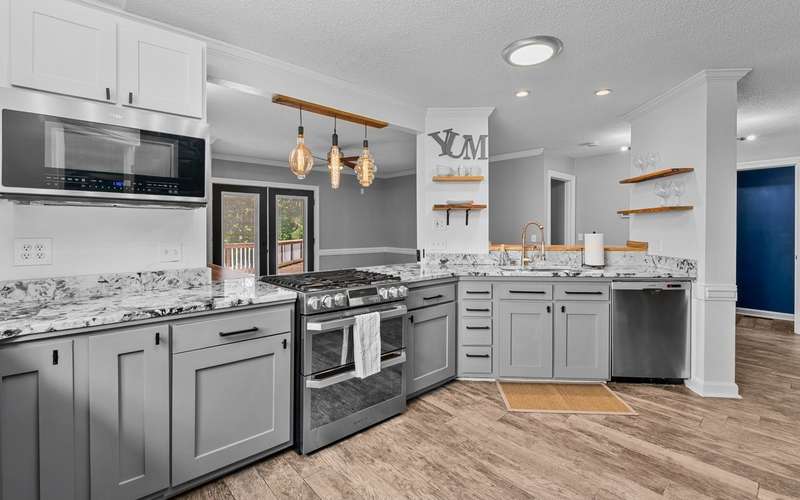 Welcome to this beautifully updated 4bed, 3.5 bath home with over 3,100 sq ft located on a quiet cul-de-sac with lake views. The main-level primary suite offers a spa-like retreat with a new freestanding tub, tile flooring, double vanity, spacious closet and direct access to the back deck and hot tub! The updated kitchen shines with granite countertops, a second pantry and newer appliances. Freshly painted throughout the home including the garage! This home also features vaulted ceilings in the living room with 2 bedrooms upstairs, a cozy gas log fireplace in the living area and a loft with a built-in desk and file cabinets?ideal for remote work or study. The fully finished basement includes a family room with wood-burning fireplace and an exercise/flex room. This is a rare opportunity to enjoy comfort, space and scenic views all in one beautifully maintained home. Basement & upstairs HVAC replaced in 2024, Main level was replaced in 2019! Home is also wired for a Generator!