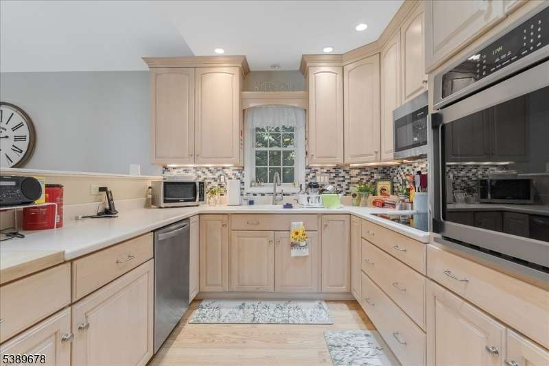 Welcome to this spacious, updated ranch featuring a full, separate in-law suite, offering flexible living arrangements and privacy. Situated on a large, level lot in a desirable Morris County neighborhood, this home offers comfort and convenience. The property is designed with the main house and in-law suite having separate entrances and fully equipped kitchens. In-law suite: This private space includes 2 bedrooms, 1 bathroom, EIK with new sliders to the backyard patio, a family room, and a master bedroom with a walk-in closet. Main living area: Enjoy a cozy atmosphere in the main house, where a wood-burning stove is the centerpiece of the living room. The main level also includes two additional bedrooms, 2 bathrooms with a primary on-suite and a large den. The main house features a full basement, providing abundant storage space and separate oil tanks, furnaces and meters. A professionally oversized, two-car detached garage offers generous space for vehicles, a workshop, or extra storage as well as plenty of additional parking. The home sits on a lovely 0.75-acre property, providing a serene setting for outdoor activities. This wonderful home is a must-see for anyone seeking a flexible layout in a prime Oak Ridge location.