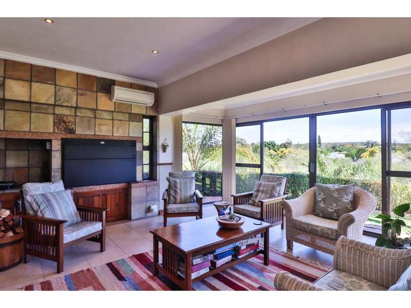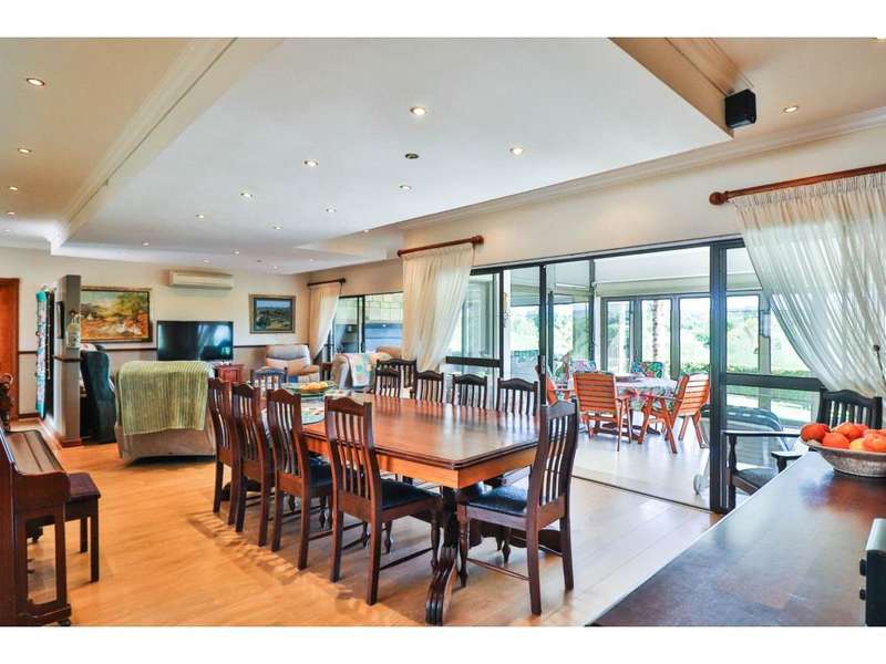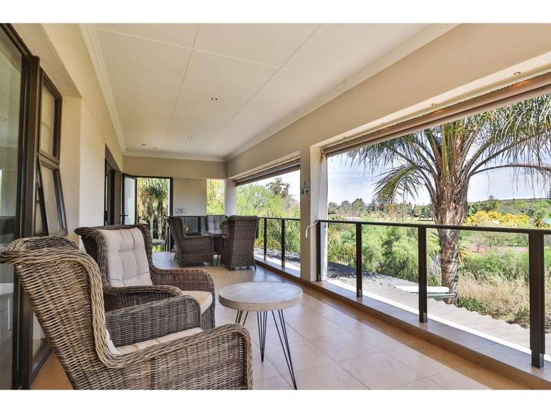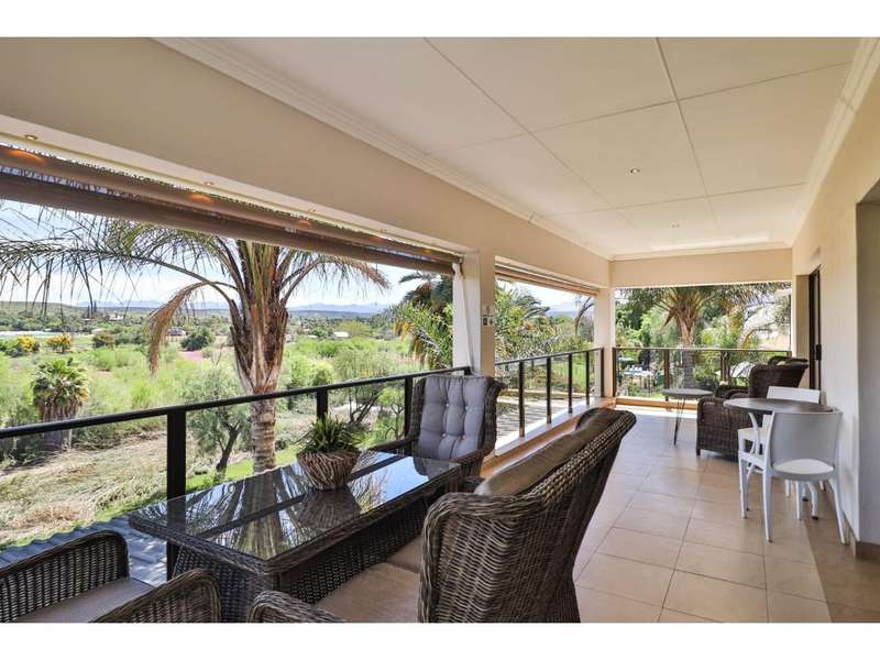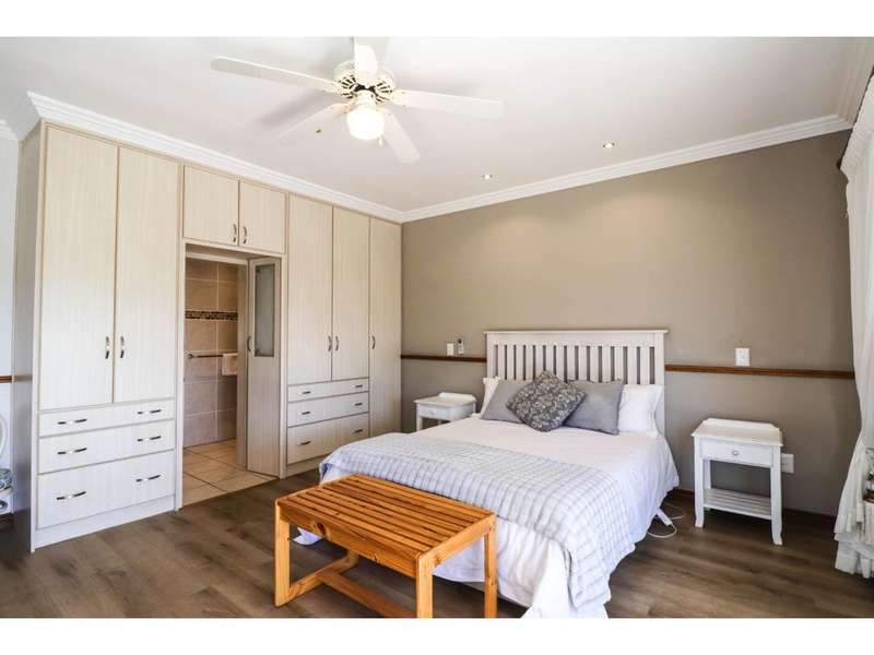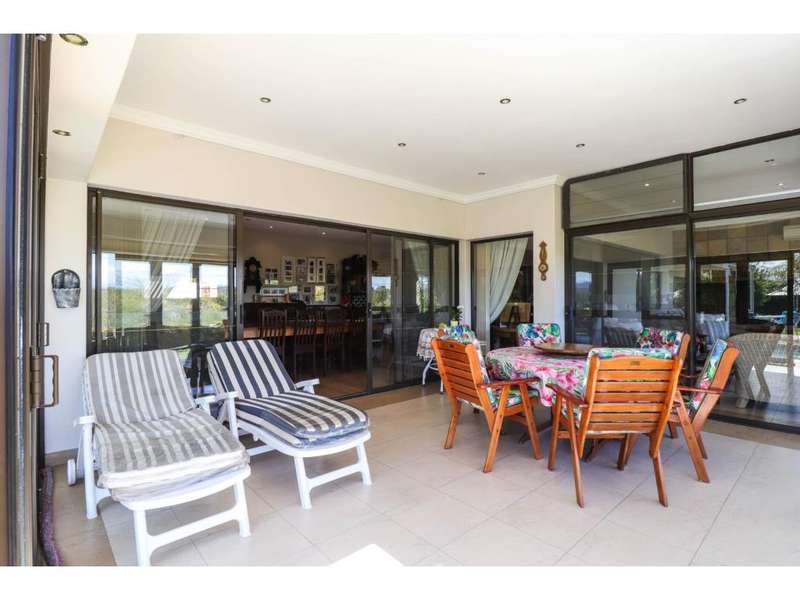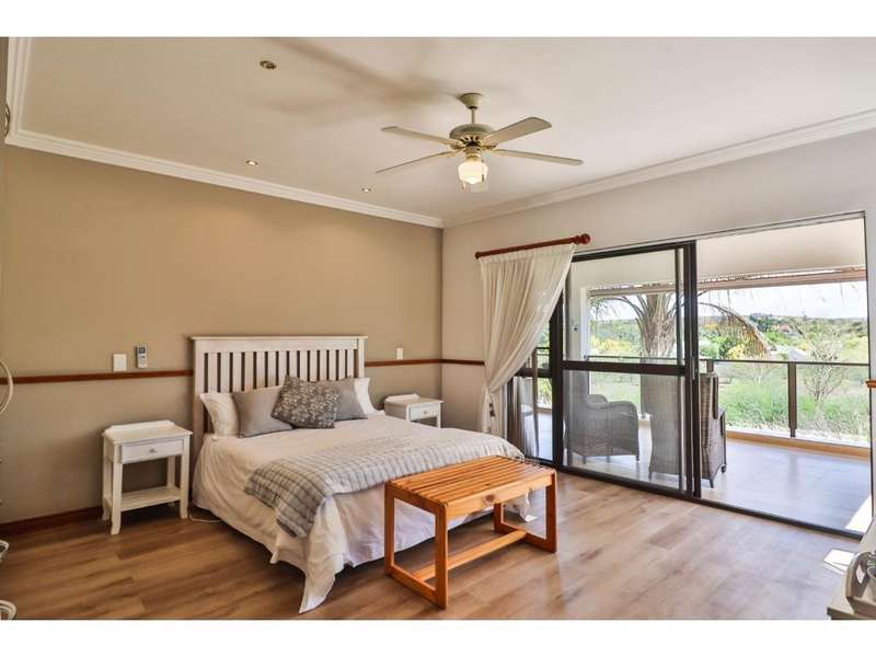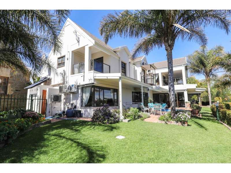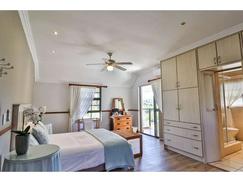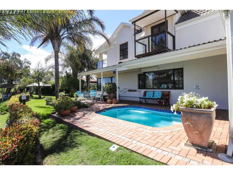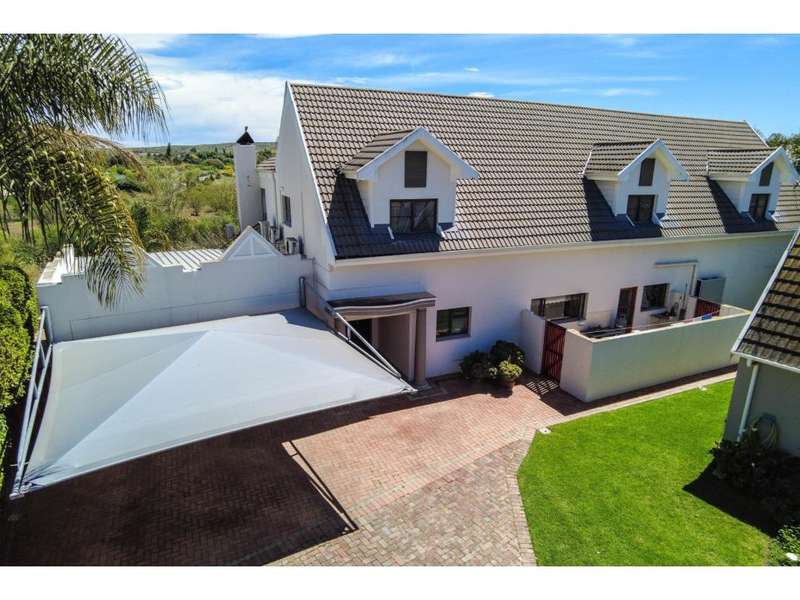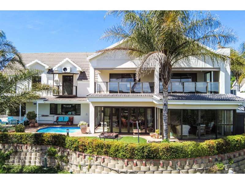 Exceptional Five-Bedroom Double-Storey Home in a Private Gated Complex Discover luxury living in this five-bedroom, double-storey home located in an exclusive gated complex in a highly sought-after area. This residence showcases stylish design and inviting open-concept living spaces, perfect for families seeking both elegance and functionality. The ground floor features a spacious living and dining area that seamlessly connects to a covered patio with a built-in braai, creating a perfect environment for family gatherings. The well-equipped kitchen boasts ample storage, a pantry, a gas stove, and a separate scullery, catering to the needs of any chef. On the ground floor, you will find the main bedroom with an en-suite bathroom, offering generous space and plenty of built-in cupboards. Additionally, there is a versatile sewing room that could serve as a sixth bedroom, along with a convenient guest bathroom. Ascending to the upper level, you will discover four en-suite bedrooms, all generously sized and equipped with built-in cupboards. Another living area on this floor opens to a large balcony, providing breathtaking views of the river and the surrounding area. This exceptional property offers an ideal indoor-outdoor flow, making it perfect for entertaining. The outdoor space features a pool with a view, creating a tranquil oasis for relaxation. Moreover, the house is equipped with air-conditioning and ceiling fans throughout for added comfort. Security is a priority, and the property includes good security measures. Additionally, the home features an automatic double garage and a carport, ensuring convenient parking. With its luxurious features, stunning views, and convenient location within a private gated complex, this home offers the epitome of elegant living for discerning buyers seeking the best in both comfort and style.