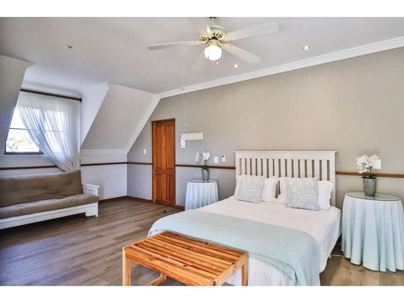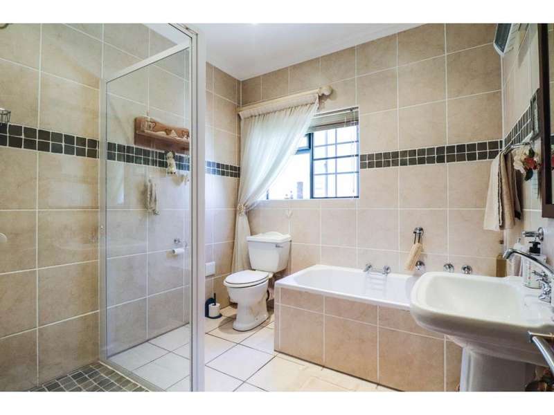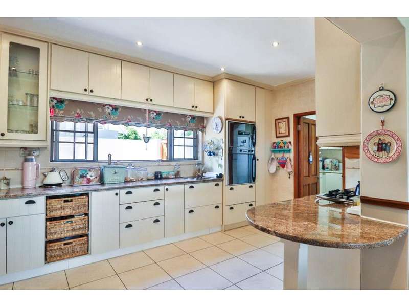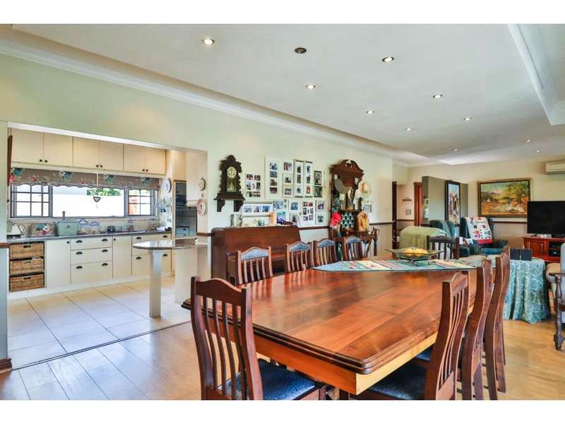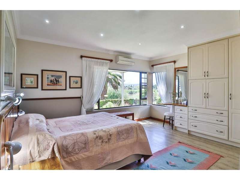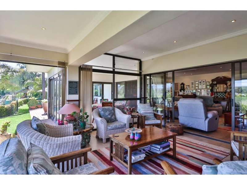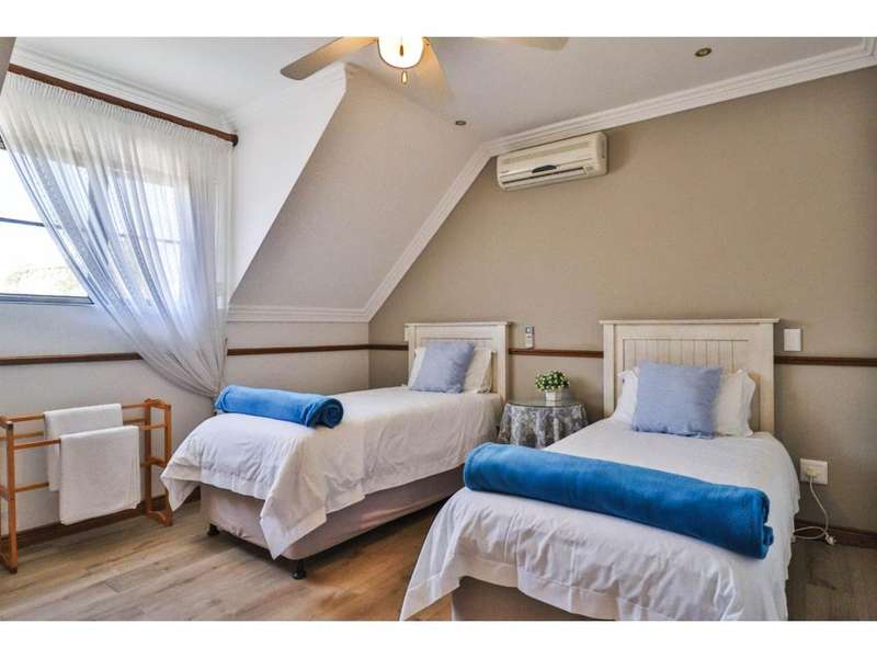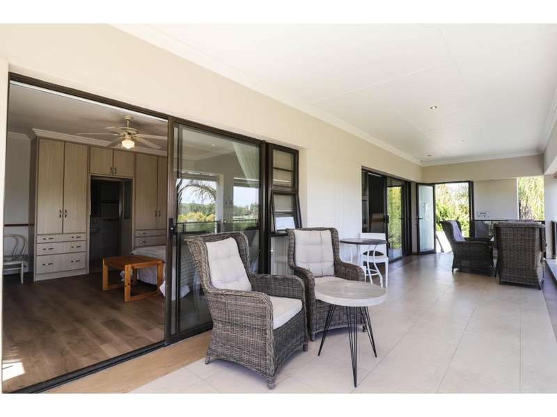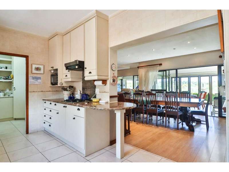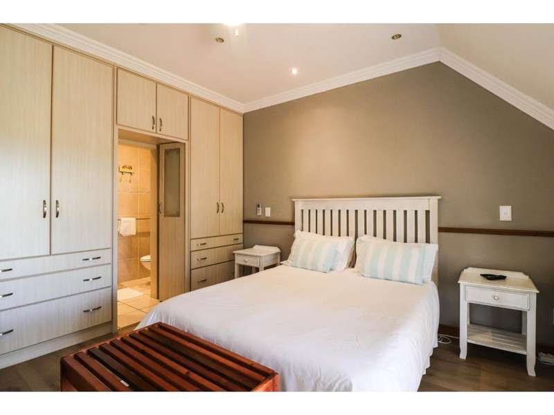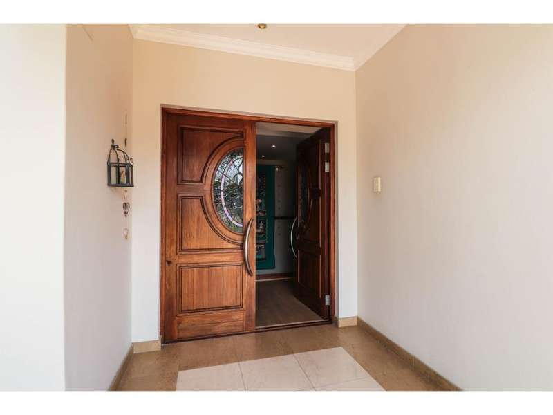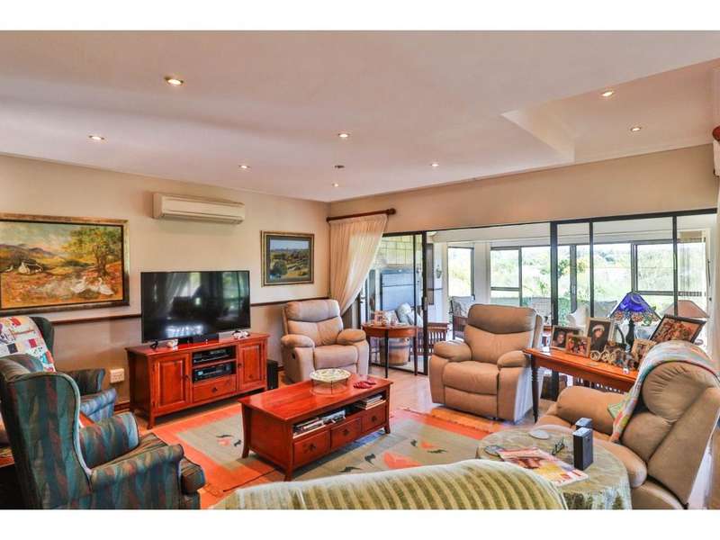 Exceptional Five-Bedroom Double-Storey Home in a Private Gated Complex Discover luxury living in this five-bedroom, double-storey home located in an exclusive gated complex in a highly sought-after area. This residence showcases stylish design and inviting open-concept living spaces, perfect for families seeking both elegance and functionality. The ground floor features a spacious living and dining area that seamlessly connects to a covered patio with a built-in braai, creating a perfect environment for family gatherings. The well-equipped kitchen boasts ample storage, a pantry, a gas stove, and a separate scullery, catering to the needs of any chef. On the ground floor, you will find the main bedroom with an en-suite bathroom, offering generous space and plenty of built-in cupboards. Additionally, there is a versatile sewing room that could serve as a sixth bedroom, along with a convenient guest bathroom. Ascending to the upper level, you will discover four en-suite bedrooms, all generously sized and equipped with built-in cupboards. Another living area on this floor opens to a large balcony, providing breathtaking views of the river and the surrounding area. This exceptional property offers an ideal indoor-outdoor flow, making it perfect for entertaining. The outdoor space features a pool with a view, creating a tranquil oasis for relaxation. Moreover, the house is equipped with air-conditioning and ceiling fans throughout for added comfort. Security is a priority, and the property includes good security measures. Additionally, the home features an automatic double garage and a carport, ensuring convenient parking. With its luxurious features, stunning views, and convenient location within a private gated complex, this home offers the epitome of elegant living for discerning buyers seeking the best in both comfort and style.