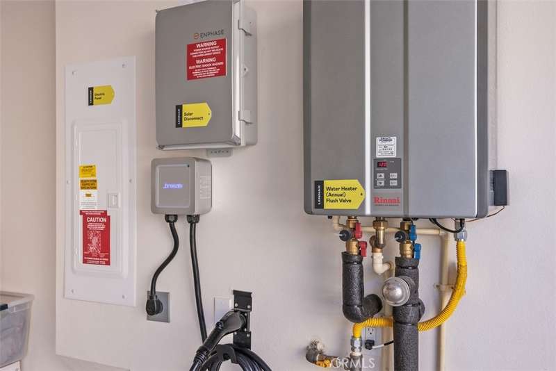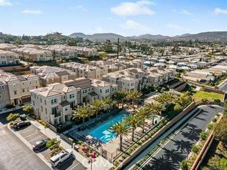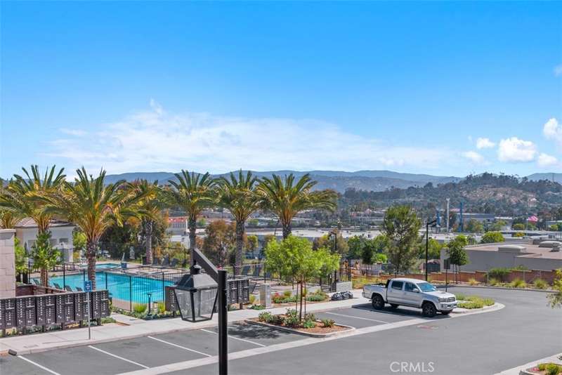 WOW, WOW & WOW!!! Check out this phenomenal, San Marcos like new condo (2 yrs new) at an INCREDIBLE PRICE!!! Elevated on a hill with views, this end unit is ideally situated near front gate with guest parking by front door, mailboxes & pool/spa just across drive. Bright & airy with tall ceilings throughout & plenty of indirect lighting overhead. Spacious great room on 2nd floor opens to inviting kitchen island/breakfast counter featuring stainless steel appliances (refrigerator included), ample cabinetry storage & counter space. Enjoy views from your private balcony just off your living area. Also on main living area is a half bath with pedestal sink. Enjoy doing laundry with included stacked washer & dryer down hall from both bedrooms. Primary bedroom with views & ceiling fan is ample sized to hold a king size bed. Attached bathroom features dual sinks, lots of counterspace, compartmentalized commode, oversized shower & walk in closet. 2nd bedroom also with views & attached bathroom. Oversized 2 car garage with tall ceilings & direct entry into home, features EV hookup for charging, tankless water heater & FULLY PAID OFF SOLAR (perfect for keeping those electric bills lower)! Move in ready & just waiting for its new owner!
