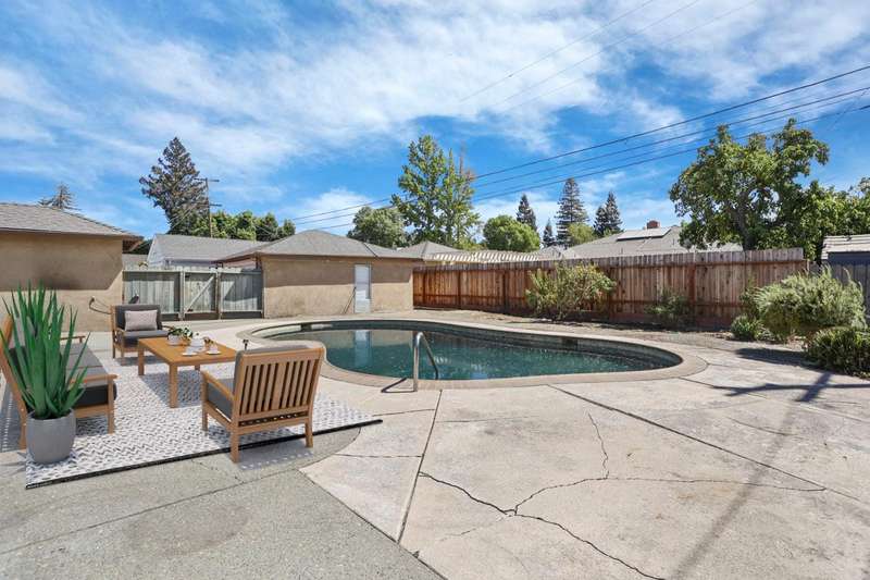 Beautifully updated single-story home in one of Stockton's most sought-after neighborhoodsLincoln Village! This 3 bedroom + private office, 2.5 bath residence combines timeless charm with modern upgrades. The formal living room features a cozy fireplace and a picture window overlooking the manicured front yard. At the heart of the home, the spacious kitchen showcases a large island, abundant cabinetry, new stainless steel appliances including a gas stove, and plenty of room for gatherings. The private primary suite offers generous closet space, a bath with makeup vanity and shower stall, plus direct access to the backyard with patio and pool. Two additional bedrooms and a hall bath with both shower and tub are nearby. On the opposite side of the home, you'll find the sunlit office, convenient laundry room, and half bath. Recent updates include fresh paint, new flooring, and more. Outside, enjoy the built-in pool, entertain on the expansive patio, and take advantage of the detached 2-car garage with long driveway and possible RV/boat parking. All this just a short walk to Lincoln Center's popular restaurants, cafes, and shops, within the desirable Lincoln School District. Don't miss this opportunity!