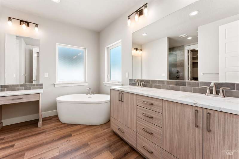 Outstanding new construction home with spacious bonus room in Pheasant Meadows! This beautifully designed residence offers a spacious open-concept layout with durable LVP flooring and a chef’s kitchen featuring stainless steel appliances, dual ovens, a large prep island, and full tile backsplash. The main-level primary suite is a luxurious retreat with a freestanding soaking tub, dual vanities, and a generous walk-in closet with direct laundry room access. An additional bedroom is also on the main level, while the upper level includes two more bedrooms and a central family room—perfect for guests or flexible living. Outdoor enthusiasts will appreciate the oversized garage, ideal for recreational vehicles, additional parking, or extra storage.