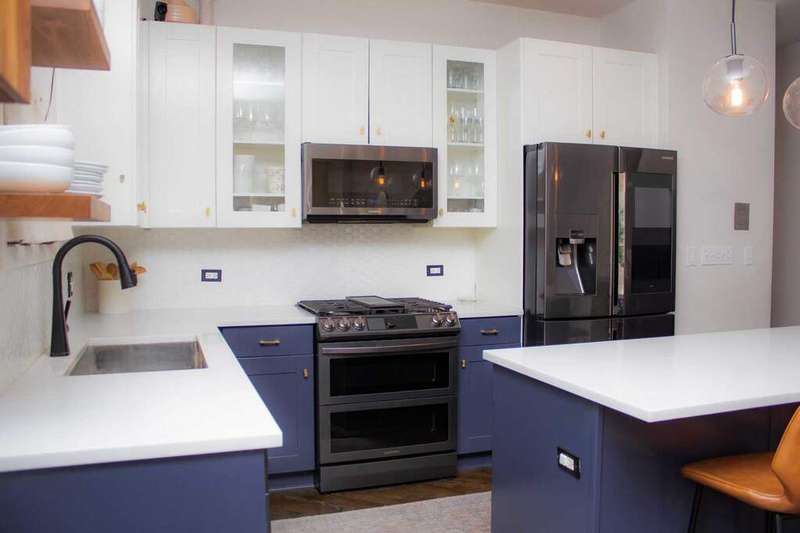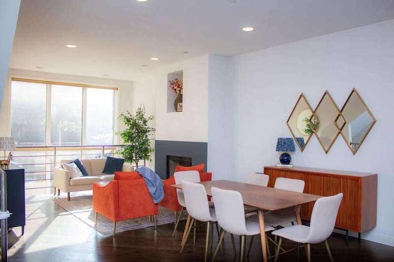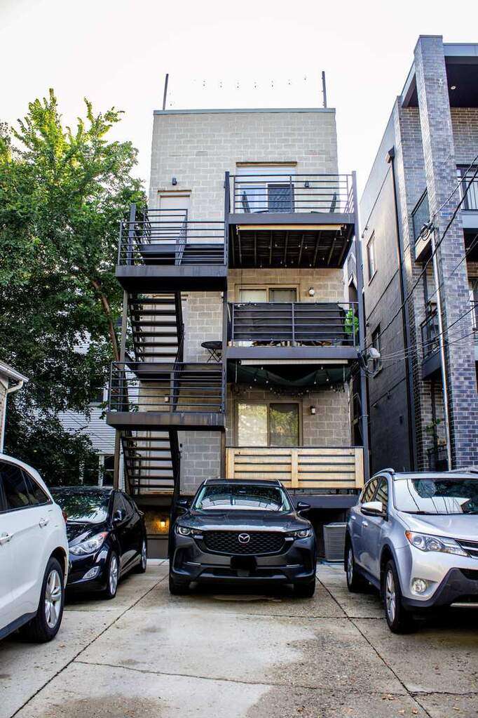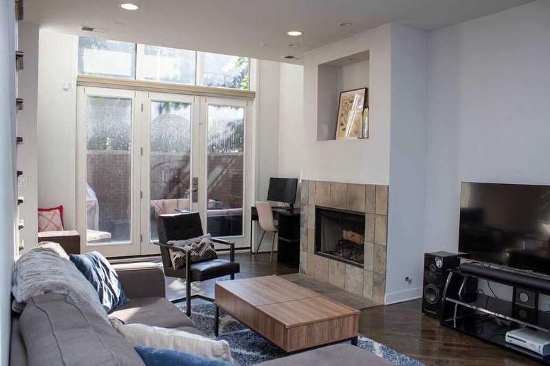 Beautifully upgraded, large duplex-down in Wicker Park/East Village, only two blocks to Division Street Blue Line stop and all Division has to offer. Modern finishes throughout. Dream kitchen with two-tone cabinets and all high-end black stainless steel appliances. Main floor living room/dining area has two-story windows which fill the home with natural light and they have electric blinds. Living room has a fireplace to cozy up on those chilly nights. Primary bedroom suite on main level includes a walk-in closet and en suite bath featuring separate soaking tub and enclosed shower, double vanity with spacious modern cabinets. Half bath on the main level. Large back deck too! On the lower level there is a big rec room complete with fireplace. First bedroom includes a wall bed - convenient for those out of town guests. Second bedroom is a rich oasis of deep greens with glass doors to capture the light from your front windows. Convenient full family bath on this level as well. This level also has a private patio which is fantastic for entertaining. Tandem parking that fits 2 cars included in price. Storage included. Furnished options available should you wish. 18 month lease is preferred.