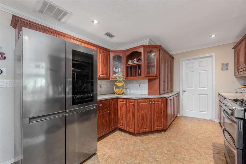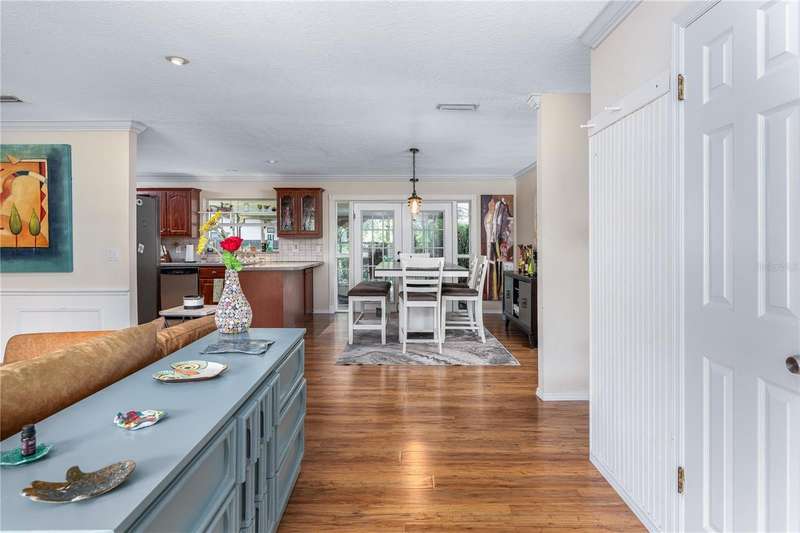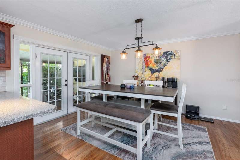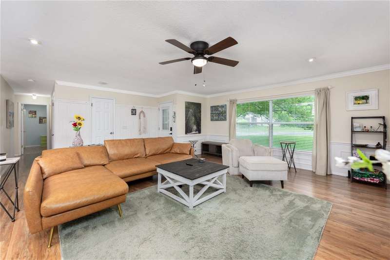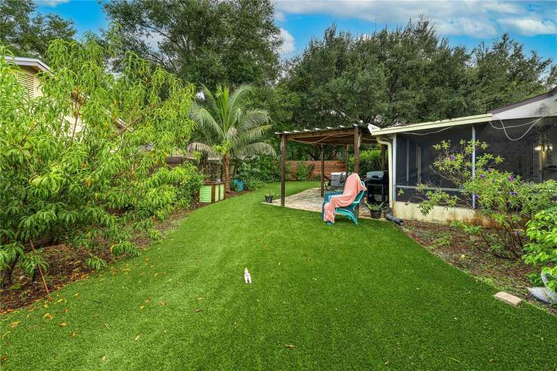 Under contract-accepting backup offers. This is a light and bright home with an open floor plan. The interior features an eat-in kitchen with a water filtration system, gas range ,crown molding, and stone counters. The flooring is a mix of ceramic tile and laminate, and the home has central heating and cooling. The backyard is a serene oasis, featuring low-maintenance artificial turf and a dedicated hot tub area—perfect for relaxing evenings and effortless outdoor entertaining.A large lanai provides a space for outdoor fun, and there is also an expanded "flex room" that can be used for crafts, projects, or storage. The utilities are connected to a public water and public sewer system. Recent updates include the kitchen, baths, and living space. The property's owners expanded the living area by enlarging the laundry room into the flex room. The home is conveniently located near the Casselberry Greenway Trail, shopping, and restaurants.