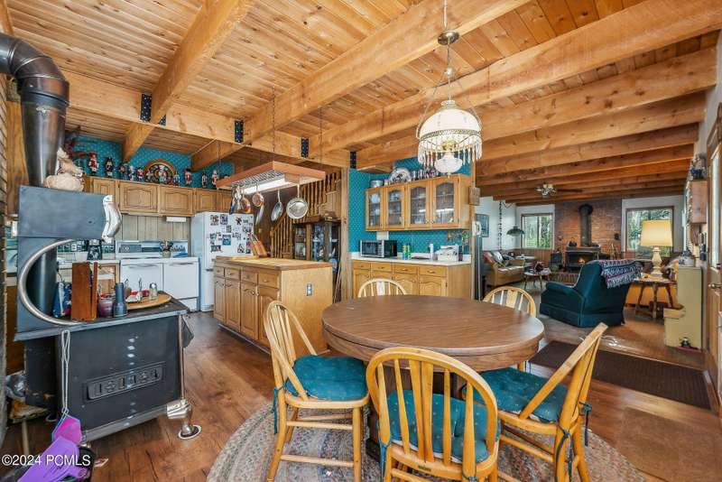 Nestled on a gently sloped .84-acre lot in the woods of Beaver Springs Ranch, this seasonally accessible cabin offers the ultimate weekend getaway in Oakley's Weber Canyon. The 2,077 square foot cabin boasts 3 bedrooms and 2 bathrooms, surrounded by massive aspens that create a serene, natural setting. As you approach, you'll notice a storage shed/toy garage and a separate detached garage with a workshop, perfect for storing outdoor gear or pursuing hobbies. The cabin's gorgeous front deck, partially covered, invites you to relax and soak in the tranquility of the Beaver Springs Ranch community. Step inside to discover an open-concept kitchen featuring a charming and functional wood-burning stove top. The living room is anchored by its own wood-burning stove, serving as a cozy centerpiece. A convenient main-level bedroom completes the first floor. Upstairs, you'll find two additional bedrooms, including the primary suite, which is bathed in natural light and offers stunning south-facing views. Located in the gated Beaver Springs Ranch community, this property provides access to the Weber River, promising endless adventures right at your doorstep. Square footage figures are provided as a courtesy estimate only. Buyer is advised to obtain an independent measurement.