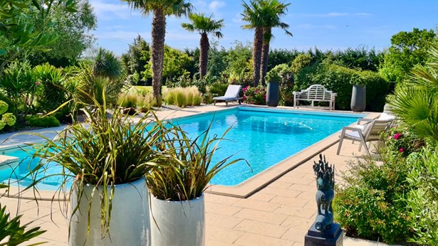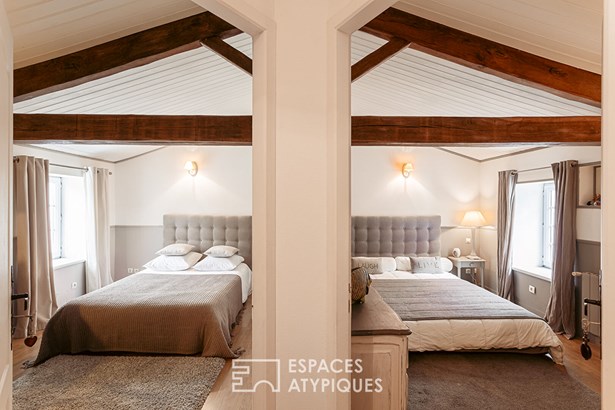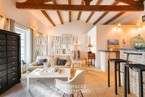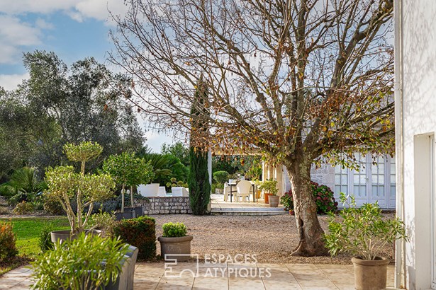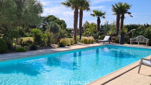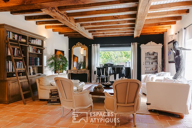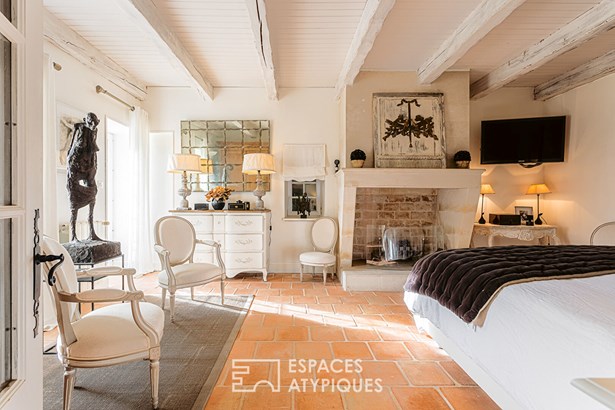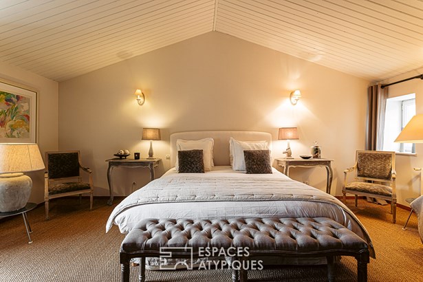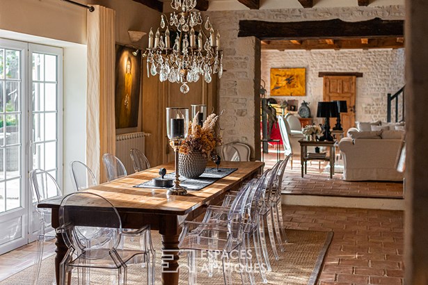 The latter is designed like a real studio with its summer kitchen and bar, lounge area, bedroom, and shower room/toilet. As an extension of the second building, the swimming pool nestles between terrace and greenery. Thanks to its renovation, the comfort and volume of its spaces, the charm of the old, this vast property will delight a large family, can serve as a haven for large gatherings in all seasons or will fulfill professional projects of reception and services.