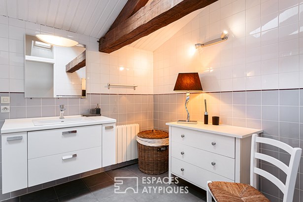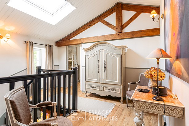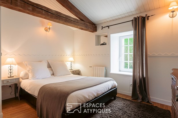 Upstairs, the landing leads to a large suite with its shower room. In the hallway, a second bedroom, an office, a dressing room, and a bathroom precede the final part of the house with three other bedrooms and a shower room. This complete sleeping area has all the necessary comfort to accommodate a large family or a guest room project.