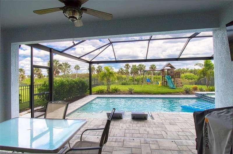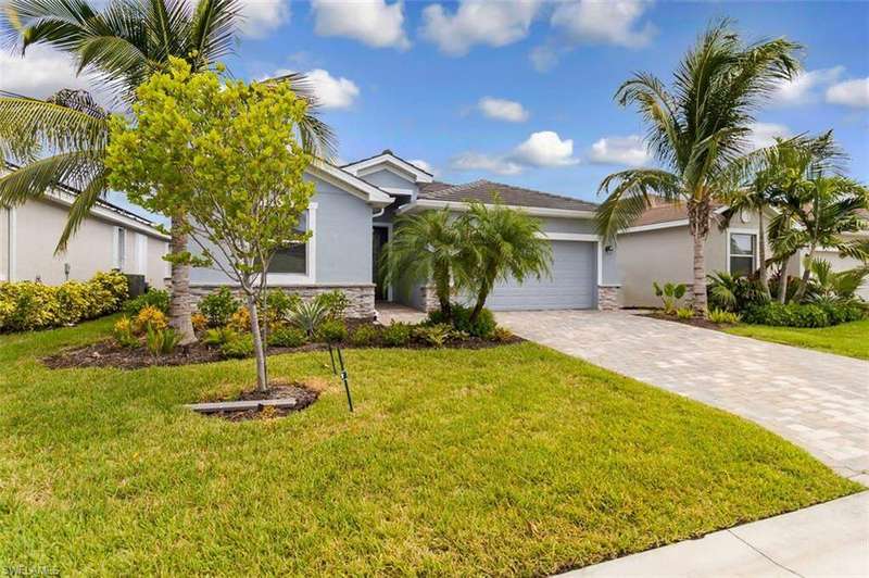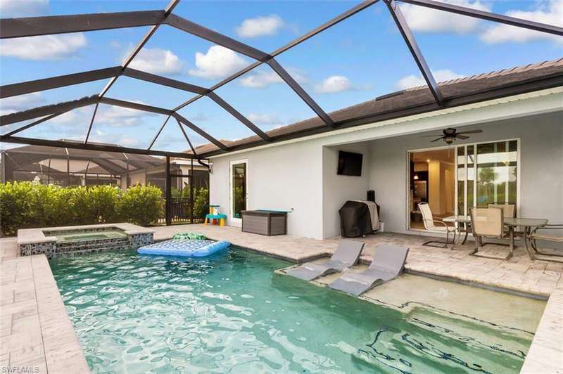 Looking for 2020's Rates? Welcome Home to Mirada, a solar-powered community near Fort Myers Beach. Rare chance to assume a $330K mortgage at just 2.675%. Get ready to fall in love with this gorgeous 4-bedroom, 3-bathroom pool home that's got everything you've been looking for-and more! Step into your own private paradise with a custom pool and spa, perfect for lazy weekends or entertaining friends. The master suite even has its own door to the pool and spa-midnight dip, anyone? Inside, you'll find an open, airy layout with sleek tile flooring and elegant granite countertops. The bedrooms feature warm, wood-look luxury vinyl flooring that adds a cozy, modern touch. The energy-efficient solar power system helps save you money on electric! The fenced-in backyard is great for pets or kids to play safely, and the attached 2-car garage gives you plenty of space for storage and security. And let's talk about the location-this gem backs up to a peaceful preserve, giving you beautiful nature views with no rear neighbors. Don't miss out on your chance to live in one of SW Florida's most sought-after neighborhoods!