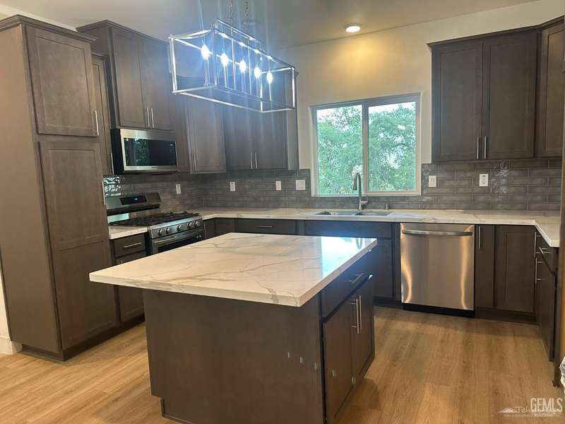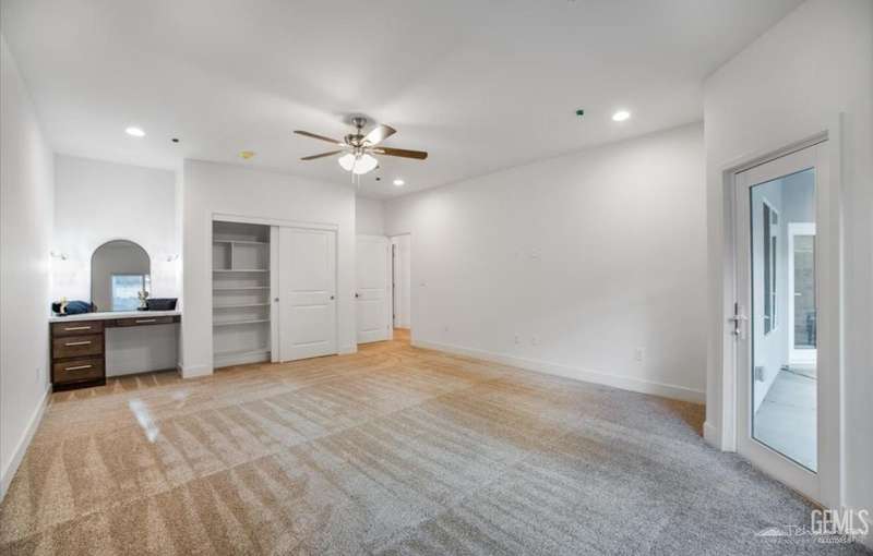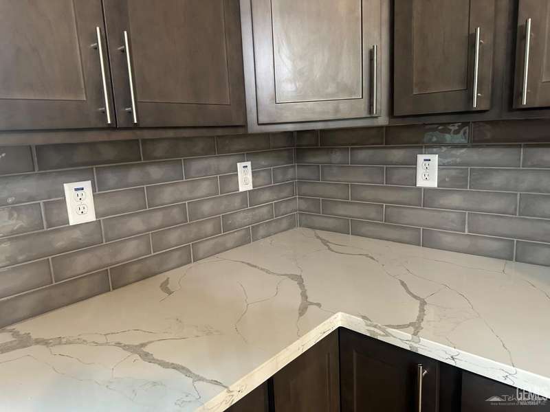 Nestled on a charming corner in Stallion Springs, this home is graced by a stunning oak tree and offers a thoughtfully designed split-wing layout with impressive upgrades. The kitchen boasts elegant white and grey quartz countertops complemented by a stylish grey backsplash, while the rich-toned cabinetry adds warmth to the space. Living room is open concept to Kitchen. Do you need a dedicated home office well there is one located off hallway by Master Suite and it has great views out the office window. A full bath situated between two bedrooms provides ample storage and features a beautifully tiled shower/bathtub area. At the end of the hall, a spacious closet ensures plenty of storage options. The master suite is exceptionally roomy, with a dedicated closet perfect for storing purses or extra shoes, along with a convenient vanity/desk space. Its adjoining bathroom is simply stunningfeaturing dark grey countertops, abundant cabinetry, double sinks, and an oversized walk-in closet