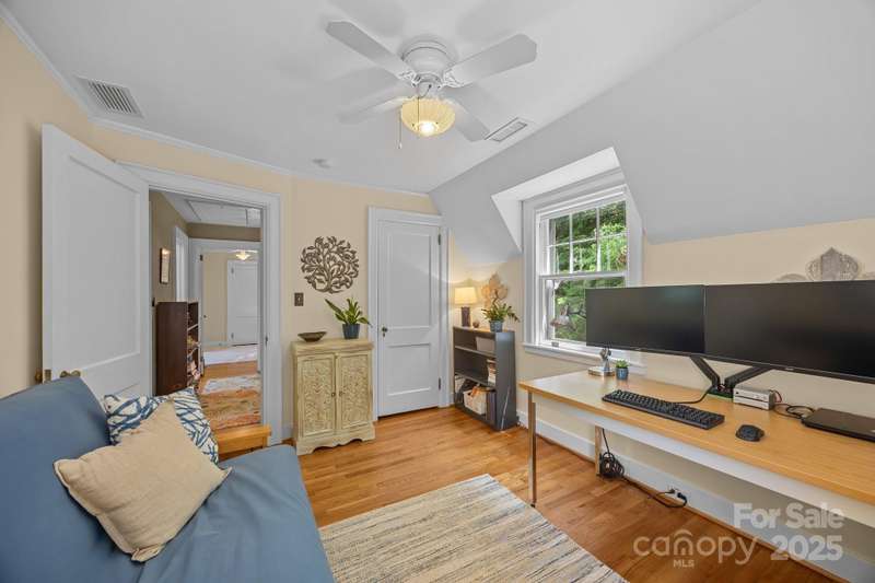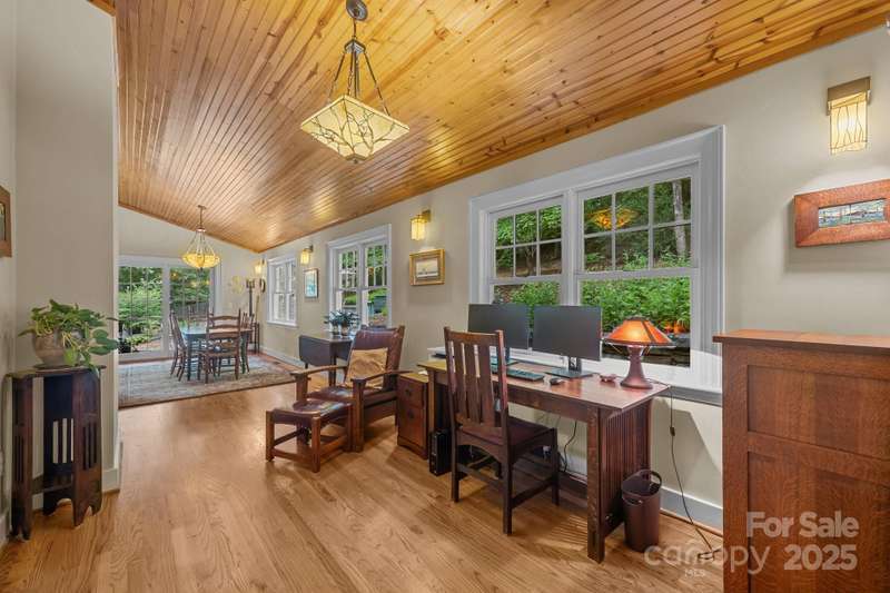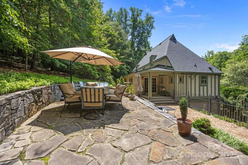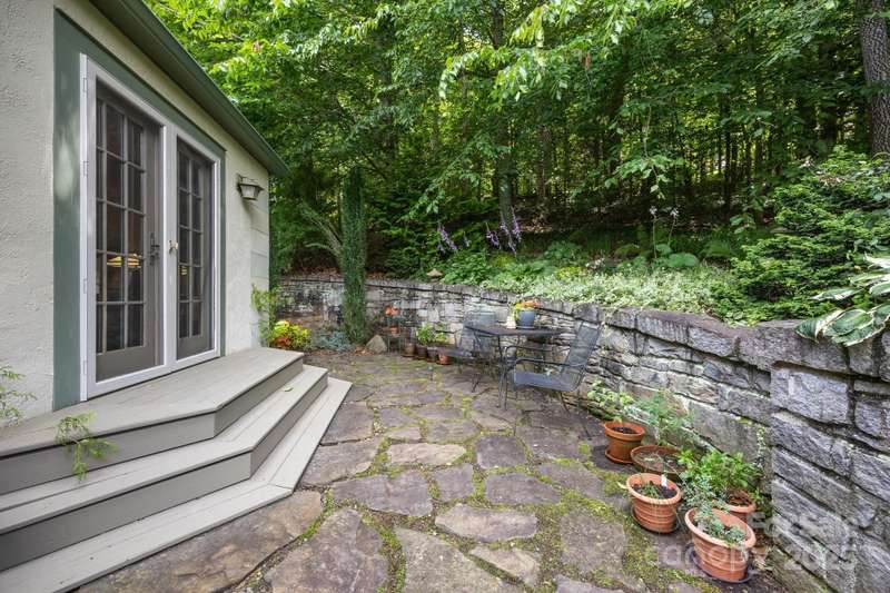 Adjoining parcels in Beaverdam! Welcome to "Glen Campbell" - a rare French Tudor Retreat in North Asheville. Nestled on 2.5 private acres, just minutes from downtown, Blue Ridge Parkway, shopping, medical and all other needed conveniences. The property for sale is comprised of 2 separate tax parcels with frontage on 2 public streets. Set above a professionally landscaped yard featuring natural boulders, rock walls, and serene stone patios, including a cozy firepit. The property's unique setting overlooks a large undeveloped tract that includes an historic 1800's log cabin under a long-term family trust agreement providing a tranquil setting and undisturbed view. In 2011, the home was tastefully updated with a stunning new kitchen and dining area, a modernized primary suite, office area and a convenient new half bath- all while preserving the home's original architecture and charm. This is a one-of-a-kind North Asheville gem with timeless appeal!