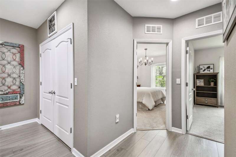 Under contract-accepting backup offers. Welcome to a beautifully upgraded townhome tucked inside the highly desirable GATED village of Seven Oaks! This IMMACULATE 3 bedroom, 2.5 bathroom townhome with a 1-car garage features elevated craftsmanship, a SPACIOUS layout, and PREMIUM CONSERVATION VIEWS from every room. The open concept living area is perfect for entertaining, while the screened lanai offers a peaceful space to unwind. Thoughtfully designed and meticulously maintained, this residence combines comfort, functionality, and style in one of WESLEY CHAPEL’S MOST SOUGHT-AFTER NEIGHBORHOODS AND LOCATIONS. Beyond CLEAN and incredibly well maintained, this MOVE-IN READY home showcases BLOCK ON BLOCK CONSTRUCTION and NEW HIGH-END LAMINATE FLOORING UPSTAIRS completed with the finest craftsmanship. The inviting kitchen is a dream for any cook or entertainer, featuring 42" wood cabinetry, subway tile backsplash, thick granite countertops with ample prep space, counter height seating, and NEWER STAINLESS STEEL APPLIANCES, including a sleek side-by-side refrigerator and upgraded range. The spacious master suite is a true retreat, offering double vanities, a large walk-in shower, and walk-in closet complete with built-ins for maximum organization. All closets throughout the home have built-in systems for extra storage. The screened lanai provides a quaint outdoor space to unwind while enjoying STUNNING PRIVATE CONSERVATION VIEWS of the surrounding nature. From top to bottom, this home feels fresh, open, and like-new! This ENERGY-EFFICIENT home helps keep utility bills low and is located in a MAINTENANCE-FREE COMMUNITY where lawn care, exterior paint, and the roof are all included for EASY LIVING! Residents enjoy community amenities including multiple resort style pools, water slide, splash pad, fitness center, tennis and basketball courts, and ENDLESS WALKING TRAILS through the community and NATURE, perfect for active living and outdoor enjoyment. Located just minutes from I-75 and I-275, this home offers quick access to everything Wesley Chapel has to offer. Enjoy premier shopping, dining, and entertainment at Wiregrass Mall, The Grove, KRATE, Tampa Premium Outlets, and Cooper’s Hawk Winery & Restaurant. Nearby, you’ll also find TOP-RATED SCHOOLS (including Seven Oaks Elementary just a short walk away!), WORLD-CLASS HEALTHCARE facilities, and endless recreational spots, making this a perfect place to call home. Welcome to the ideal blend of peaceful nature, luxury amenities, top schools, and convenience all wrapped into a carefree lifestyle!