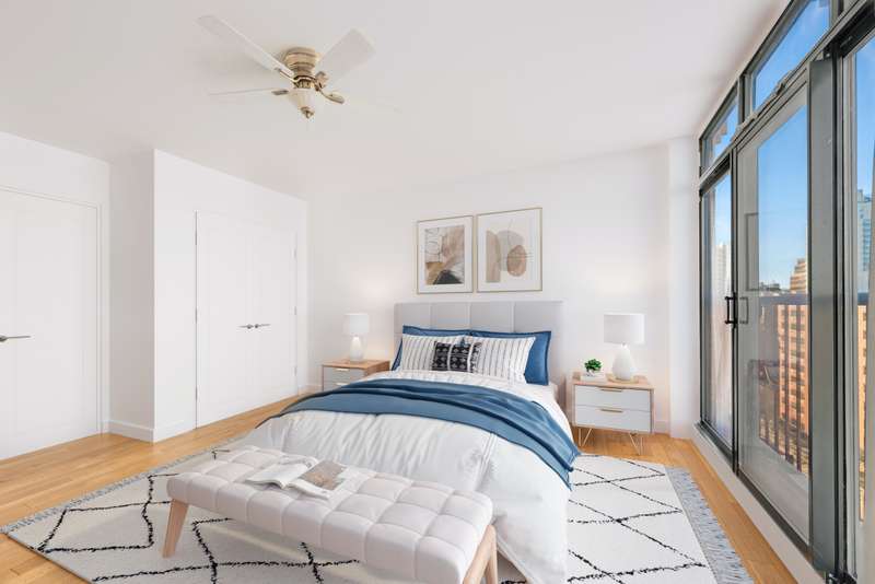 Rare T-shaped luxury 2 Bedroom / 2 Bathroom with floor to ceiling windows and amazing open skyline views. Split bedroom layout affords greater privacy among shared occupants. Brilliant all day light from Western exposures overlooking Morningside Park and the Cathedral of St. John the Divine. Master Bedroom connects to en-suite Carrera Marble Bath with Jacuzzi tub. This special home also features hardwood floors, granite kitchen countertops paired with maple cabinets, a stainless steel appliance package, and Bosch washer and dryer. Full service building with 24 Hour Attended Lobby, Panoramic Roof Terrace affording amazing Central Park and City skyline views, Complimentary Fitness Center, landscaped zen courtyard and Community Room. Great location, steps to Central Park, Subways and bus lines, as well as multiple retail options, Columbia University, Morningside Park, and the Cathedral of Saint John the Divine, the renowned Apollo Theatre and multiplex cinemas. Appointments must be coordinated in advance with current resident . co-exclusive with La Seven Inc.