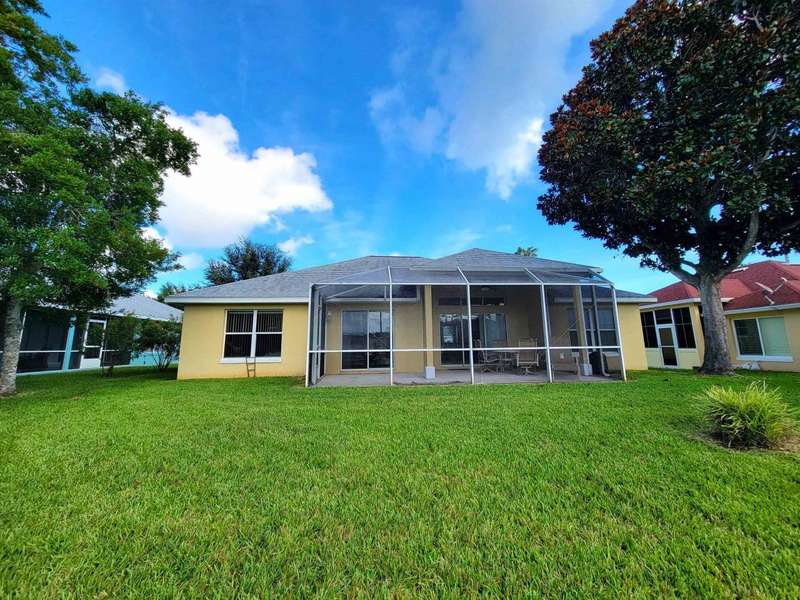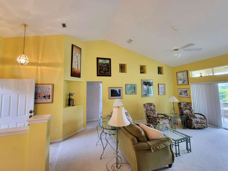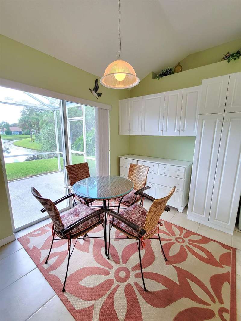 This is your chance to live on the Island in the quiet, cozy neighborhood of The Commodores Club! Enjoy the Florida lifestyle out on the screened in patio while over looking the pond and fountain. This home is ready to make yours! Enjoy the days where you can open the front door to the breezes with the glass storm door and let the breeze pass through both sliding doors that lead to the screened in lanai. With a formal dining, and breakfast nook, there is plenty of space to invite friends over to entertain whether that be indoors or out. The vaulted ceilings give this home an open feel which you will be sure to appreciate. The owners suite has double sinks, corner walk in shower, water closet and a generous closet. All furnishings from decor to furniture is available to purchase. The home comes with all appliances including washer and dryer which are located in their own dedicated laundry room. Make your appointment to see this home today!