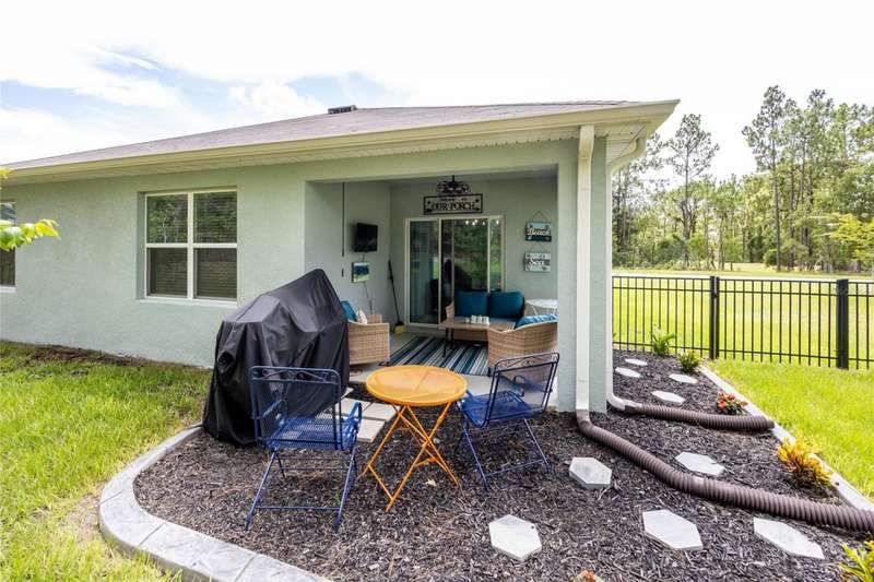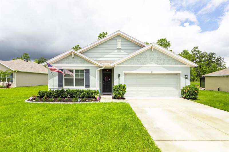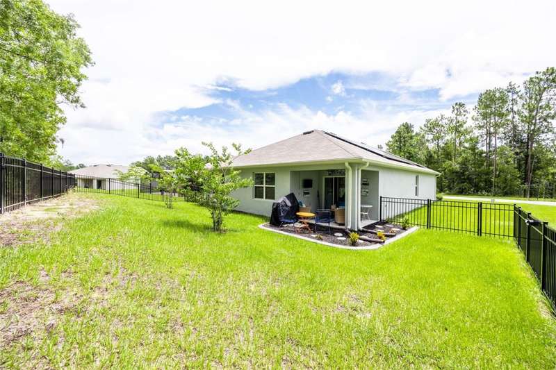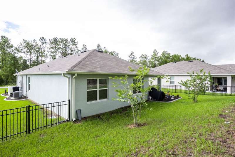 ***PRICE IMPROVEMENT *** Welcome to this beautifully maintained, nearly new home in the sought-after gated community of Lake Diamond.Built in 2023 with durable concrete block construction, this one-story 4-bedroom, 2-bathroom residence offers 1,827 square feet of thoughtfully designed living space.Step inside to an open-concept layout featuring 18x18 ceramic tile flooring throughout the main living areas. The kitchen is a true centerpiece, boasting granite countertops, a center island, and a seamless flow into the spacious living and dining rooms-ideal for everyday living and entertaining.The split-bedroom floor plan offers privacy, with the primary suite tucked at the back of the home. Enjoy a serene view of the golf course, along with a large walk-in closet, dual-sink raised vanity, and a walk-in shower.Perfectly positioned adjacent to the 18-hole Lake Diamond Golf Club, this home backs up to the scenic 8th green-offering tranquil views from both the primary suite and the covered lanai. The fully fenced backyard adds extra peace of mind and usability.Additional features include solar panels for energy efficiency, a 50-amp generator/RV hookup, water softener, leaf filter gutter system, irrigation system, and an indoor laundry room.Located in a well-maintained, gated community with strong curb appeal and easy access to local conveniences, this home is move-in ready and waiting for you!