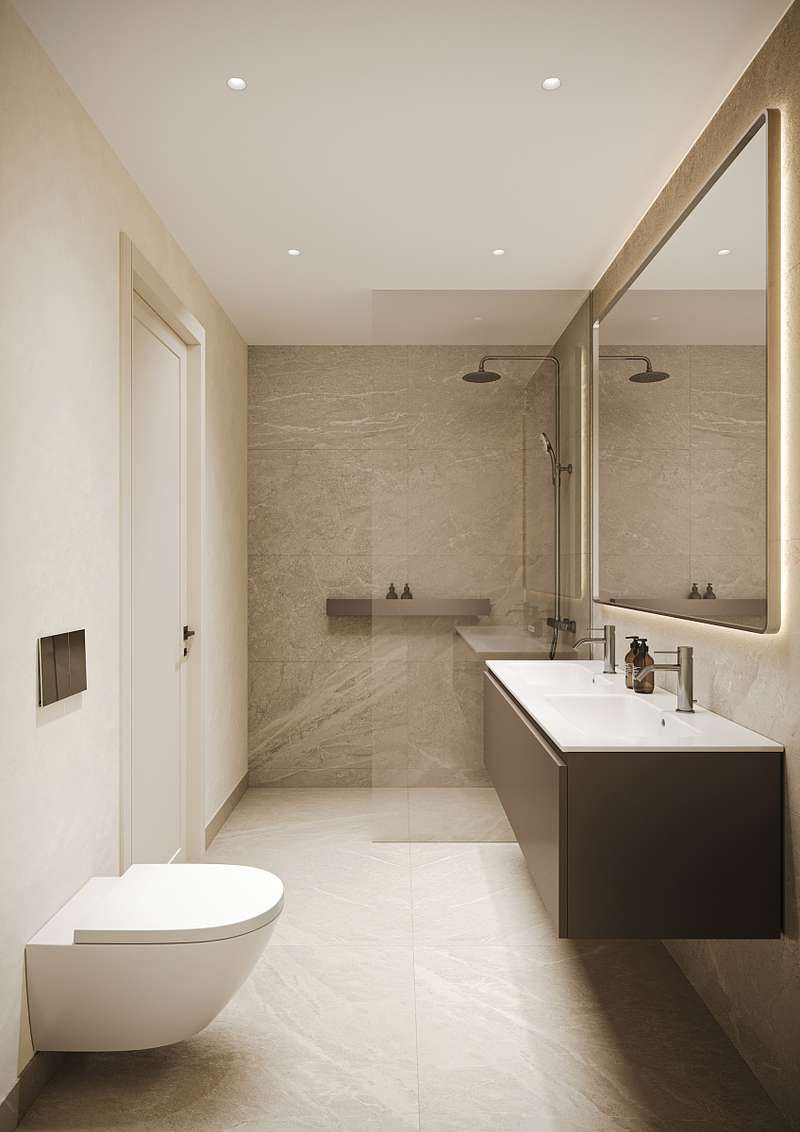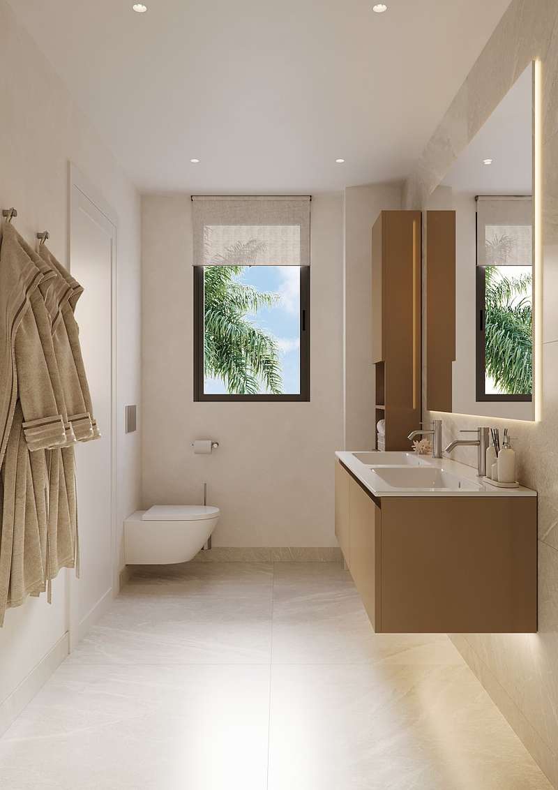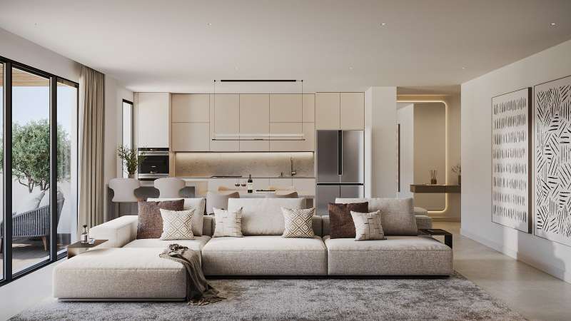 Inside, the apartments are bright and spacious, with open-plan living areas that flow seamlessly to large terraces. Floor-to-ceiling windows allow natural light to fill every corner, while premium finishes and customizable options let each home reflect a personal style. Underfloor heating, aerothermal systems, and smart home technology ensure year-round comfort and energy efficiency.