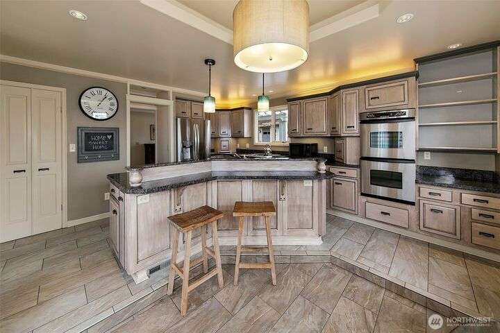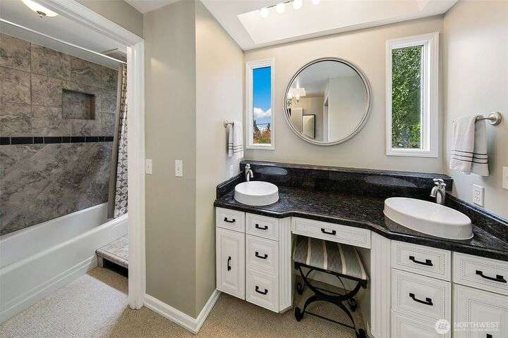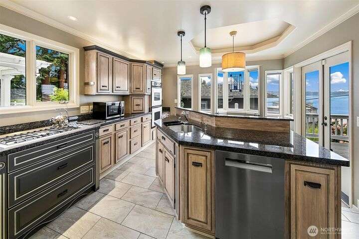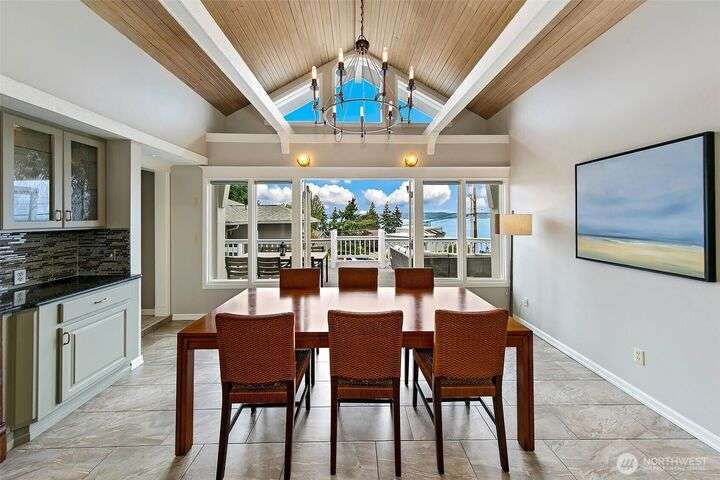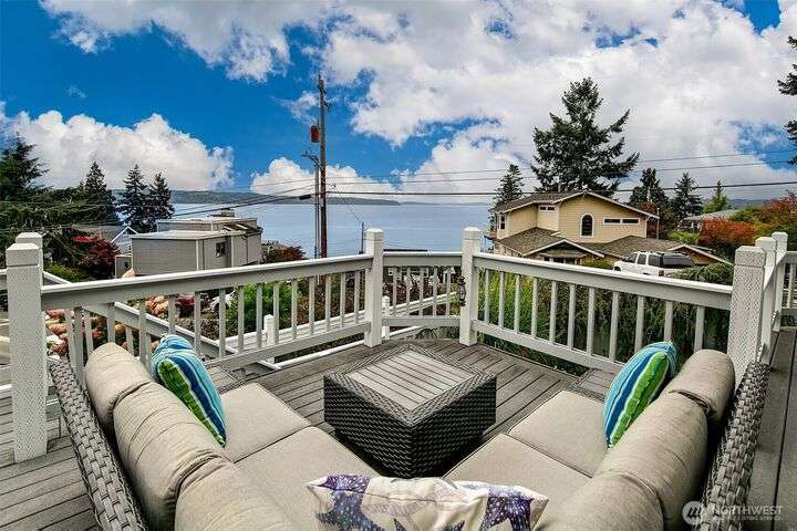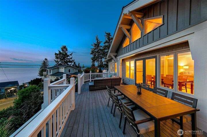 Original Three Tree Point Club House. Breathtaking Puget Sound & Olympic Mountain Views from this well appointed 'Cape Cod' Stylish Home. Elegance and warmth throughout. Entertainer's delight with open spaces and natural light from every room. Primary suite with full bath & French doors that lead to your own private patio. Den with loft & play area. Rec room down on lower level wired for surround systems. Laundry facility with all the amenities plus 1/2 Bath & folding table. Shop & tool room for the person that likes to tinker. Outside is privately fenced with large detached 3 car garage. Potting shed along with half bath off garage. Generac Power System for the occasional power outage. Close to restaurants, airport, & major freeways.