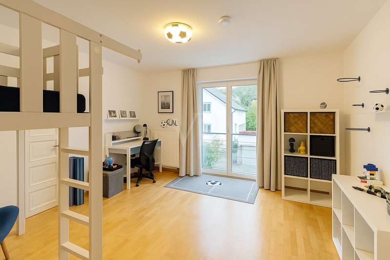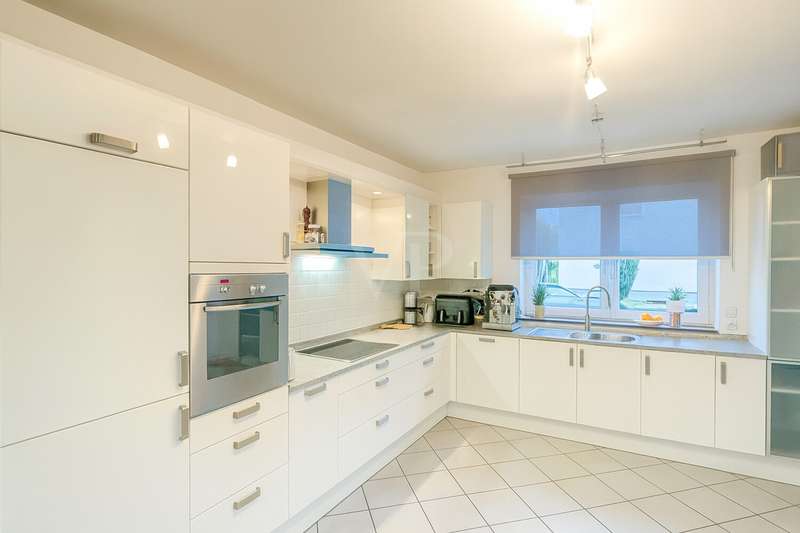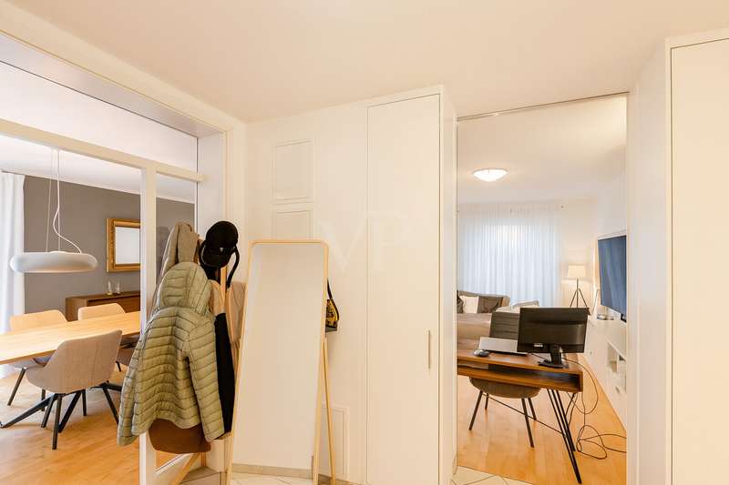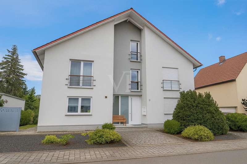 This spacious, detached apartment building from 2001 stands on a plot of around 700 m² and impresses with its very high-quality, well-kept overall condition, modern furnishings and, above all, its high flexibility of use. This makes the property suitable for large families or several generations under one roof, for buyers who - like the current owners - would like to live in part of the property themselves and rent out the remaining apartments for financing purposes, as well as, of course, exclusively as a good investment. The house is currently used as a three-party house. The owners have connected the large first floor apartment with an apartment on the second floor via a beautiful spiral staircase, creating an extremely spacious maisonette. This unit will become vacant with the sale and thus offers ideal conditions for owner-occupiers. The first floor apartment has a large, sunny terrace with a view of the garden, making it particularly attractive for families, couples or anyone who likes to sit outside. In addition, there is an apartment on the 1st floor on the left that has been well rented since 2020 with a basic rent of €800 and another apartment on the top floor that has been rented since 2021 with a basic rent of €1,160. Both rented apartments each have a beautiful, large balcony, which significantly increases the residential value and makes the two units very attractive both for owner-occupation and for renting out. However, the building was originally designed as a four-family house. The current layout was created by merging two apartments to form the current maisonette. If you want to turn the house back into four separate units, you can easily remove the connection on the upper floor and create a fully-fledged four-party house again at any time. It is precisely this versatility - living in it yourself, renting it out in part or using it for multiple generations - that makes the property particularly interesting. The total living space of around 360 m² is divided into bright, well-designed and high-quality apartments. Large windows provide plenty of natural light, the floor plans are functional and homely; balconies, terraces and practical storage areas add to the comfort. The renovation and modernization work carried out in 2016 and the ongoing maintenance are reflected in the very well-kept stairwell, the modern bathrooms, the attractive floor coverings and the fitted kitchens. The owner-occupied maisonette on the first floor offers an extremely spacious living and dining area with direct access to the garden and conveys a very pleasant feeling of living. The large garden offers plenty of space for families, children, hobby gardeners or simply for socializing outdoors and - depending on how the house is used - can also be shared by several parties. This offer is rounded off by the large basement rooms, some of which can also be used as a home or office, a spacious garage and an additional outdoor parking space. In the basement, there are spacious storage and utility areas as well as a heated office and hobby rooms that can be used as living space. These rooms are ideal for a home office, a small practice or consulting room, fitness, music or as a retreat for larger families - and thus significantly increase the usability of the entire house.