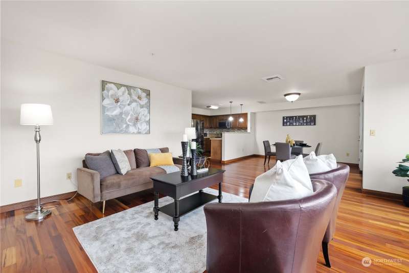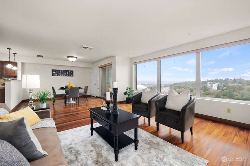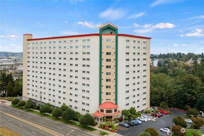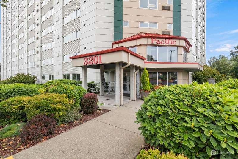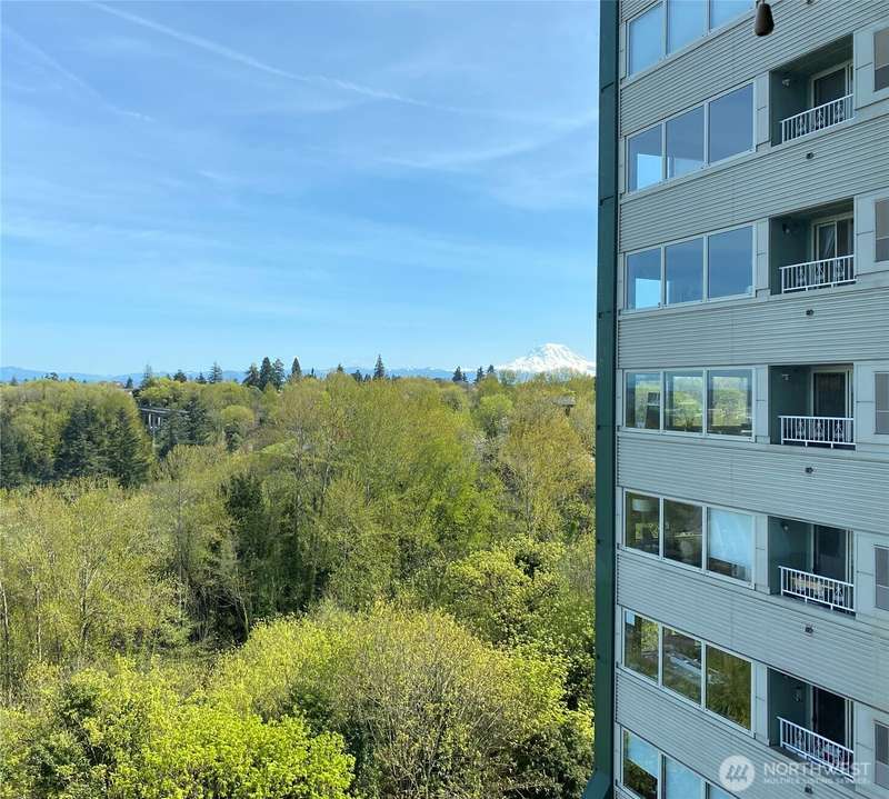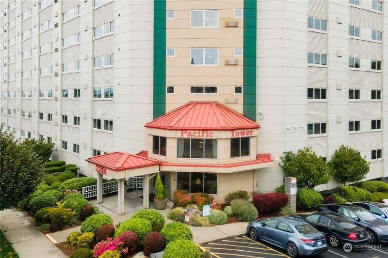 ** $30,000 PRICE IMPROVEMENT ** Revel in the breathtaking views that span Mt. Rainier, the Sound, & the vibrant cityscape of Tacoma from this 7th story condo. Welcome to Pacific Tower Condo, the secured building is centrally located w/easy access to I-5 & local amenities. Step into a beautifully appointed living space, flooded w/natural light from the expansive windows, allowing the stunning scenery to be part of your everyday. The condo includes two generous bedrooms & 1.75 stylishly designed baths. The primary suite is a true retreat, featuring dual closets that provide ample storage space. Enjoy the fresh air & sweeping views from your private balcony, a delightful spot for morning coffee & evening sunsets. Gym & Community Room