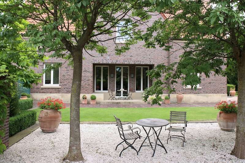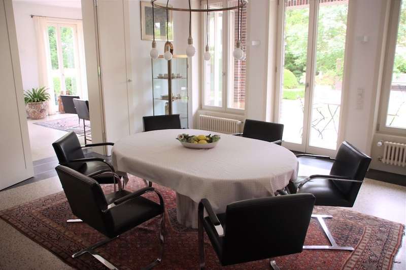In an attractive central location in Damme, a very special living experience awaits you on a spacious plot of approx. 1,400 m². With a living space of around 255 m², spread over the ground floor, first floor and attic, this property combines modern living comfort with a stylish ambience. The heart of the property is the spacious living area, which impresses with its openness and brightness. The modern, high-quality bulthaup fitted kitchen blends harmoniously into the stylish ambience and also meets sophisticated culinary requirements. From here, you can access the spacious terrace with a view of the greenery. In addition, the separate, light-flooded dining area opens onto a charming loggia, which, together with a second terrace, also invites you to take a relaxing break. The upper floor boasts a spacious master bedroom, a study and an elegant bathroom with bathtub and shower. Thanks to an integrated elevator, this floor is easily accessible and barrier-free - ideal for comfortable living at any stage of life. There is also a separate bathroom with shower and two further rooms on the top floor, which can be used flexibly as children's rooms, guest rooms or offices. Generous window areas and high doors give all rooms an exceptionally bright and open ambience. The offer is rounded off by modern, extremely high-quality fixtures and fittings that leave nothing to be desired. Let yourself be inspired by this special property! We will be happy to provide you with further information or arrange a personal viewing.