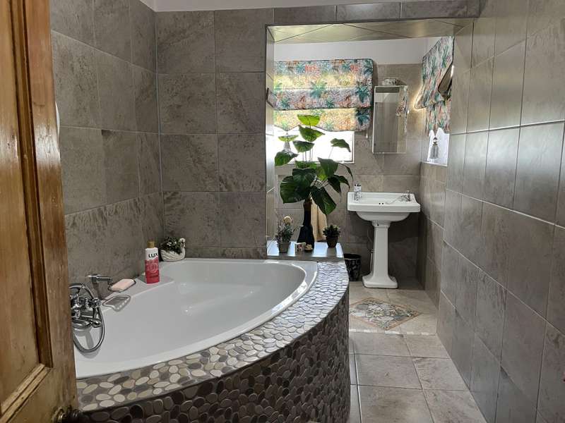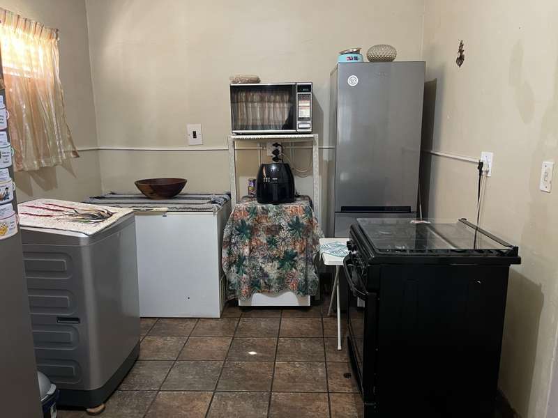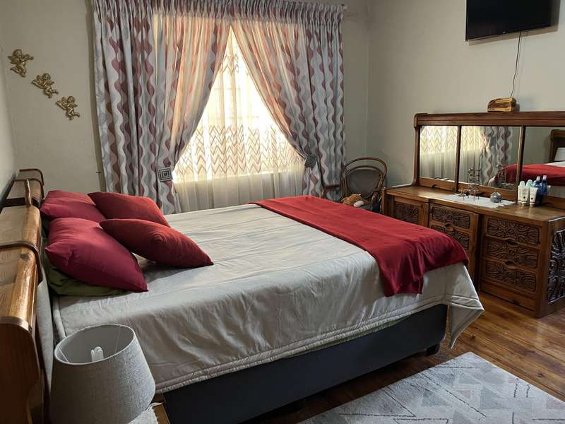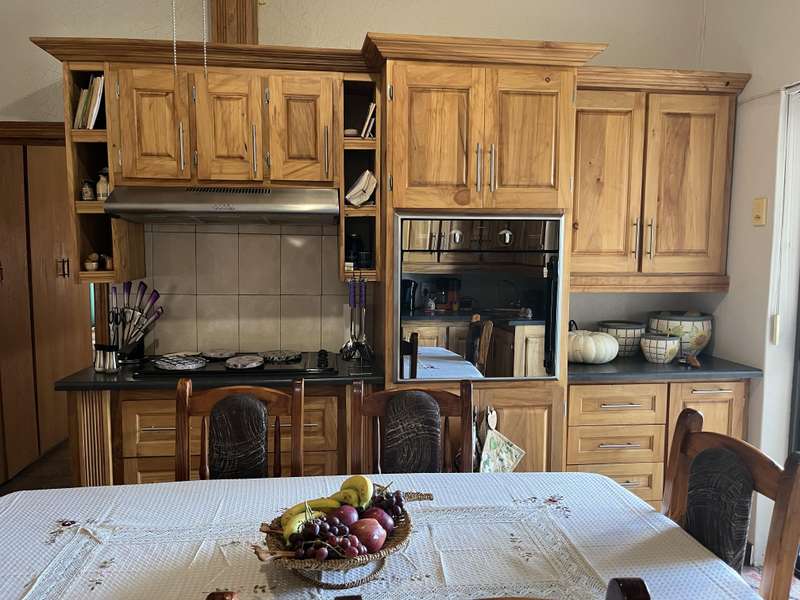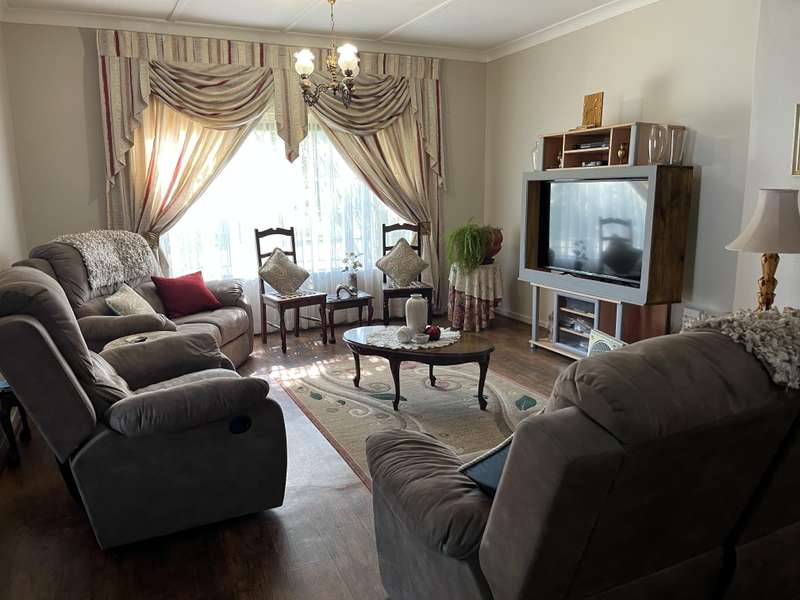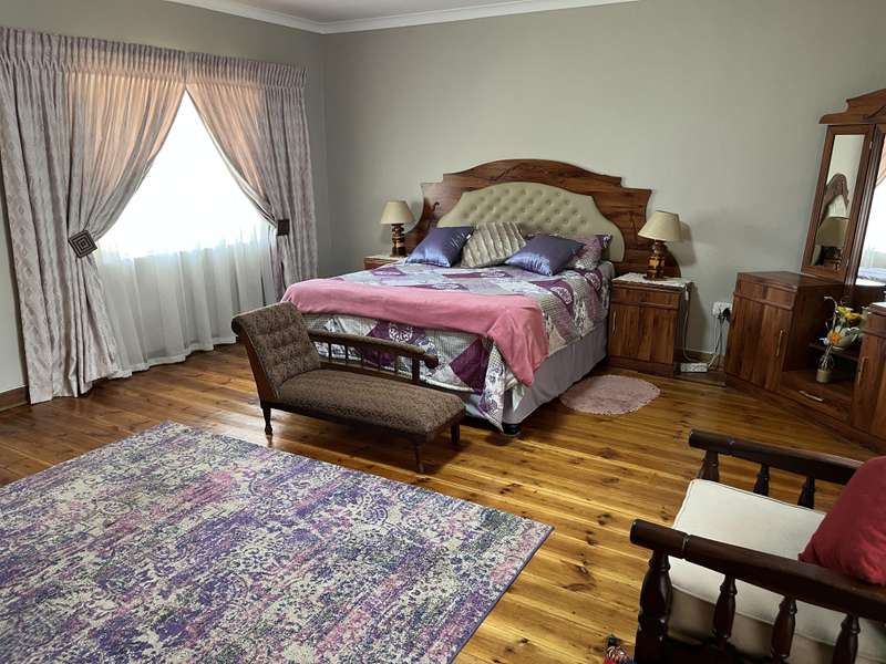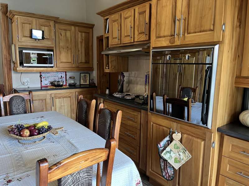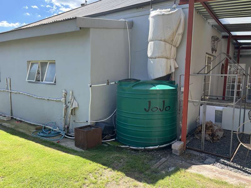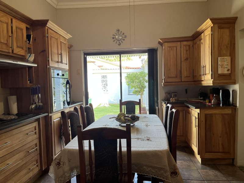 Don't miss this lovely family home centrally located and close to main town. This house comes with Lovely and sturdy wooden floors with a warm homey feeling. 4 bedrooms, one with private entrance. 2 recently renovated bathrooms, one en suite to the main bedroom. Each bathroom comes with a heater and extractor fan system. Main bedroom has extended dressing room. Lovely living space with a beautiful fireplace for the cold winter evenings. Scullery Built in oven and hob. Three garages with electrical doors. one door is bigger ideal for caravans etc. Three extra parking spaces under corrugated roofing. 2000l Jojo tank 2 solar geysers connected to the kitchen but can be used in the bathrooms also. Extra storage room with bathroom that can easily be transformed for extra income. Fully fenced To book your viewing of this lovely property contact Carin Oostenbrink today! Lots of cupboards