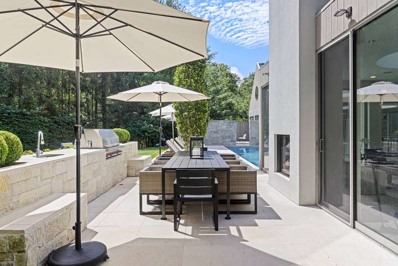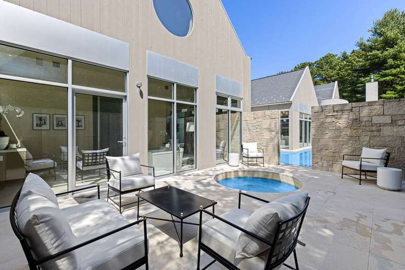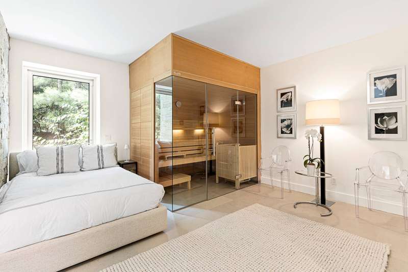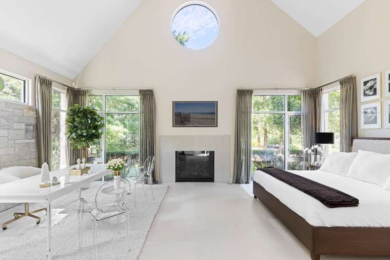 Architectural Masterpiece Between East Hampton & Sag Harbor Rental Registration #: 24-1387 Welcome to 7 Rolling Wood, a world-class Hamptons retreat designed by renowned architect Bruce Nagel-an entertainer's dream and a sanctuary of modern elegance and timeless style. Ideally located between East Hampton Village and Sag Harbor, this extraordinary estate offers convenient access to top-tier dining, shopping, and iconic beaches, all while nestled in complete privacy on 2 meticulously landscaped acres. Inspired by the clean lines of contemporary design and the rustic charm of classic barn architecture, this 7,000+ sq ft compound is composed of three interconnected modern barns that create a cohesive yet dynamic flow between living, entertaining, and retreat spaces. The heart of the home is a dramatic great room with soaring ceilings, walls of glass, and a striking fireplace-perfect for seamless indoor-outdoor entertaining. Multiple patios surround a heated, gunite saltwater pool and offer plenty of space for dining, lounging, and unwinding under the stars. The primary suite is its own private oasis-set apart in a dedicated structure with 25-foot ceilings, a fireplace with a cozy sitting area, a luxurious en suite bath with soaking tub, and a secluded courtyard with a spa. Five additional en suite bedrooms are housed in a separate guest wing, complete with a library/sitting room featuring high ceilings, a wood-burning fireplace, and panoramic views of the beautifully landscaped grounds. The chef's kitchen is designed to impress, outfitted with dual Wolf ovens, Sub-Zero side-by-side refrigerators, double dishwashers, stone countertops, a wet bar, and beverage center-ideal for hosting or everyday luxury. The finished lower level is designed for comfort and wellness, including a spacious media lounge and office, fully equipped gym with Peloton, private sauna and bath, a cedar and glass wine cellar, and double-stacked laundry room. Additional amenities include a gated entry, landscape lighting for evening ambiance, a dramatic formal entrance with reflecting pools, a three-car garage, outdoor shower, and a house manager provided at the owner's expense for seamless summer living. 7 Rolling Wood offers a rare combination of modern design, thoughtful craftsmanship, and effortless comfort-your gateway to an unforgettable summer in the Hamptons. Listing ID: 894636
