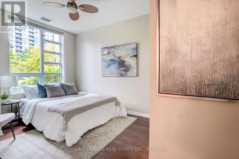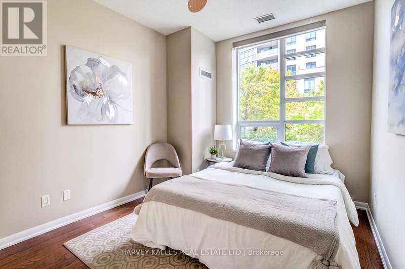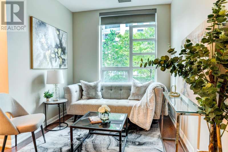 Sun-drenched and stylish, this ground-floor gem offers a rare blend of indoor comfort and outdoor serenity. Expansive windows and soaring 9-foot ceilings flood the interior with natural light, creating an airy, open feel throughout the living space. But it's the 300 sq ft private terrace that truly sets this suite apart, an exceptional extension of your living area, ideal for quiet mornings, weekend lounging, or alfresco dining with friends. Tucked just off a peaceful laneway, it offers both privacy and a seamless connection to the outdoors. Inside, every detail has been thoughtfully curated. From custom granite countertops to designer light fixtures and mirrored closet doors, the unit reflects a cohesive, elevated aesthetic. Elegant finishes, refined detailing and custom window shades contribute to a polished, move-in ready space that feels as functional as it is beautiful. Steps from the Etobicoke Creek Trail, this home is perfect for pet lovers and nature seekers alike. Sherway Gardens, TTC access, and the QEW/427 are all minutes away, placing you at the crossroads of convenience and lifestyle. Whether you're hosting on the terrace or commuting with ease, Unit 109 offers a rare opportunity to enjoy the best of both worlds...comfort, connection and everyday luxury! (id:6370)
