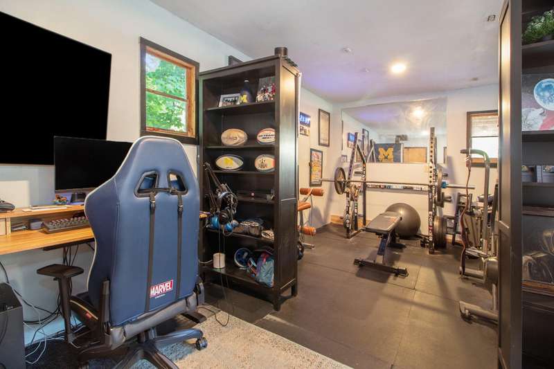 Welcome to this beautifully maintained and thoughtfully designed ranch home, just 5 minutes from downtown Ann Arbor and steps away from the peaceful trails of Miller Nature Area. This home boasts a spacious and functional floor plan, perfectly balancing comfort and privacy. The primary suite is situated on one side of the home, offering a peaceful retreat with a large en-suite bathroom and a generous walk-in closet. Bedrooms 2 and 3 are located on the opposite end, providing privacy for guests or family, and are nicely sized with ample closet space. An updated second full bath serves this wing of the home. The modern kitchen features sleek quartz countertops and opens seamlessly to a large dining area and living room, creating an inviting space for everyday living and entertaining. A stylish bar area off the kitchen enhances the entertaining possibilities. Step outside through the sliding glass door to your own private backyard oasis. This beautifully landscaped space features a patio, firepit, hot tub, and an additional bar area off the garage ideal for hosting gatherings or simply relaxing in a tranquil setting. The two-car garage has been thoughtfully repurposed as a flexible space, currently used as an office, workout room, and lounge area. It can easily be converted back to a traditional garage if desired. Don't miss this rare opportunity to enjoy the best of both nature and city living in a truly exceptional home! Home energy score of 5. Download report at stream.a2gov.org.