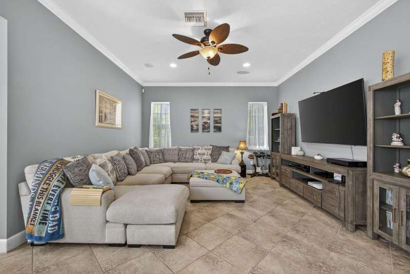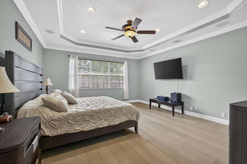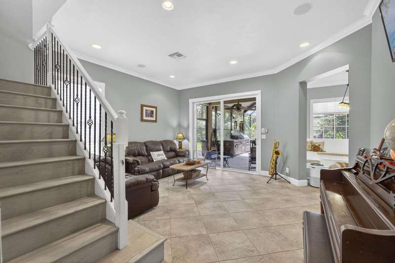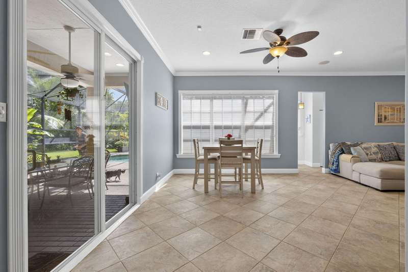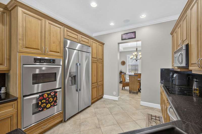 Spacious 4 Bedroom 4 Bath pool home, fully fenced 3,122 Living Sqft, largest pie-shaped preserve sheltered lot on the only cul-de-sac in the highly desirable, well located community of Paseos. No thru street, two flowering treed and palm landscaped islands in cul-de-sac. Home features,impact glass and doors, wired for whole house generator, fully screened in pool and patio with ample space for shaded seating, summer kitchen space, very large private yard split for each side access, covered Front Porch, Stainless Steel Appliances w/ Double Ovens, Walk In Pantry, 1st floor guest bedroom adjacent to full bath, cabana bath next to the family room for guests with direct pool access. Nearby A rated schools. Minutes from shopping, medical, beach, airport, access to Turnpike, I9
