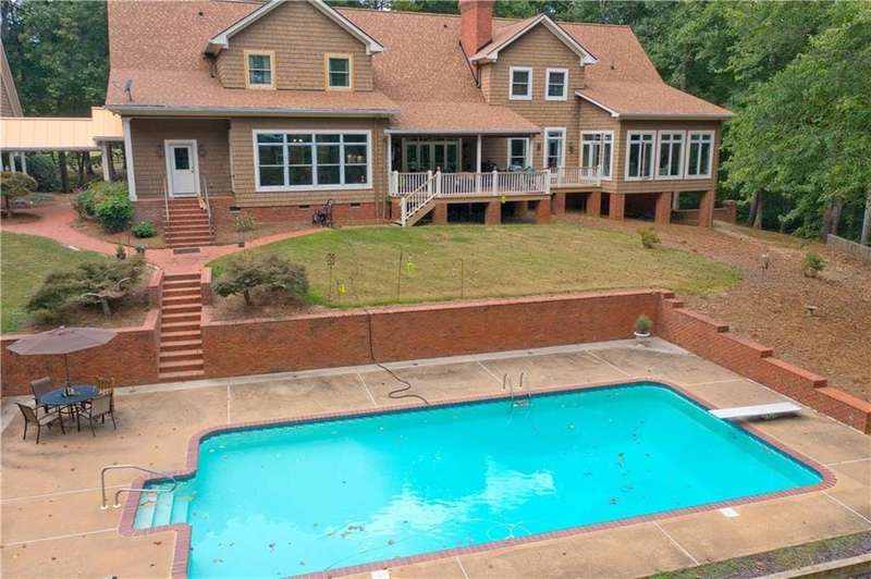Oak Ridge Farm A Private Luxury Estate on Lake Seaton. Oak Ridge Farm, a rare and remarkable legacy property blending refined Southern architecture with serene natural beauty. Constructed in 2000 by master builder Stanley Crews, this custom brick and cedar shake estate sits on a sprawling tract of land with over 4/10 mile of shoreline on the 700-acre Lake Seaton Reservoir, just 45 miles west of Atlanta. Crafted with rich textures and natural materials, the 10 ceilings, heart pine flooring, and river-recovered cypress front doors set a tone of understated elegance from the moment you enter. A dramatic two-story foyer leads to expansive living spaces, including a family room with floor-to-ceiling windows and built-in bookcases, a library paneled in walnut with a wood-burning fireplace, and a formal dining room adorned with white judges paneling and seating for 12+. The chefs kitchen is equally impressive, featuring Custom walnut-stained cabinetry, Granite countertops, Dacor double ovens, 6-burner gas cooktop, warming drawer, Sub-Zero refrigerator, Large Island, walk-in pantry, and eat-in bar, Tile flooring and direct access to a cedar-ceiling deck overlooking the lake, woods, and saltwater pool. the main level also includes Primary suite with sitting area, sunroom access, and deck access, Luxurious master bath with steam shower, garden tub, dual vanities, and custom walk-in closet, Dedicated home office, mudroom with pecky cypress paneling, library, living room with custom cabinets and fireplace, and two half baths, Zoned HVAC, Pella windows, surround sound system, and 5G Spectrum Internet ,Attached carport with storage and breezeway. The second floor features Two large bedrooms with Jack-and-Jill bath, Third bedroom with private en-suite. Additional office/study/bedroom, Front and back staircases, Cedar-lined closet. The full finished basement includes Custom bar with sink and mini fridge, Wood-burning fireplace, Half bath, Mechanical/storage room, Exterior entrance. Oak Ridge Farm is a sanctuary for both relaxation and recreation: 20 x 40 saltwater pool with bathhouse,8 x 12 private dock on Lake Seaton Reservoir, Spring-fed, one-acre stocked pond with bass and bream, 50 acres of mature hardwoods and pines with trails and food plots, Rolling pastures, high bluffs, and abundant wildlife: turkey, deer, duck, and dove. The equestrian and farm features an 8000 sq ft barn with four horse stalls, vet room, office, storage, and half bath, Bedroom and four dog kennels with fenced exercise yard, Two fenced pastures (approx. 10 and 4 acres) with water access, Riding ring, BBQ cooking area, firepit. Multiple open sheds for farm equipment. Located 39 miles to Hartsfield-Jackson Atlanta International Airport, 45 miles to Atlanta, 7 miles to Tanner Medical Center and Within minutes of shopping and dining. Oak Ridge Farm offers a rare combination of elegant living, private waterfront access, and fully functional equestrian and farming facilitiesall in a location that balances convenience and seclusion. Whether you envision it as a full-time residence, weekend retreat, or legacy family estate, this property is truly one-of-a-kind.