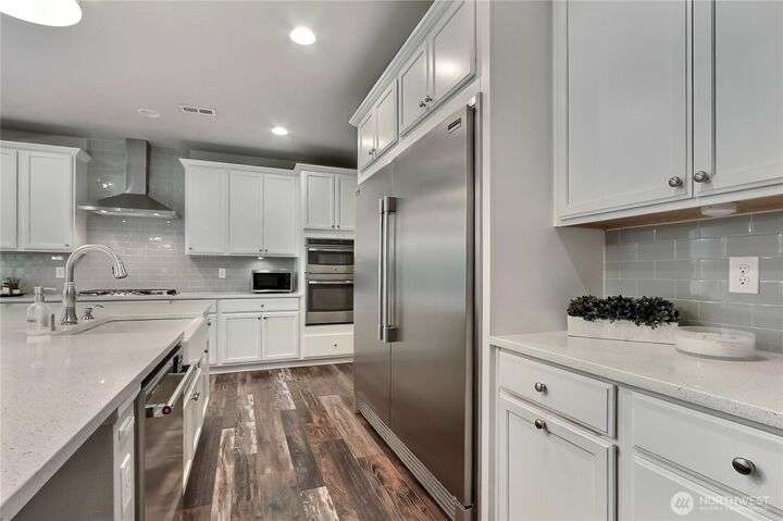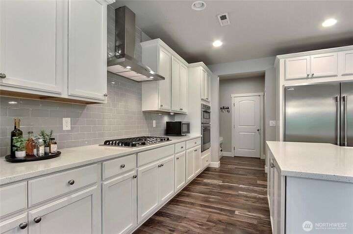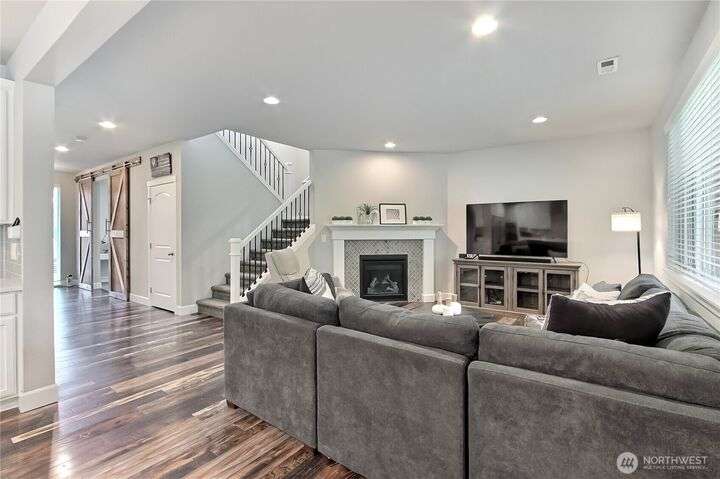 Gorgeous home with Premium Upgrades! This well-designed home offers a spacious great room concept & a main floor den for work or guests. Upstairs you will find 4 generous bedrooms & enormous loft area. Enjoy elegant touches like wainscoting, coffered ceilings, and central A/C for year-round comfort. The chef’s kitchen is a dream with quartz countertops, an oversized eating bar, upgraded cabinetry & sunroom/dining area filled with natural light. Step outside to a highly sought-after oversized corner lot that backs to a peaceful greenbelt, covered patio with gas fireplace, ideal for year-round entertaining & the dog run with turf adds convenience for pet owners. This home has it all—style, space and unbeatable location.